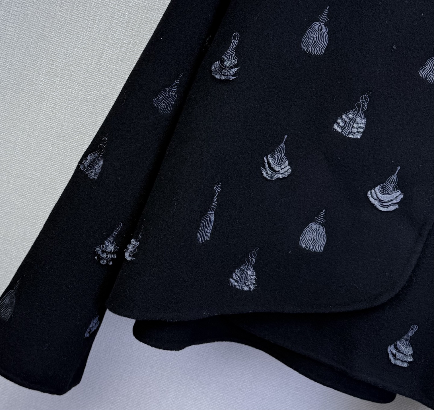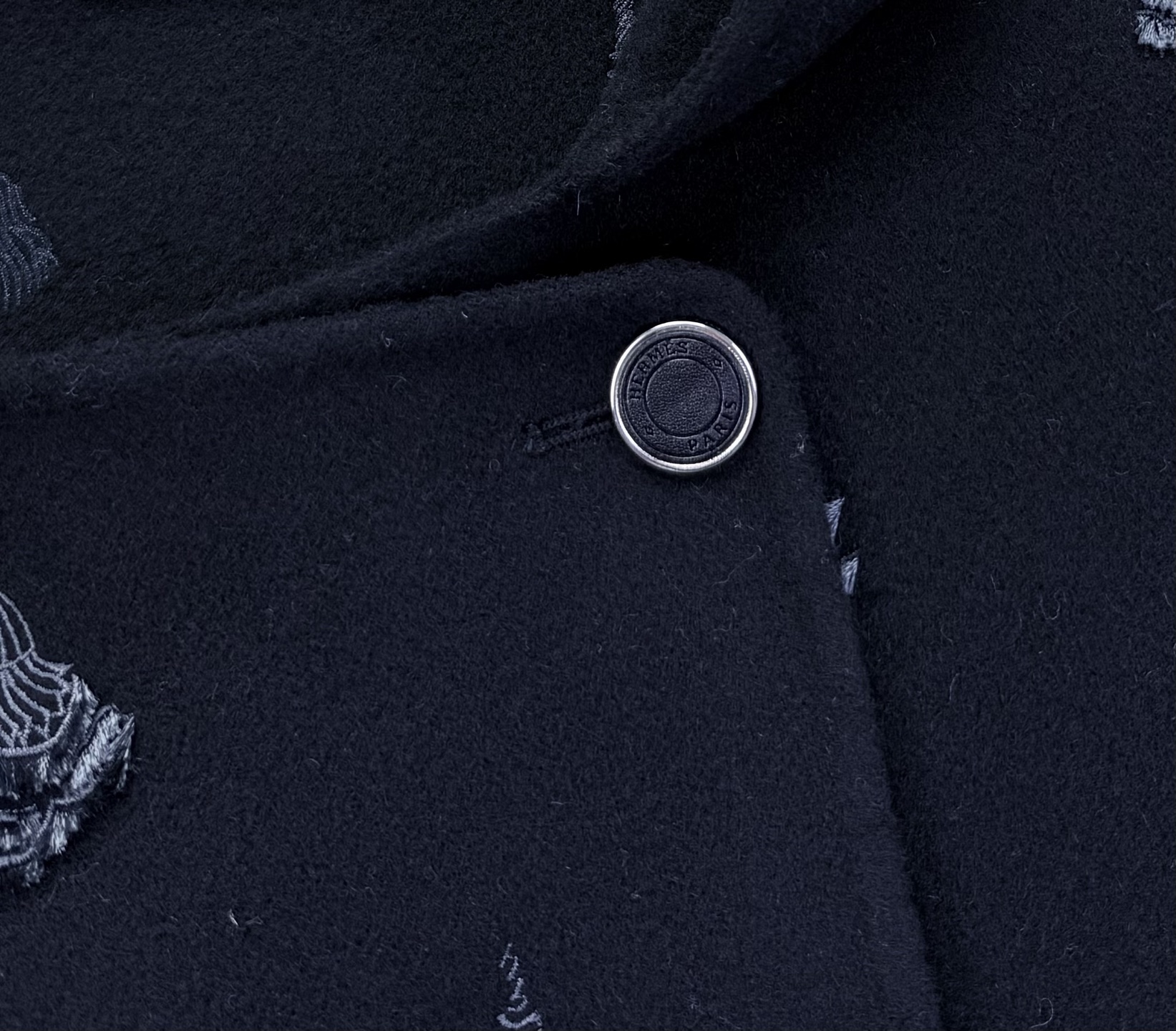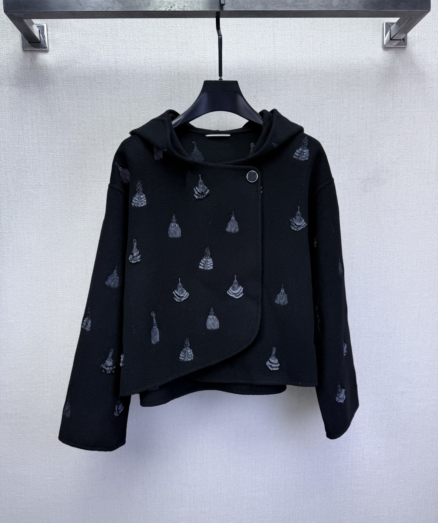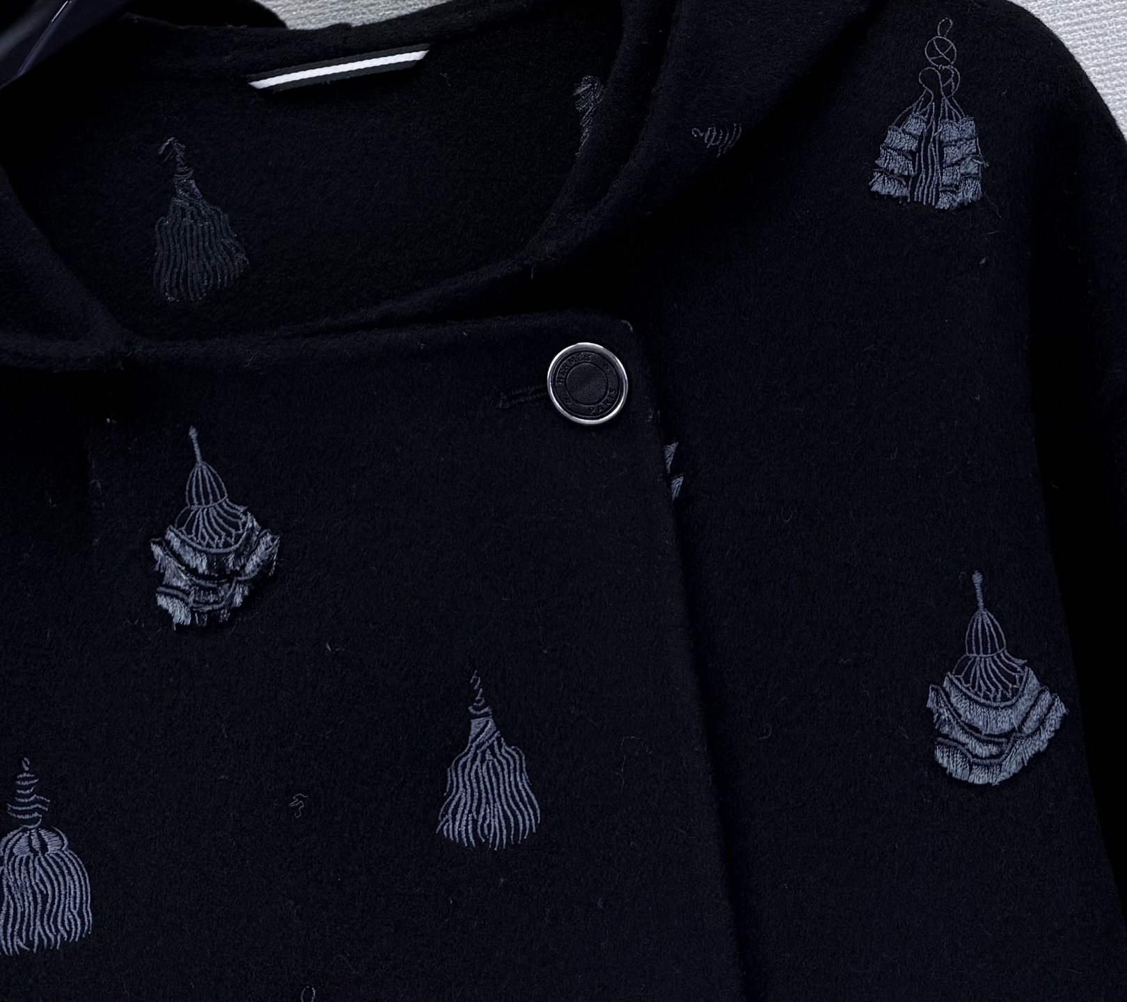 Hermé* New style, high-quality cashmere heavy embroidery coat. Heavyweight hand-embroidered hooded short coat debut. Hand embroidery is three-dimensional and textured. Full cashmere fabric is soft and not scratchy, also provides shape and comfort.