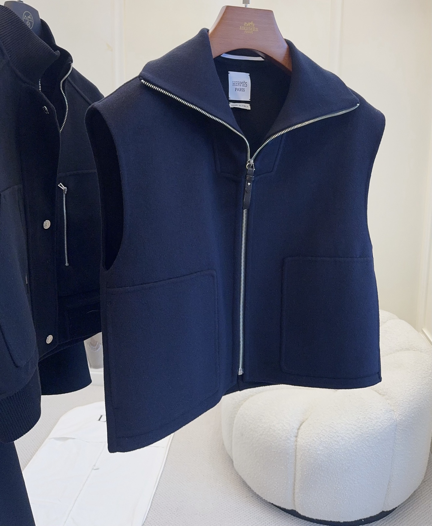 🆕🆕Hermes 2025 autumn-winter new double-faced vest, custom cashmere wool double-faced fabric, knitted collar, can be worn as high collar or turned down collar, front placket features palladium-plated zipper and lambskin pull rope zipper head, side pockets, economical and elegant, very wearable design!