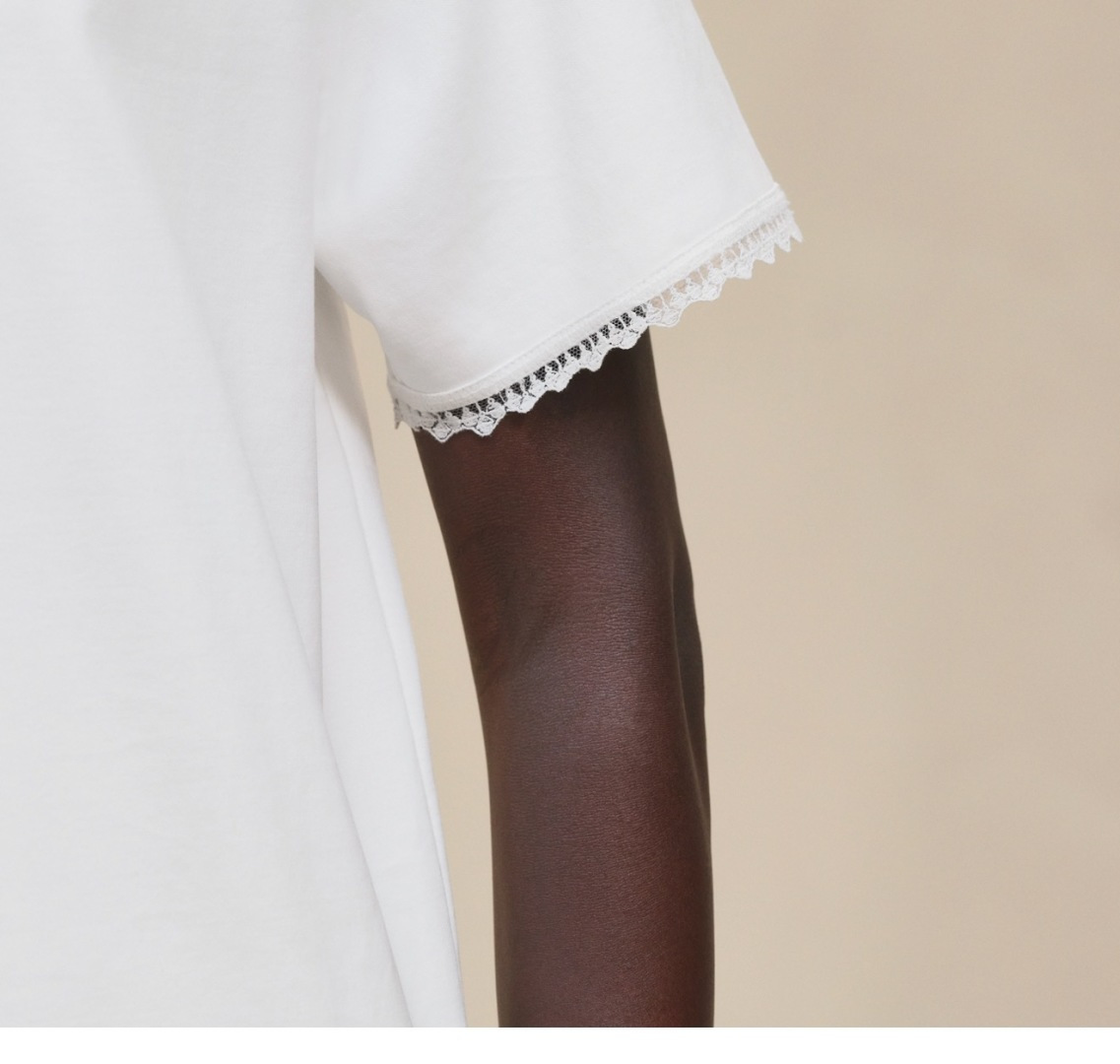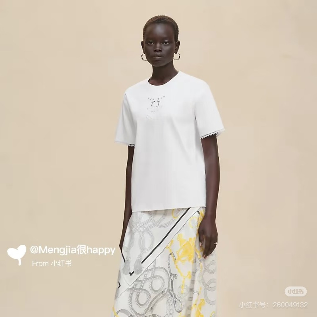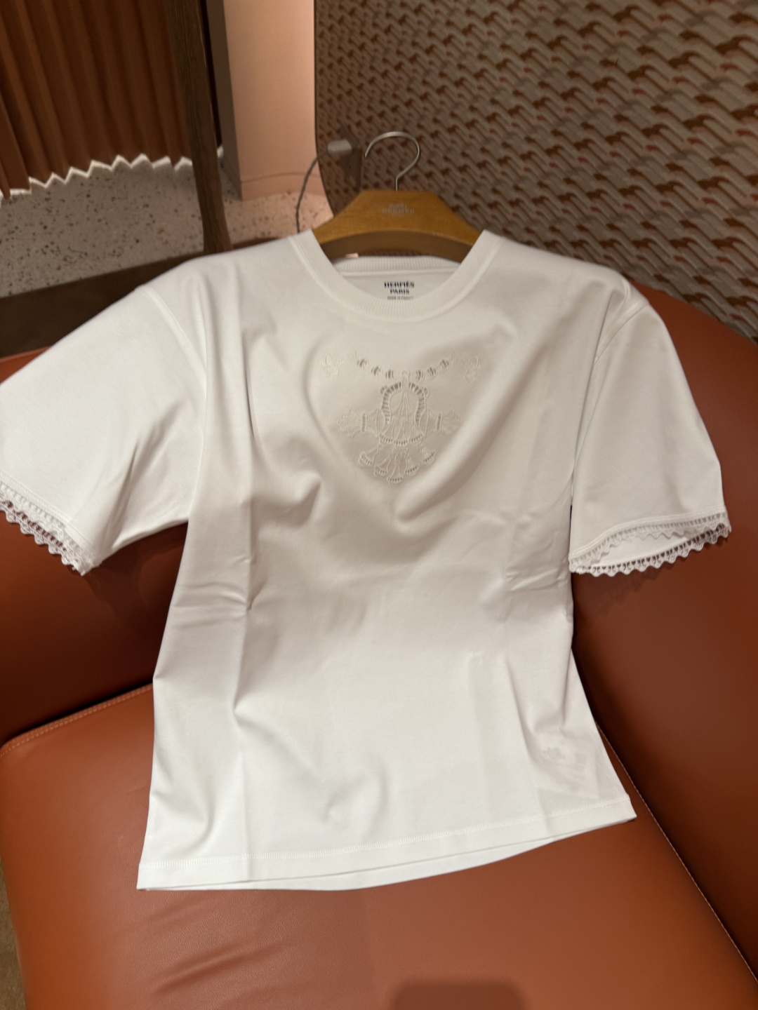 🆕H25 latest item, custom lace ➕ embroidery pattern loose fit white T