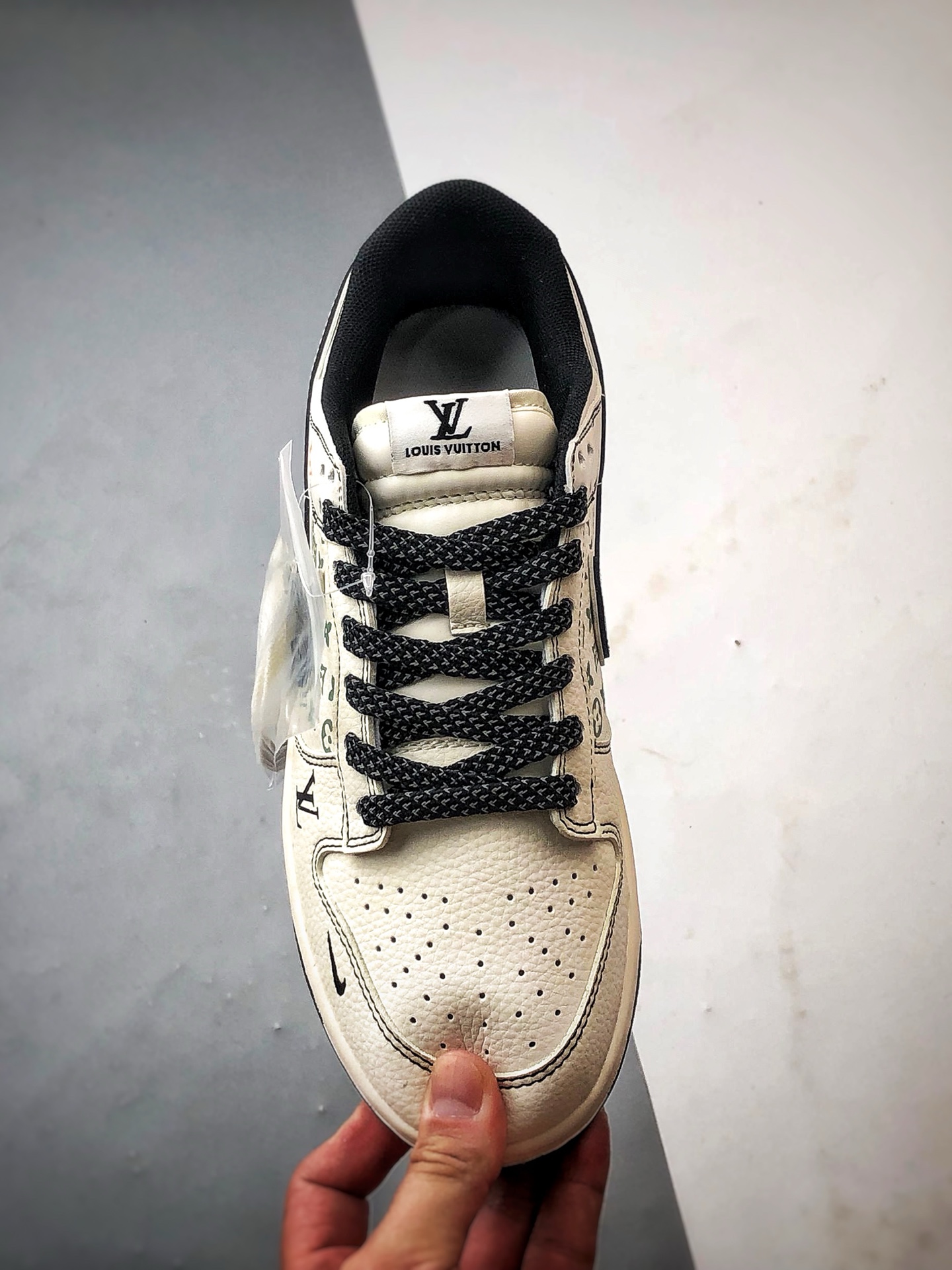 LV Print Beige White Black Hook Low-Top Casual Sports Sneakers