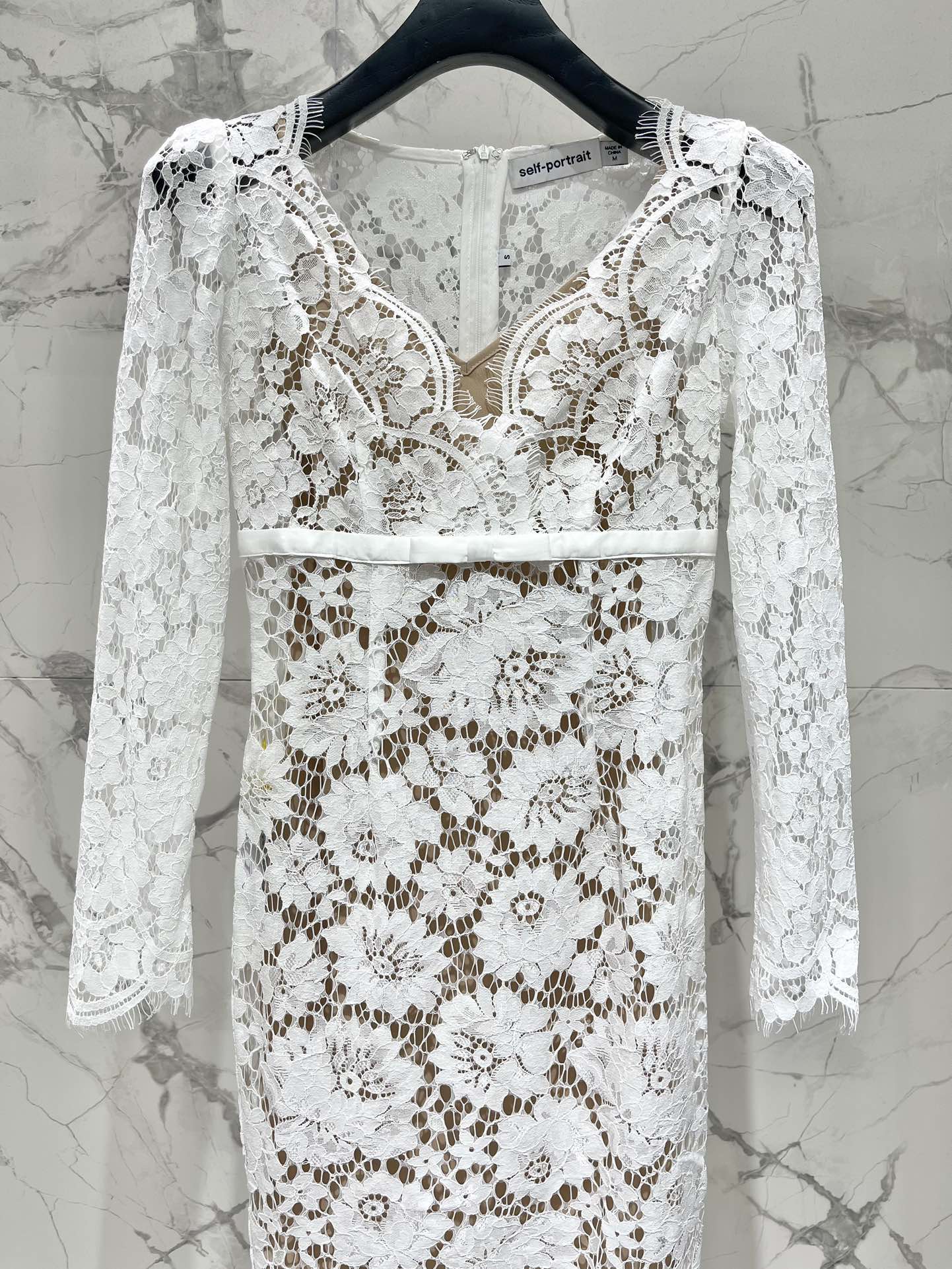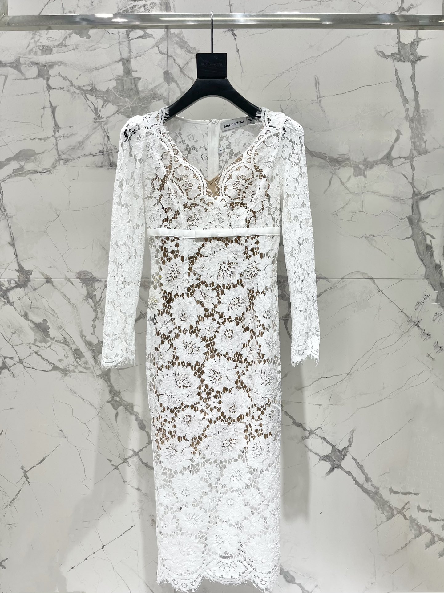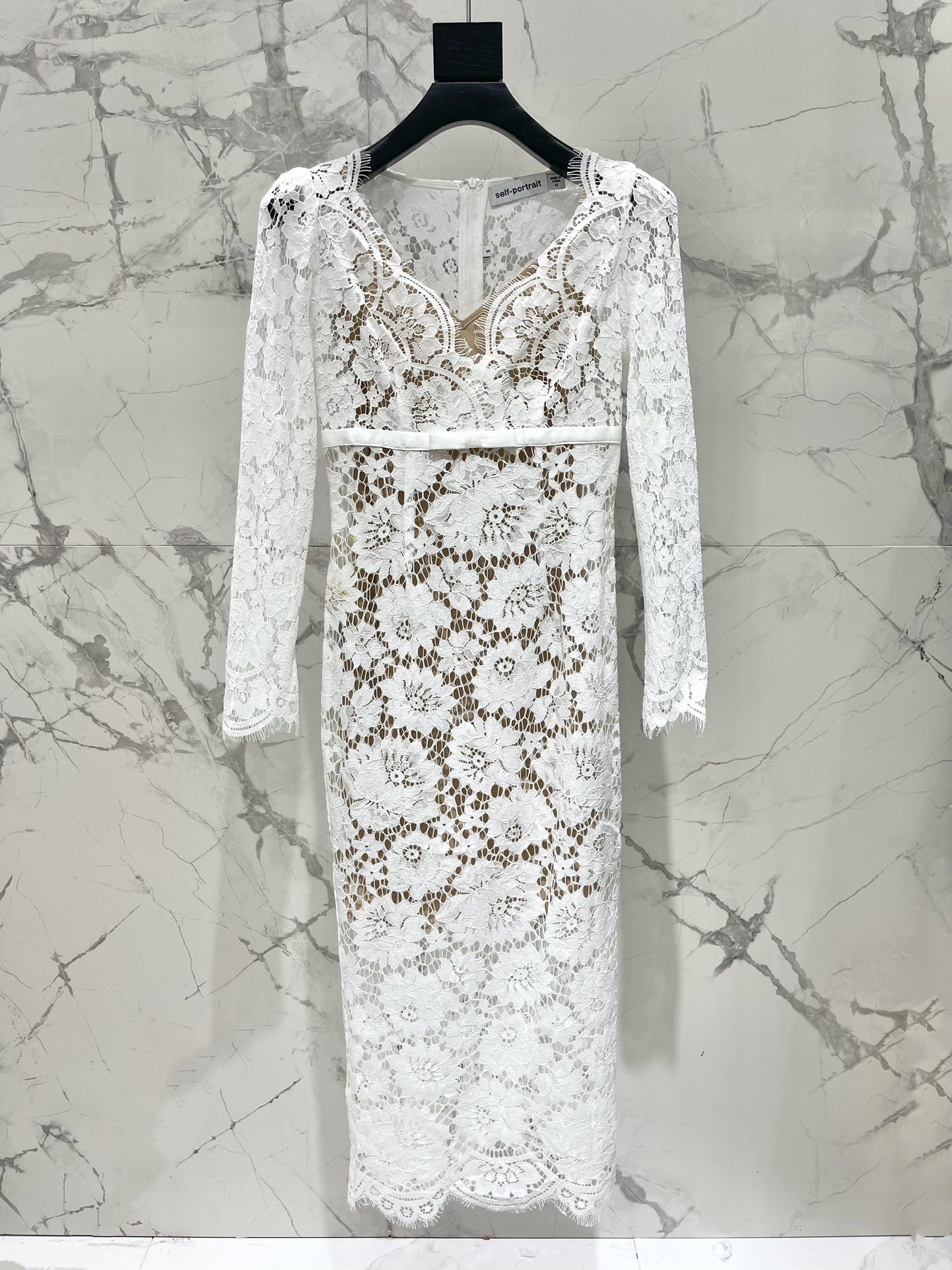 Self-portrait* Autumn/Winter Pure White V-Neck Floor-Length Light Wedding Dress Lace Dress
