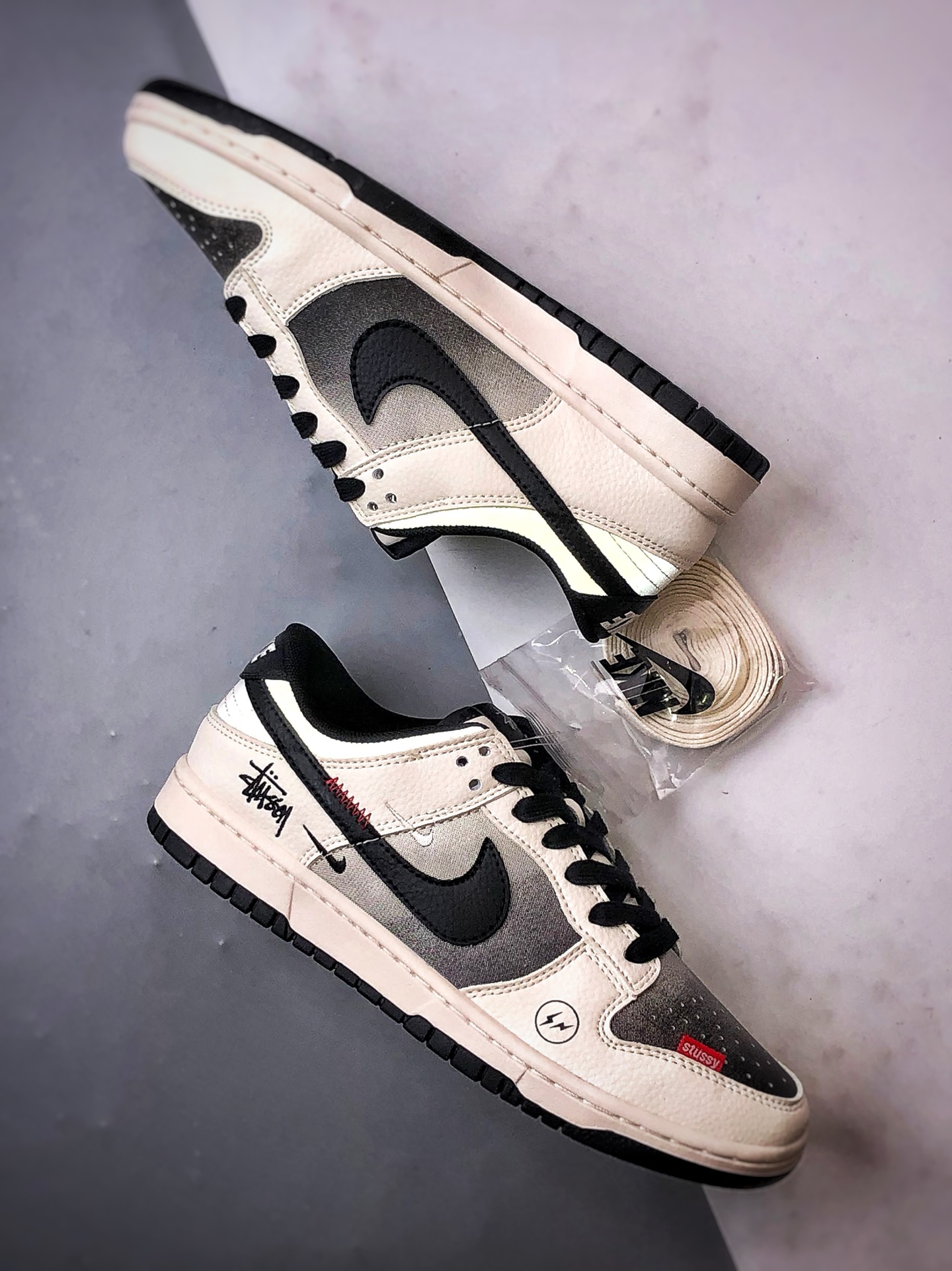 Stussy Lightning Gradient Beige Black Low-Top Casual Sports Sneakers