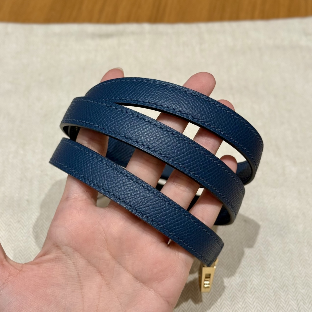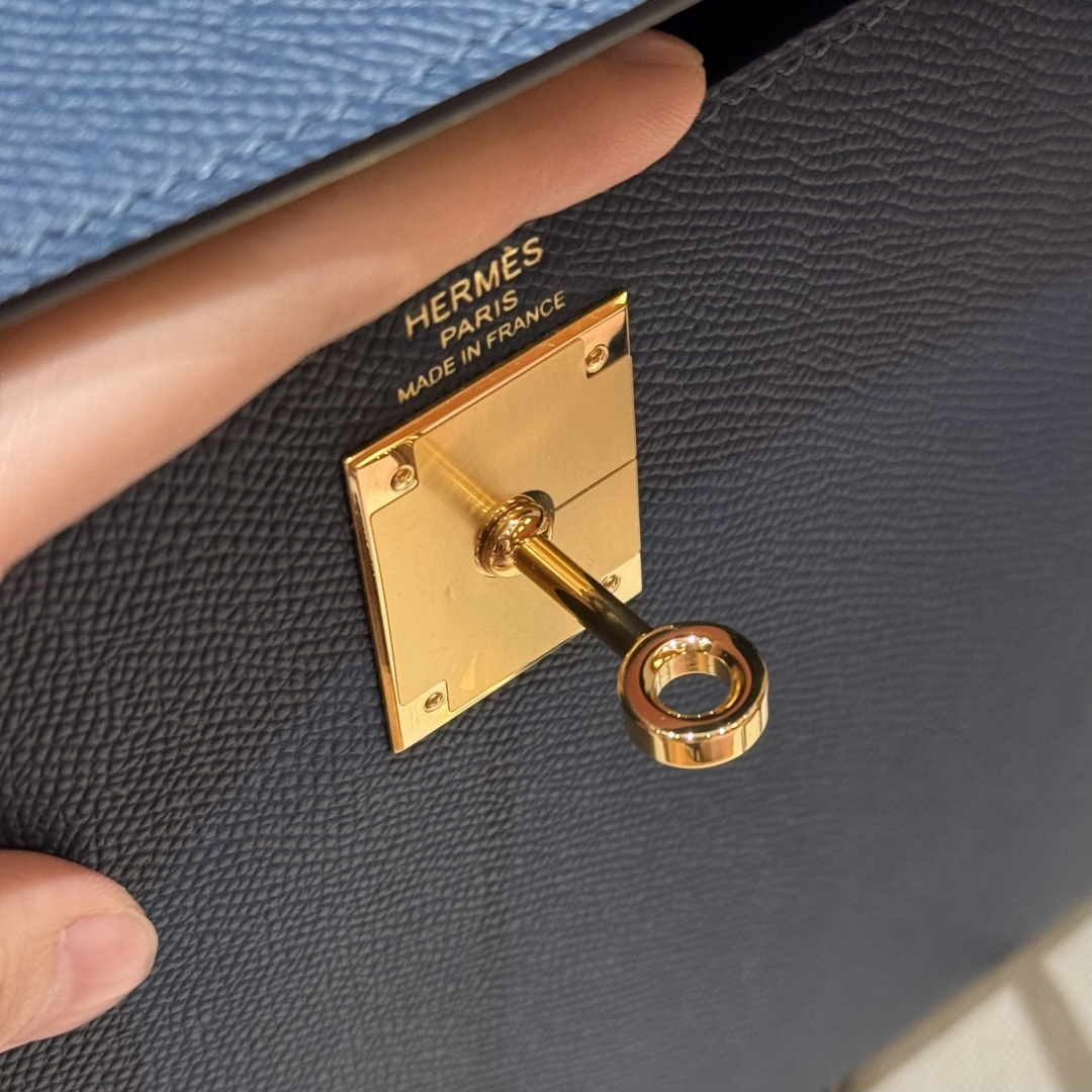 Kelly 28, deep blue, French imported cowhide palm grain outer stitching, gold buckle, advanced full manual exclusive customization.