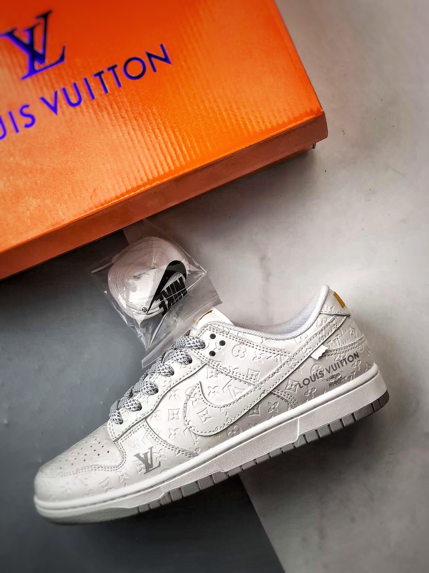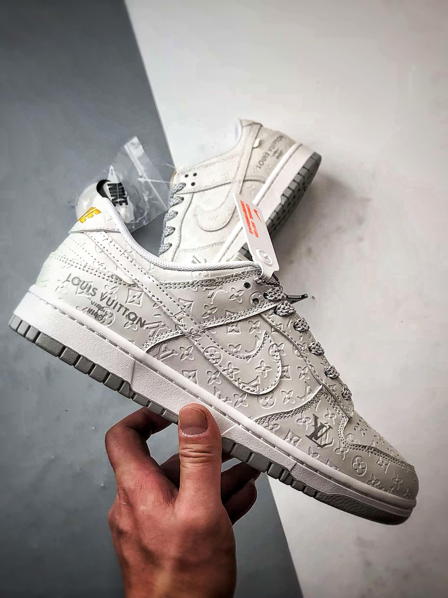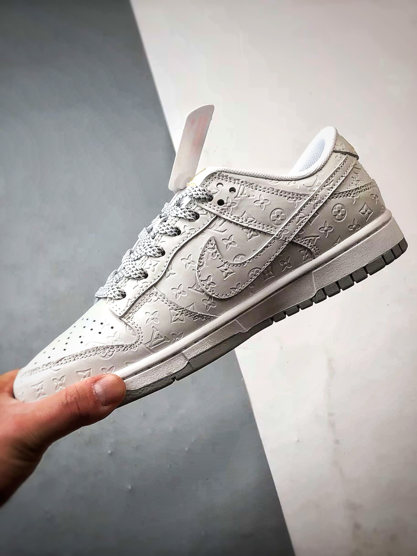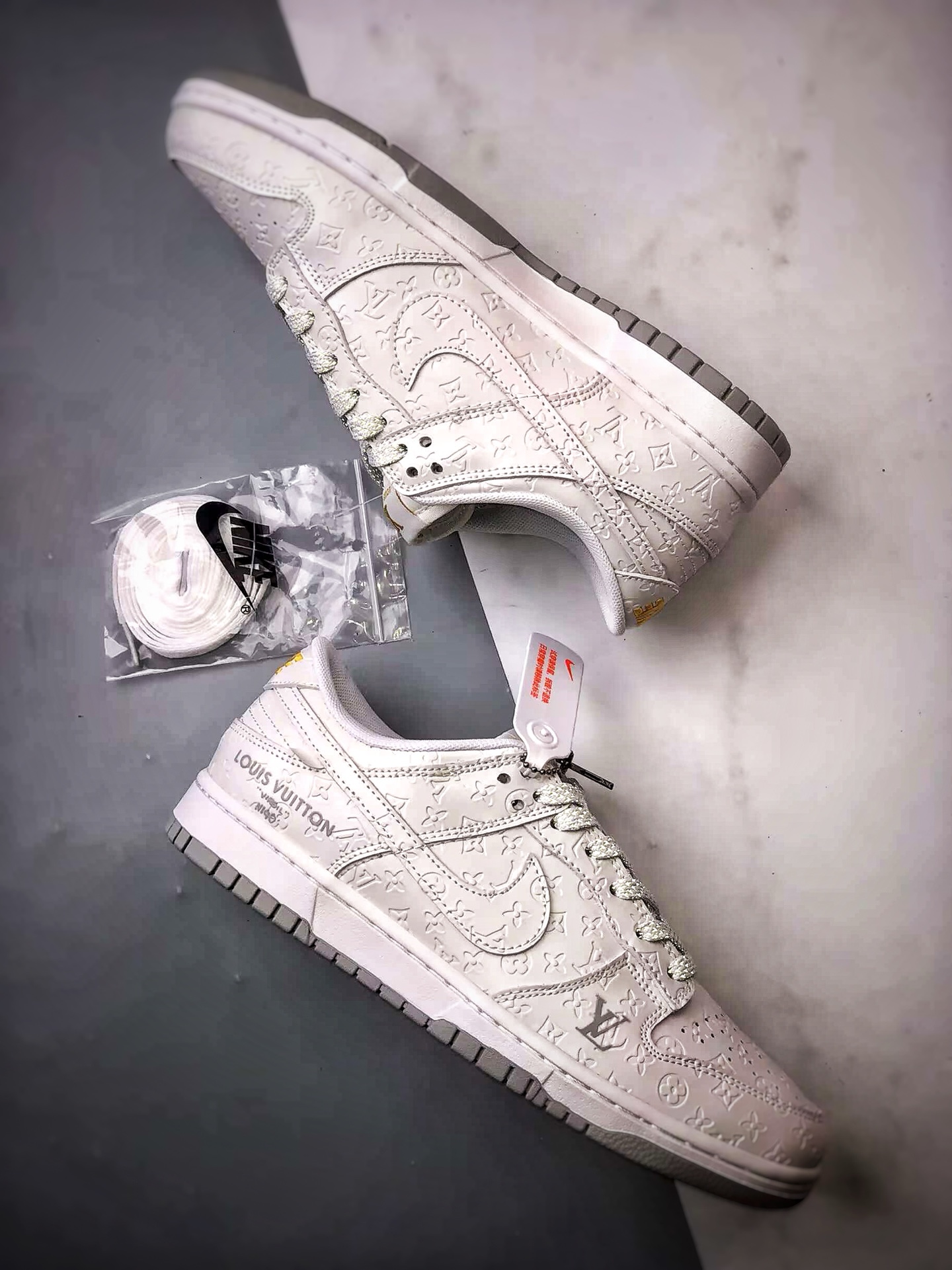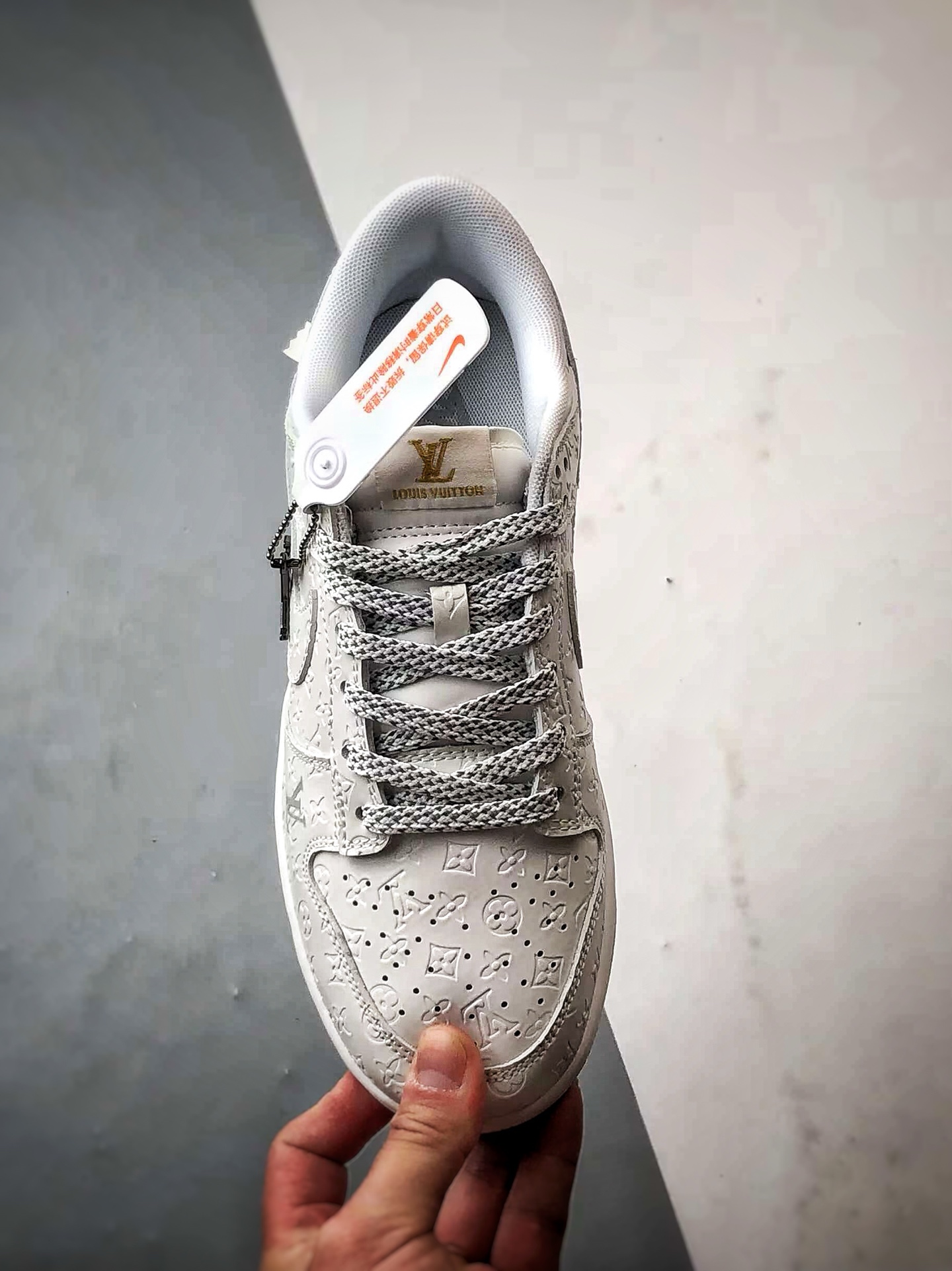 LV Full Print Embossed White Gray Low-Top Casual Sports Sneakers