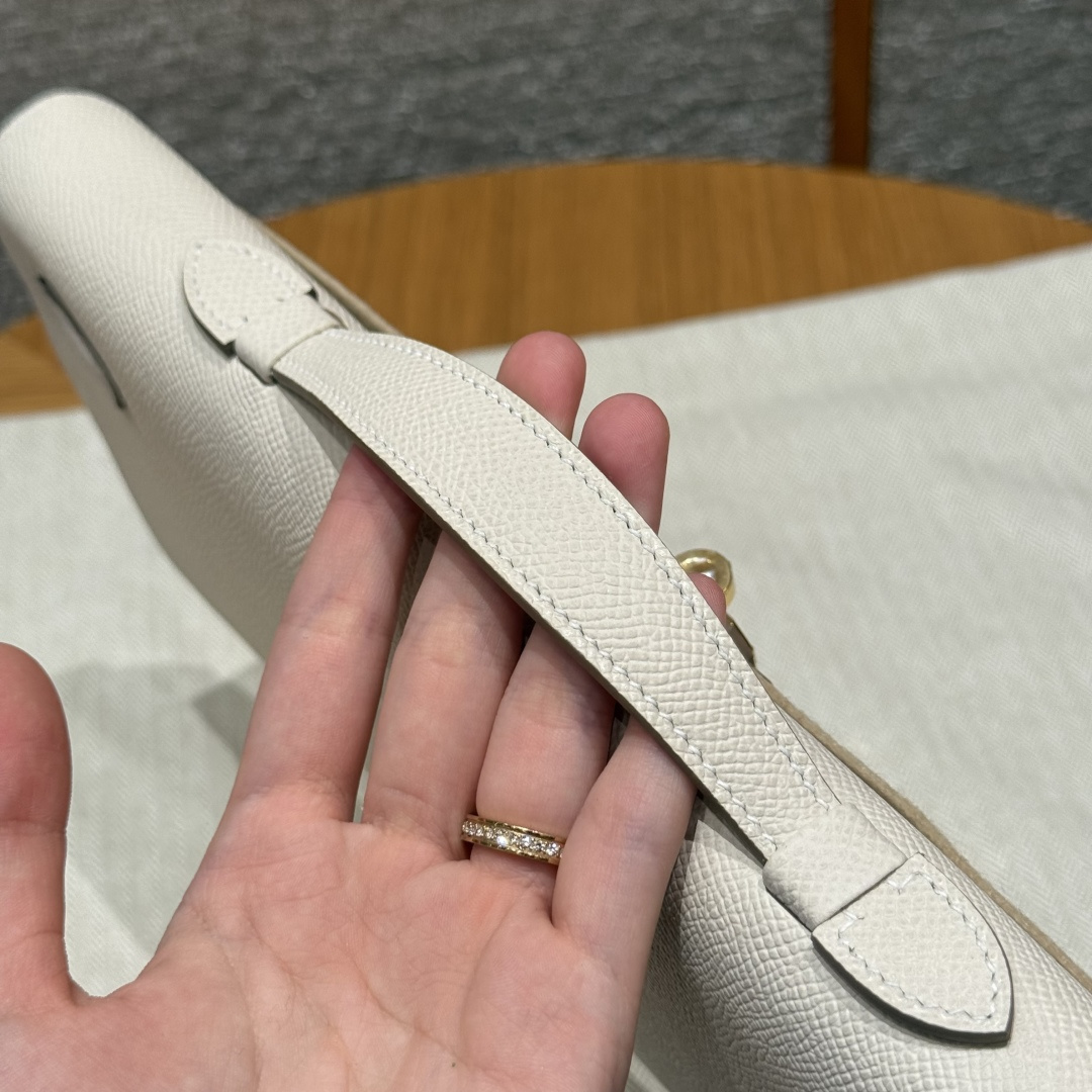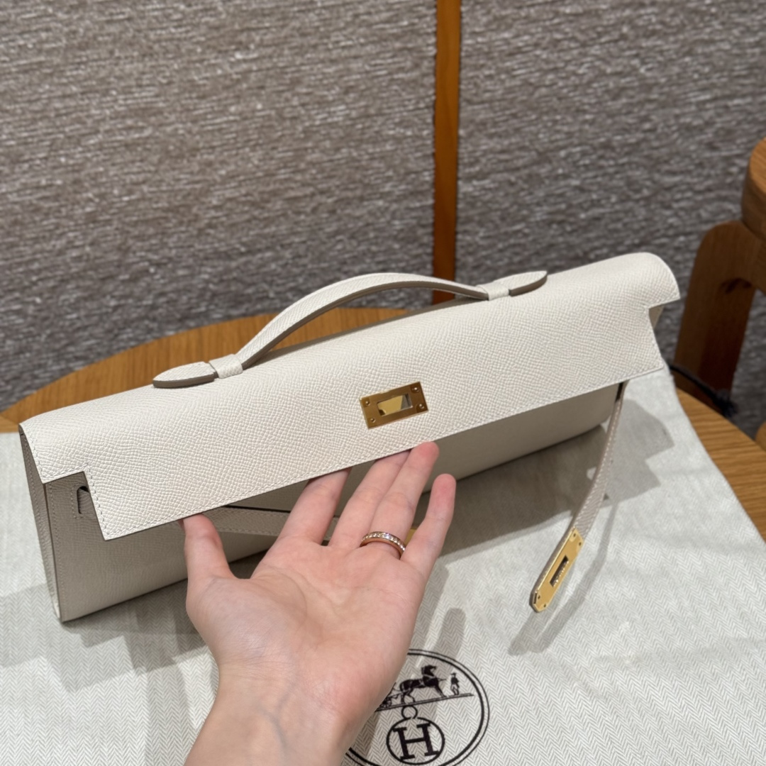 Evening bag 31cm, milkshake white, French imported original factory palm grain leather, gold clasp, high-end fully handcrafted exclusive customization.