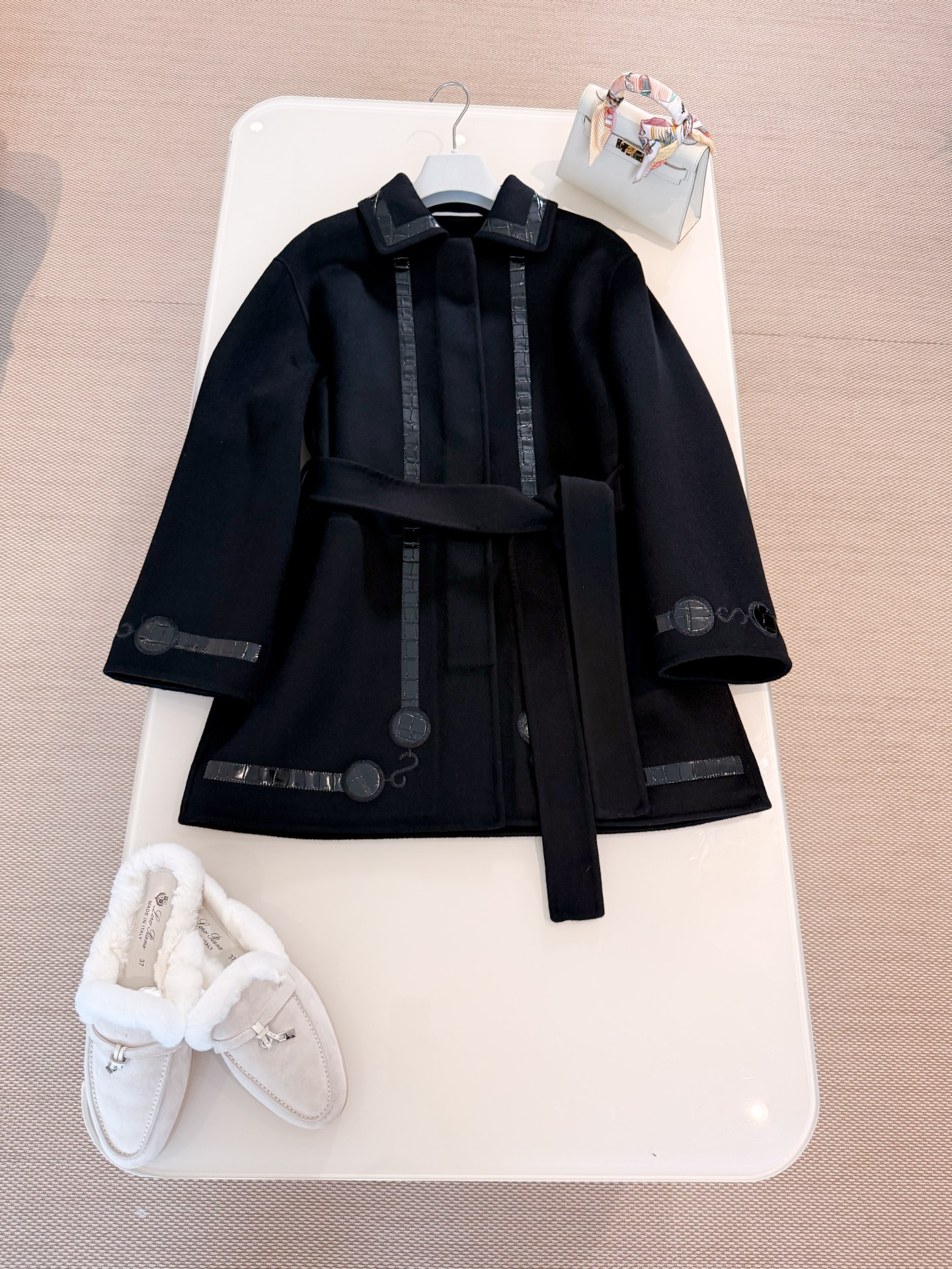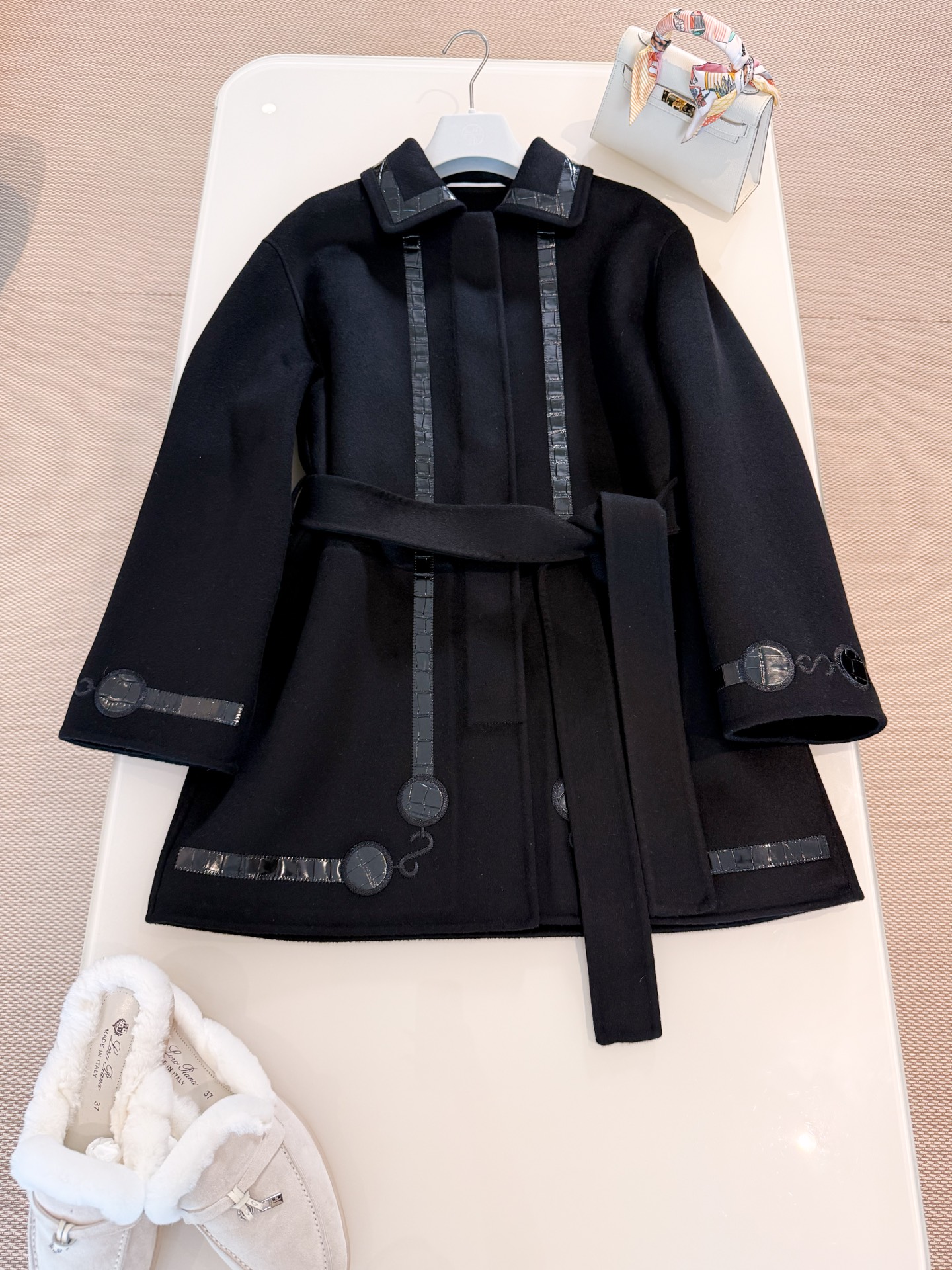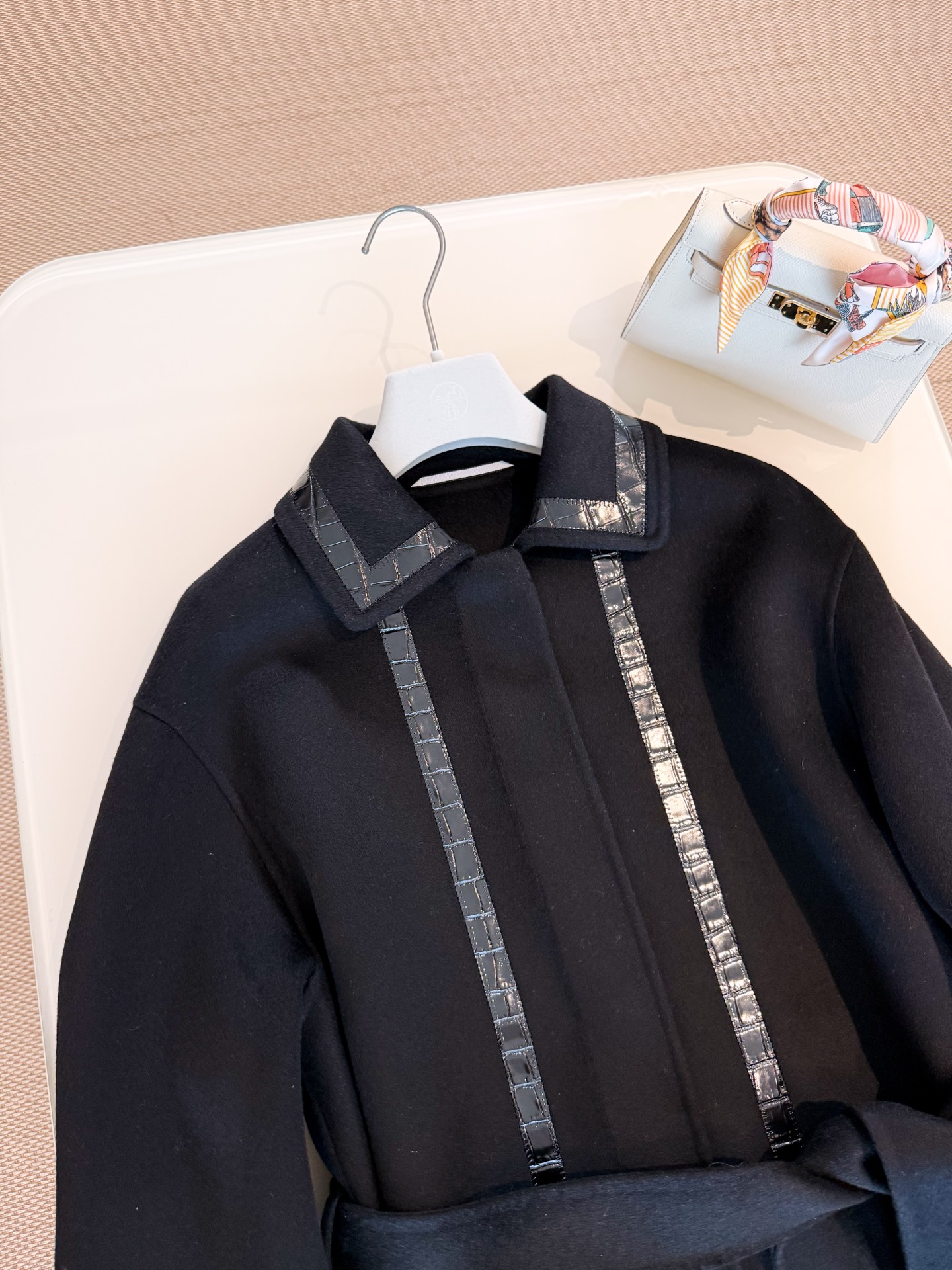 Double-faced cashmere fabric creates a structured look, fully handcrafted H pig nose leather patch embroidery (crocodile pattern + lizard pattern) crafted with intricate workmanship, stunning high-end silhouette, top-quality release.