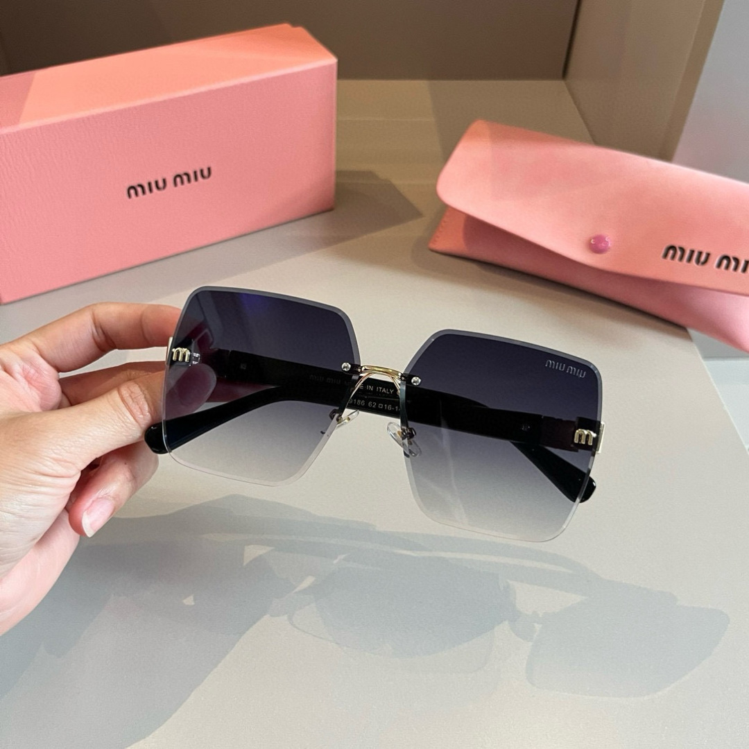 Miu Miu new sunglasses, high-end frameless sunglasses for women, UV protection, specially designed for driving, slimming effect for round faces, one-piece glasses