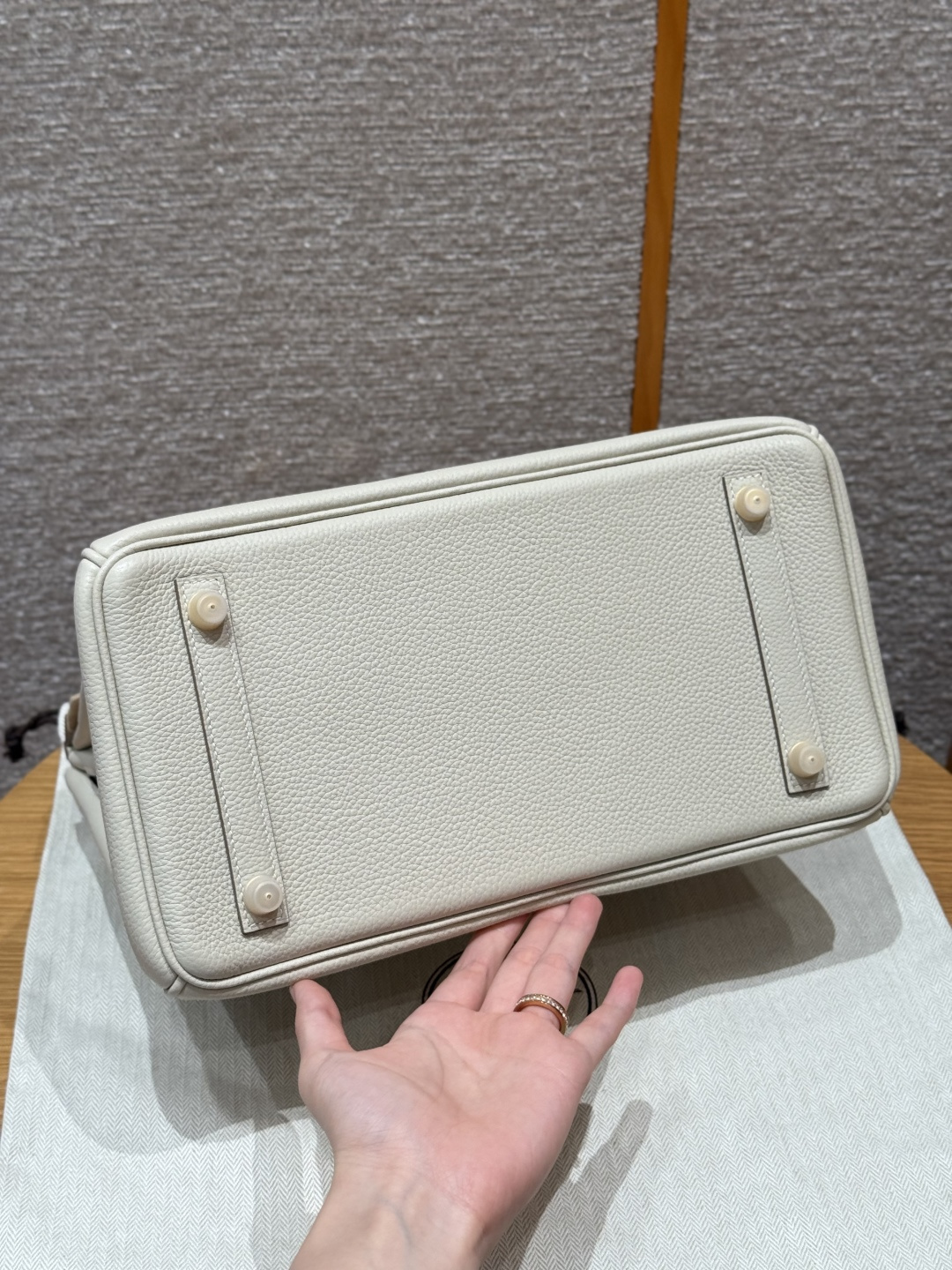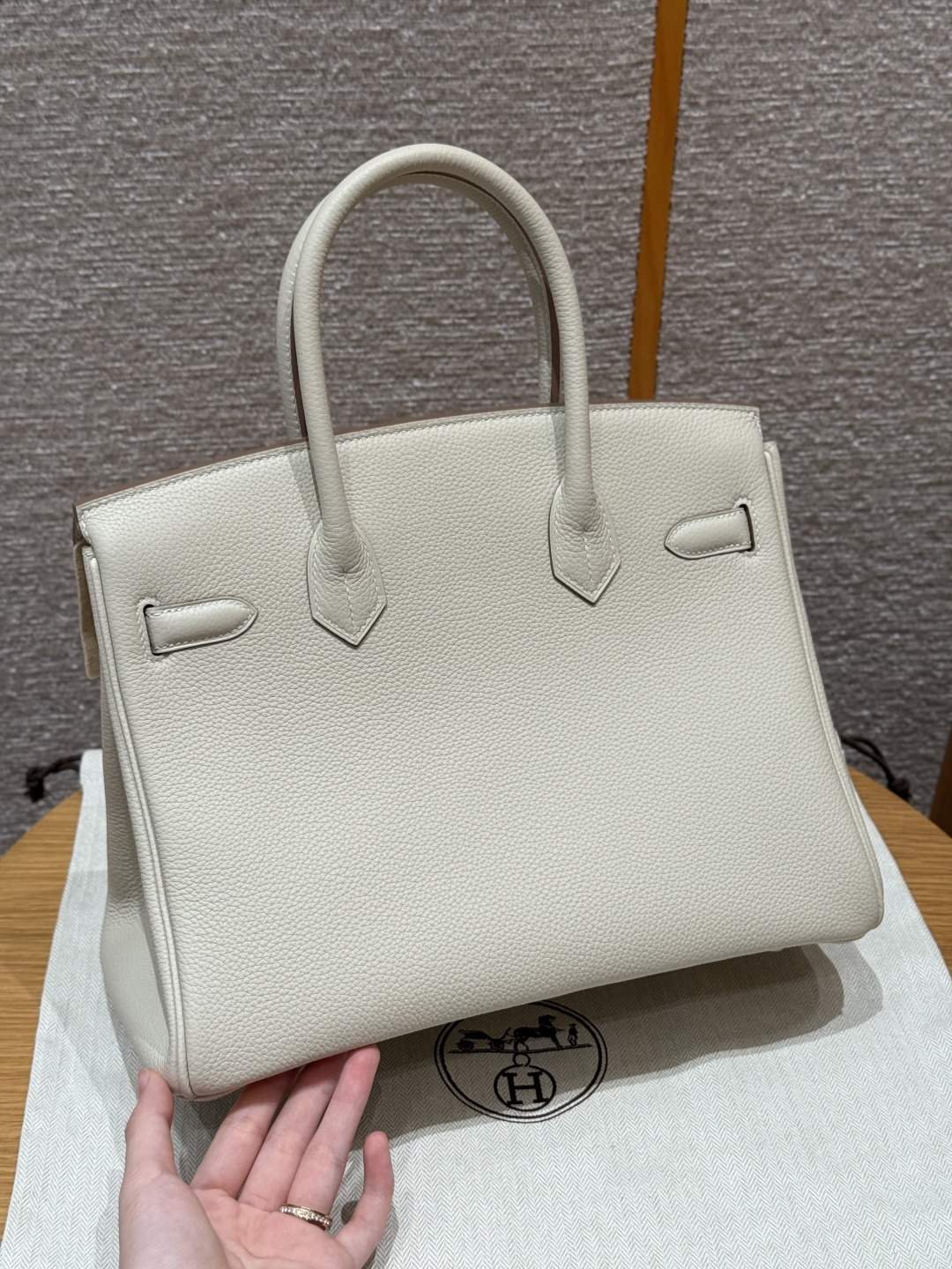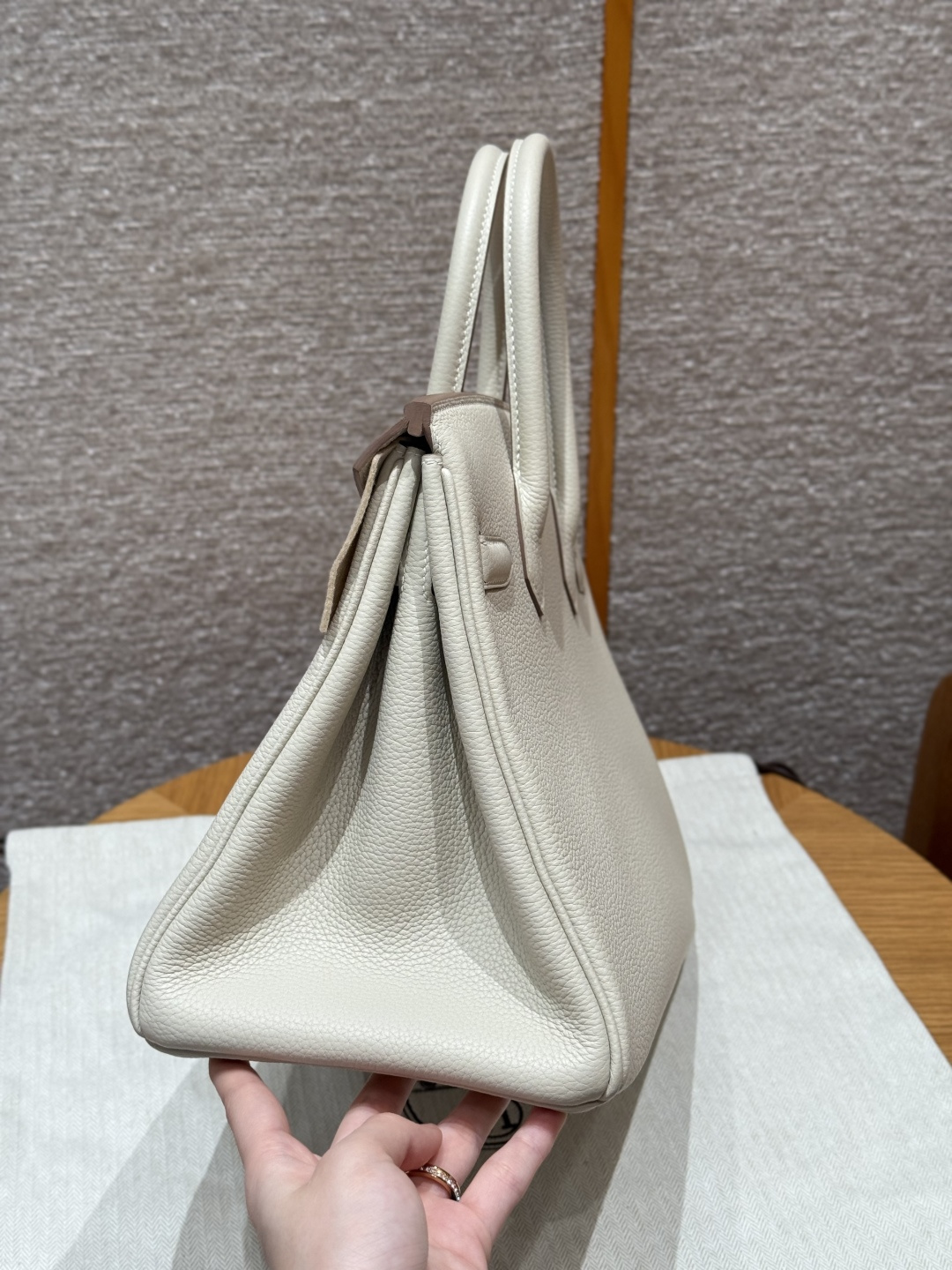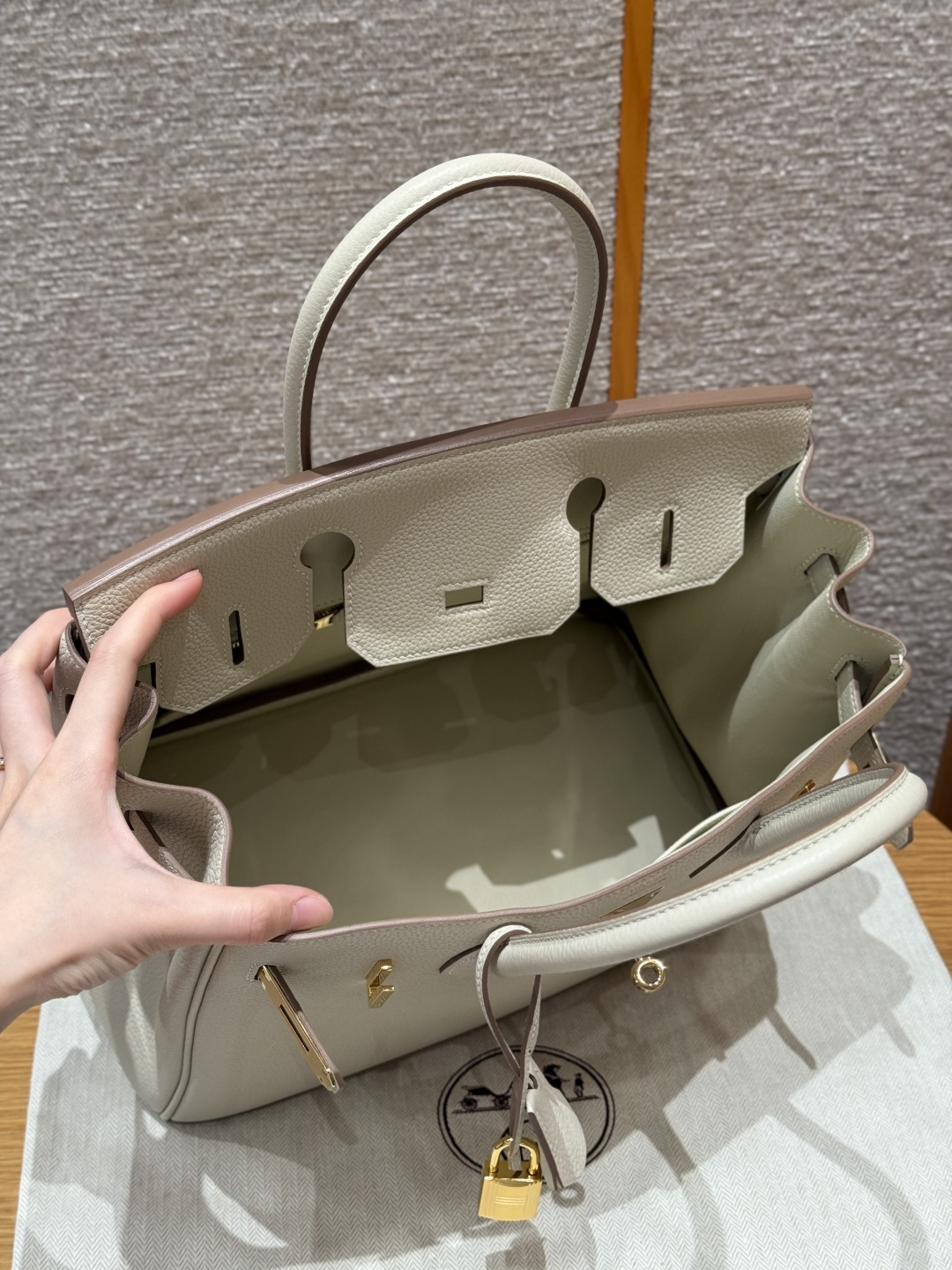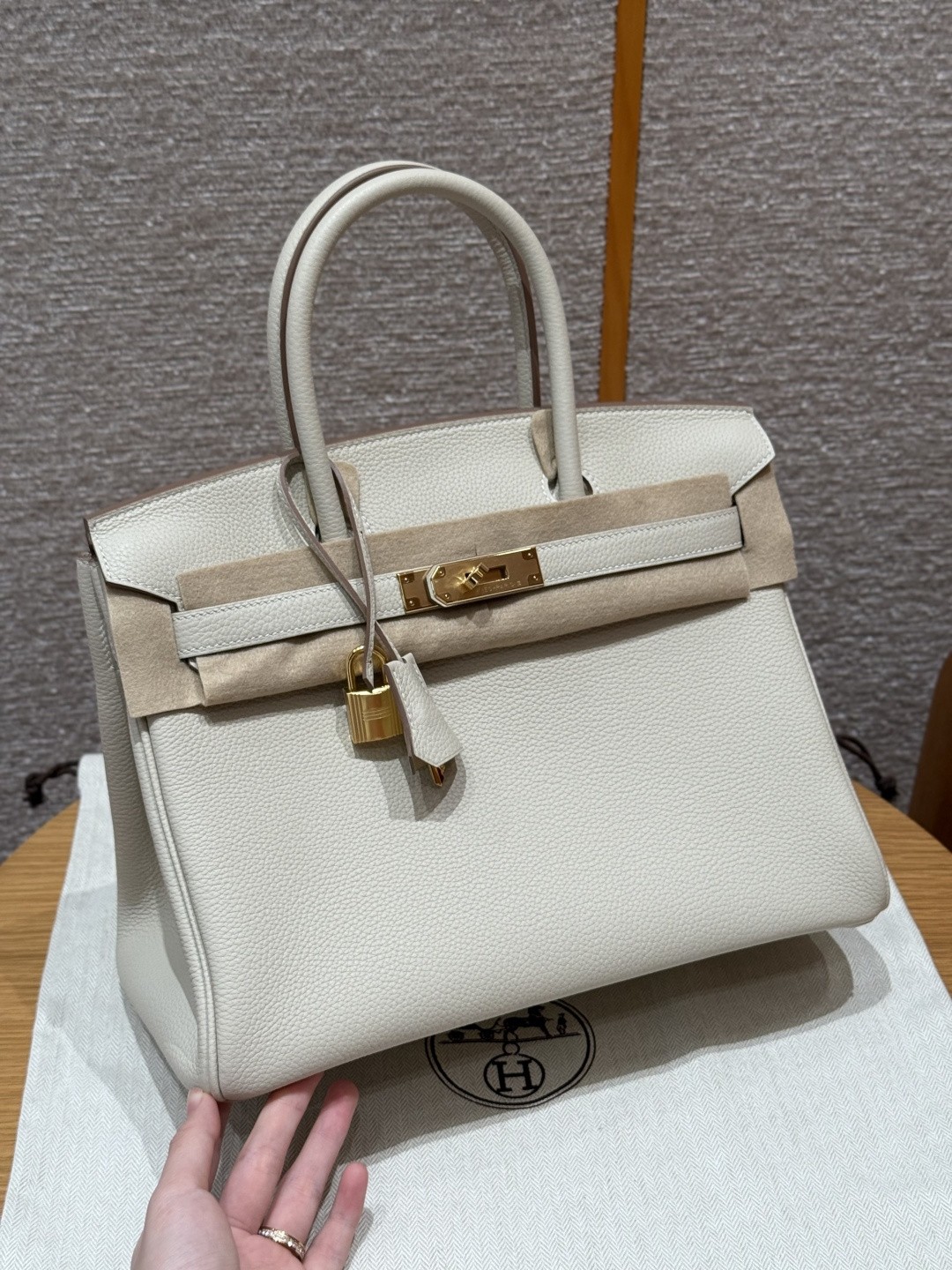 Platinum 30, milkshake white - inner seam, imported French Togo cowhide, gold clasp, advanced full manual exclusive customization.