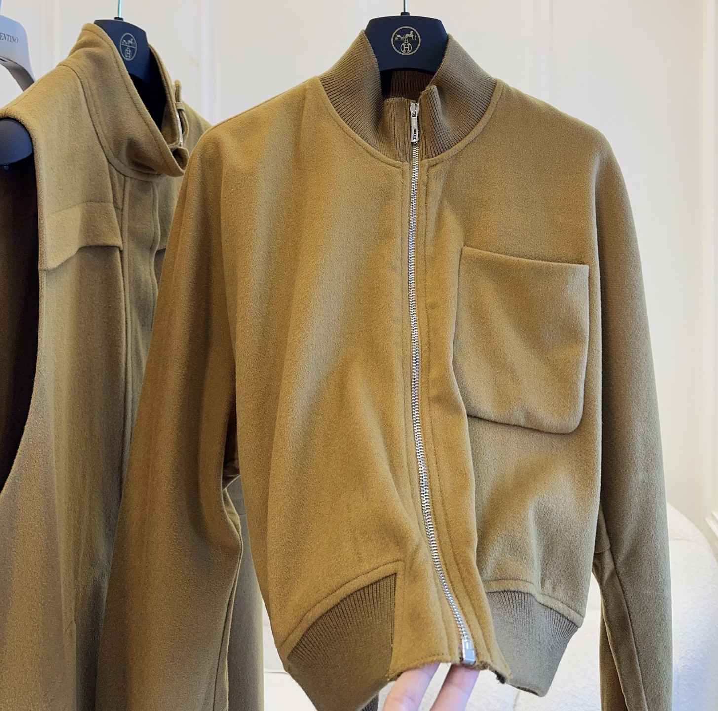 Hermes 2025 Autumn and Winter new jacket and vest, runway style, custom wool and silk blend, soft and delicate, the combination of jacket and vest, easily achieving fashionable layering, the two-piece set is super practical, and they also look great when paired separately!
