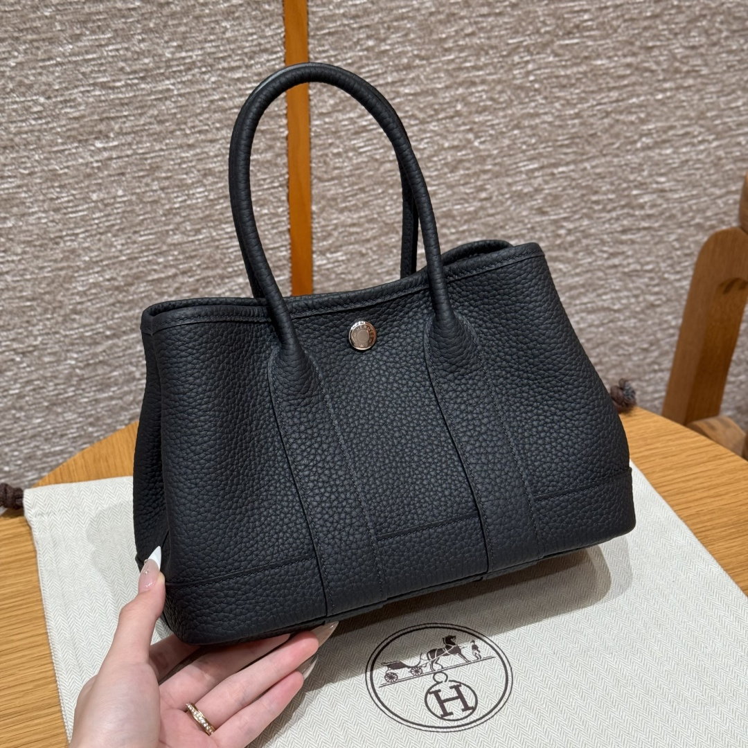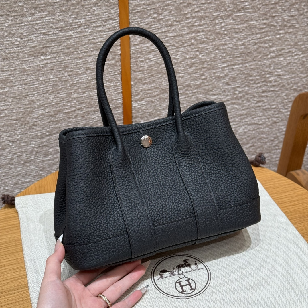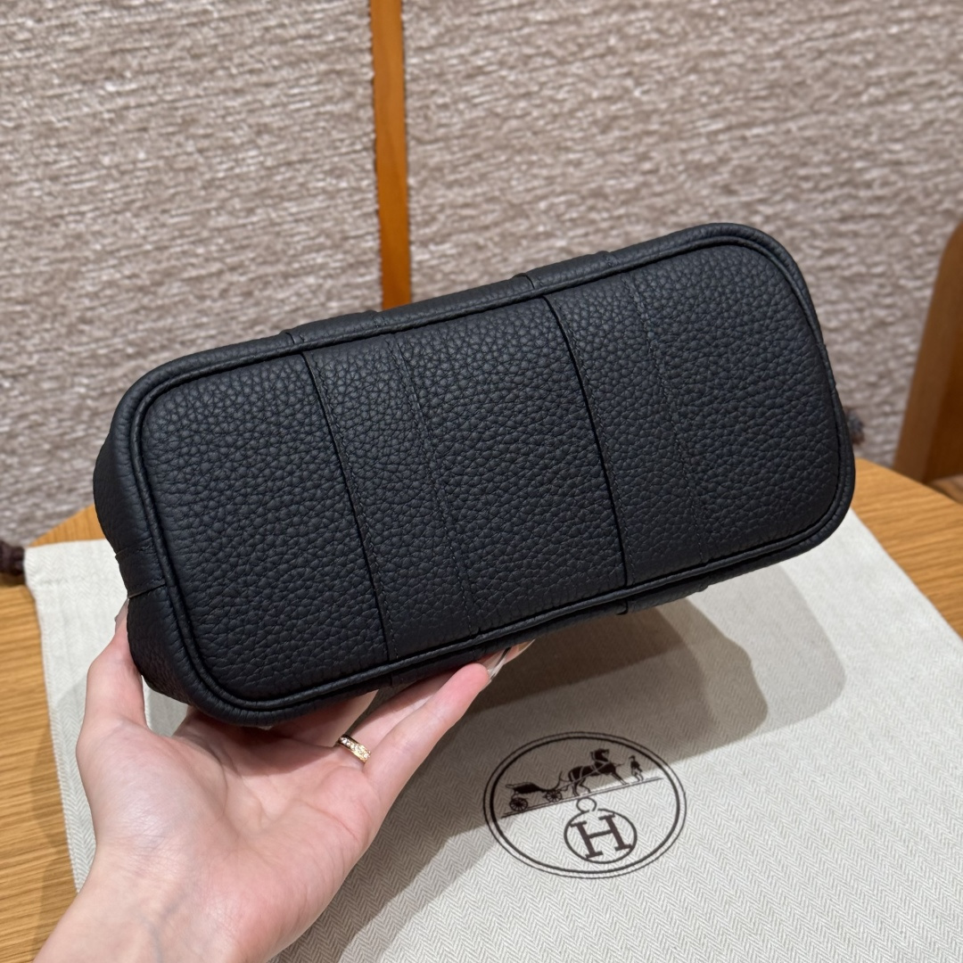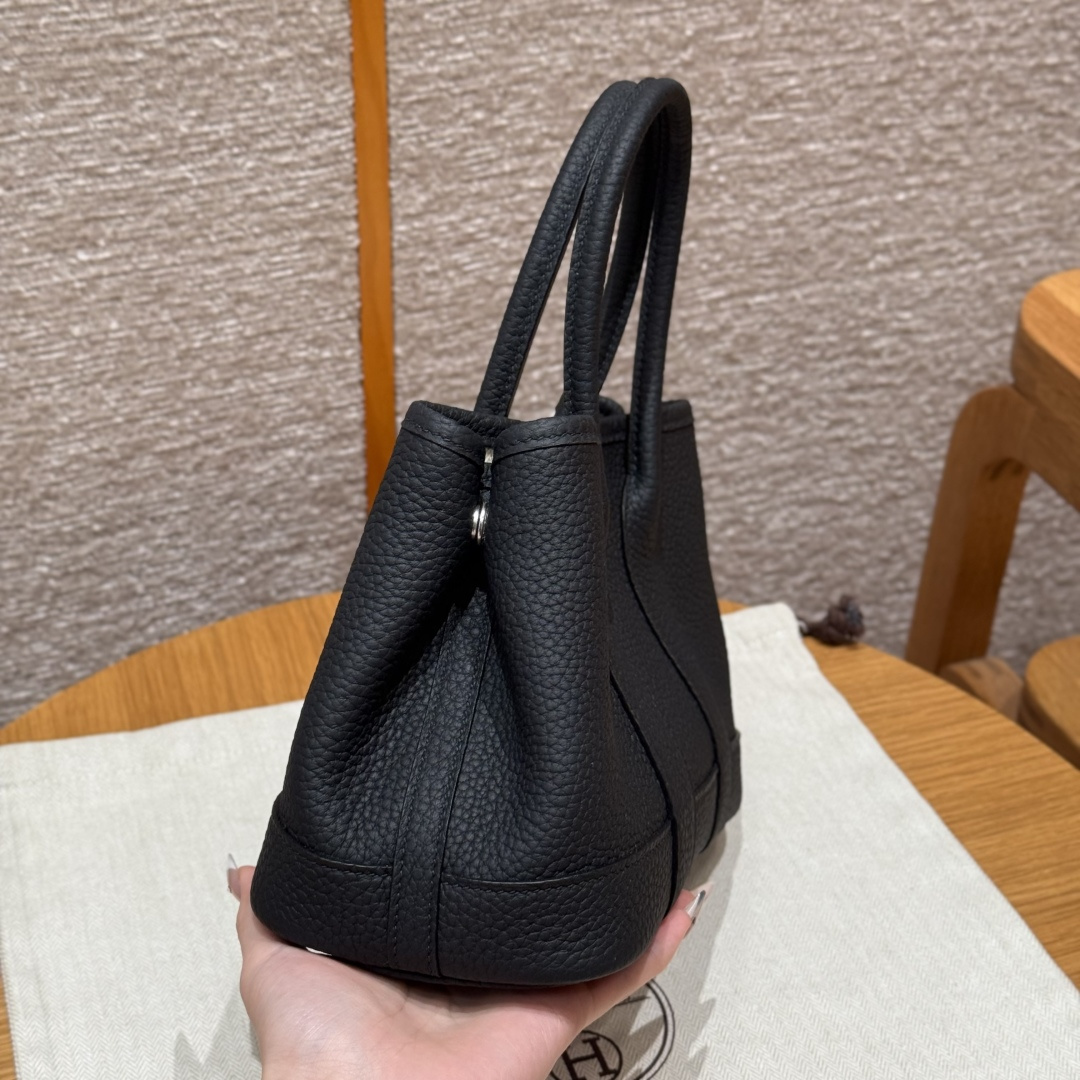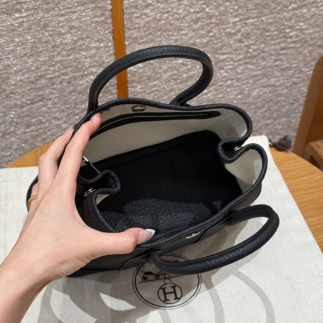 Garden bag 23cm, black, ntogo leather, original French imported cowhide, silver clasp, fully hand-stitched high-end custom-made.
