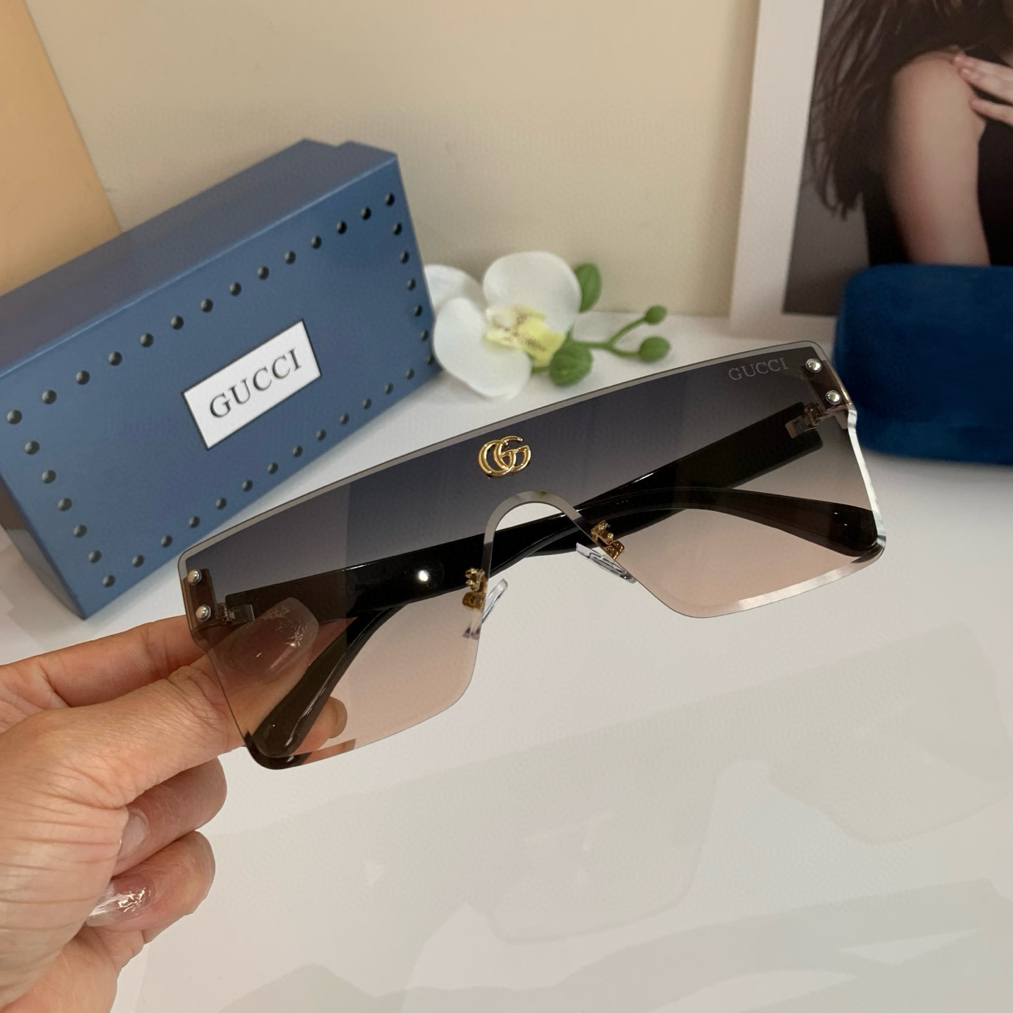 Gucci new square frame one-piece unisex sunglasses, internet-favorite personalized trendy glasses, retro and charming 🎍 essential driving sunglasses!