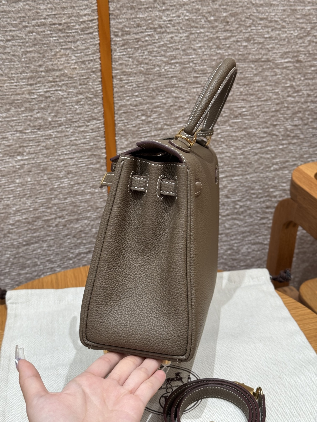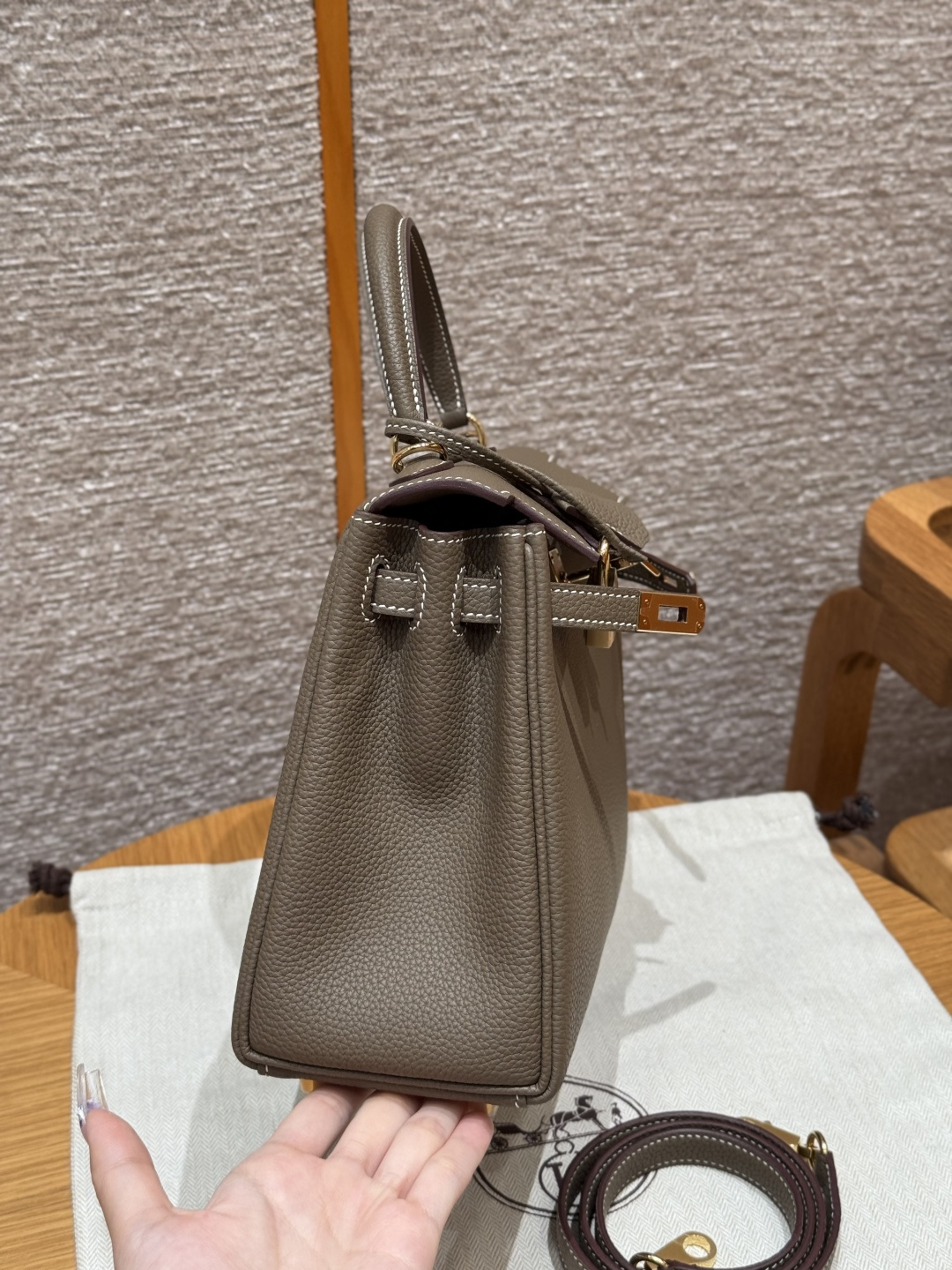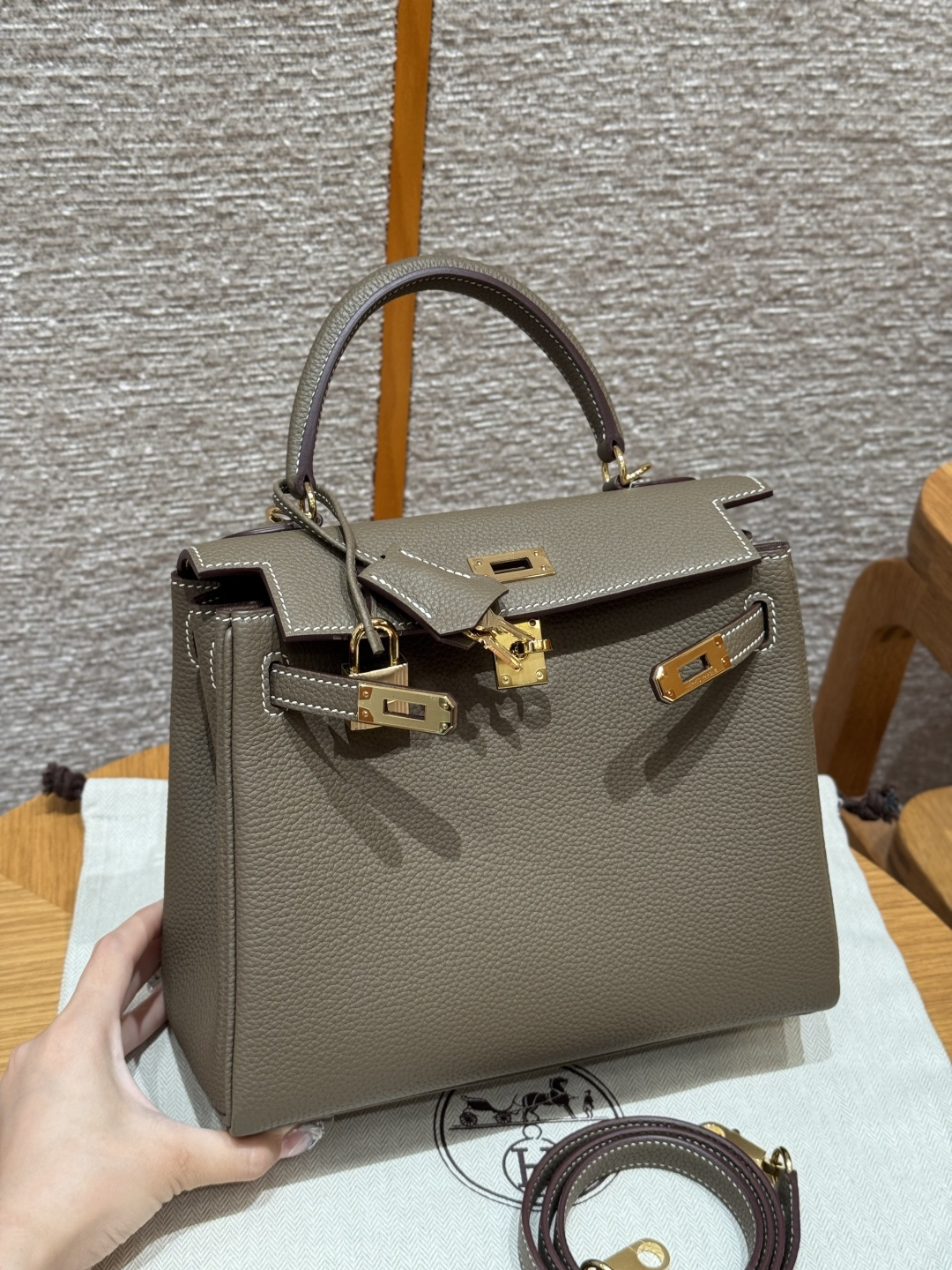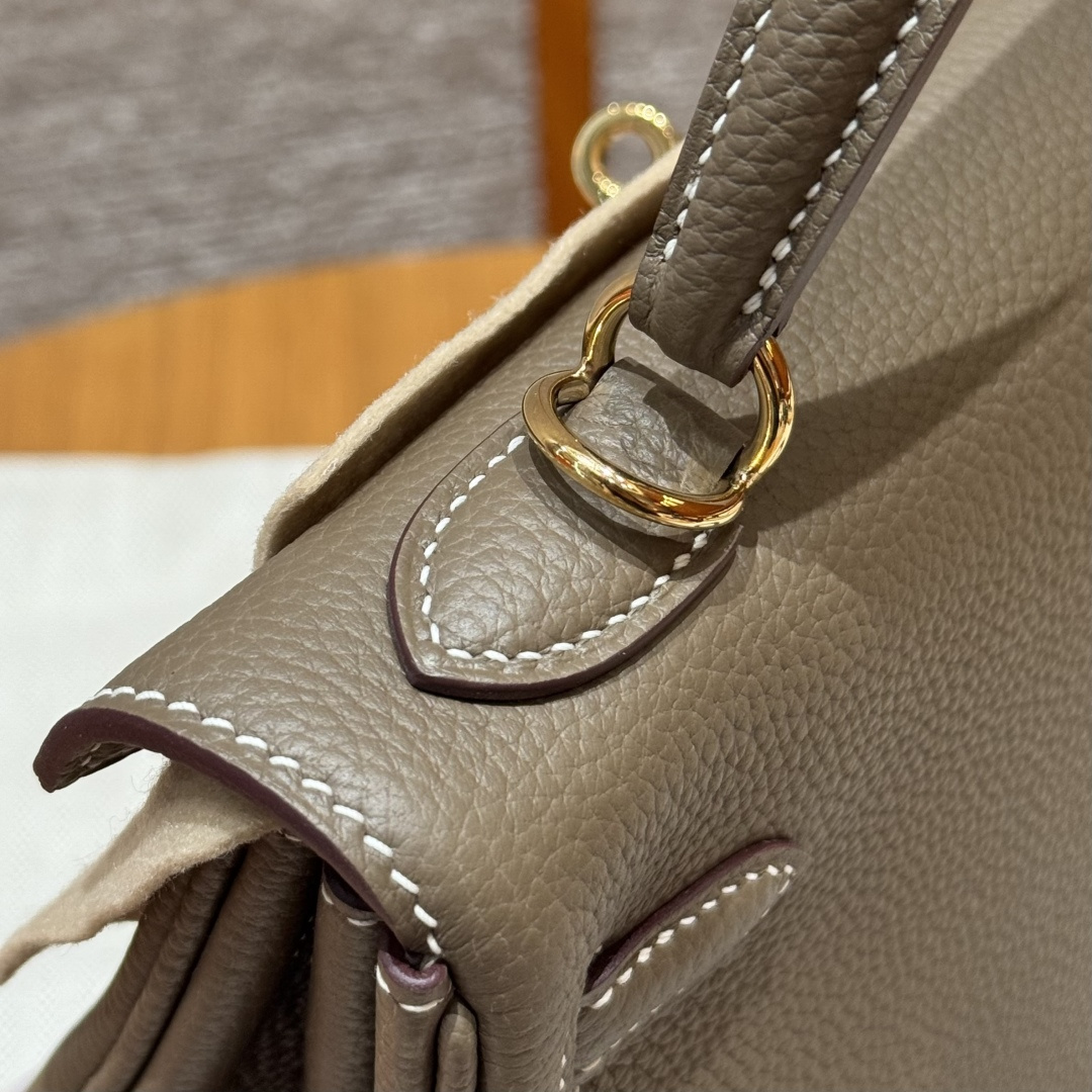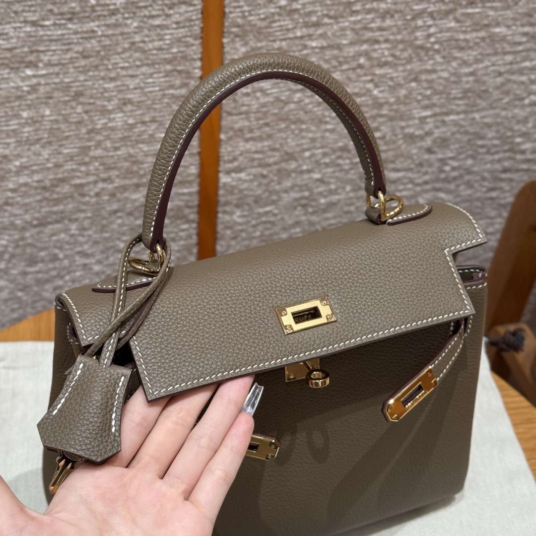 Kelly 25, Elephant Gray, Togo leather, original imported cowhide from France, gold hardware, premium fully handcrafted exclusive customization.