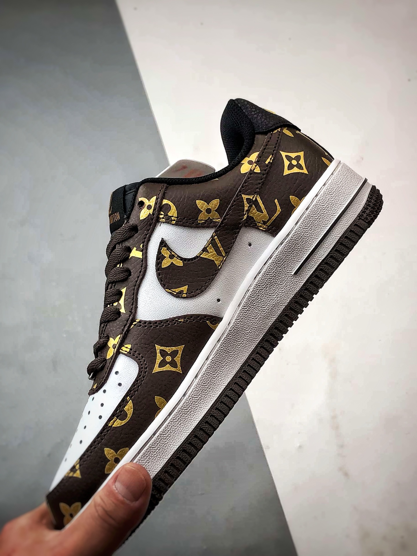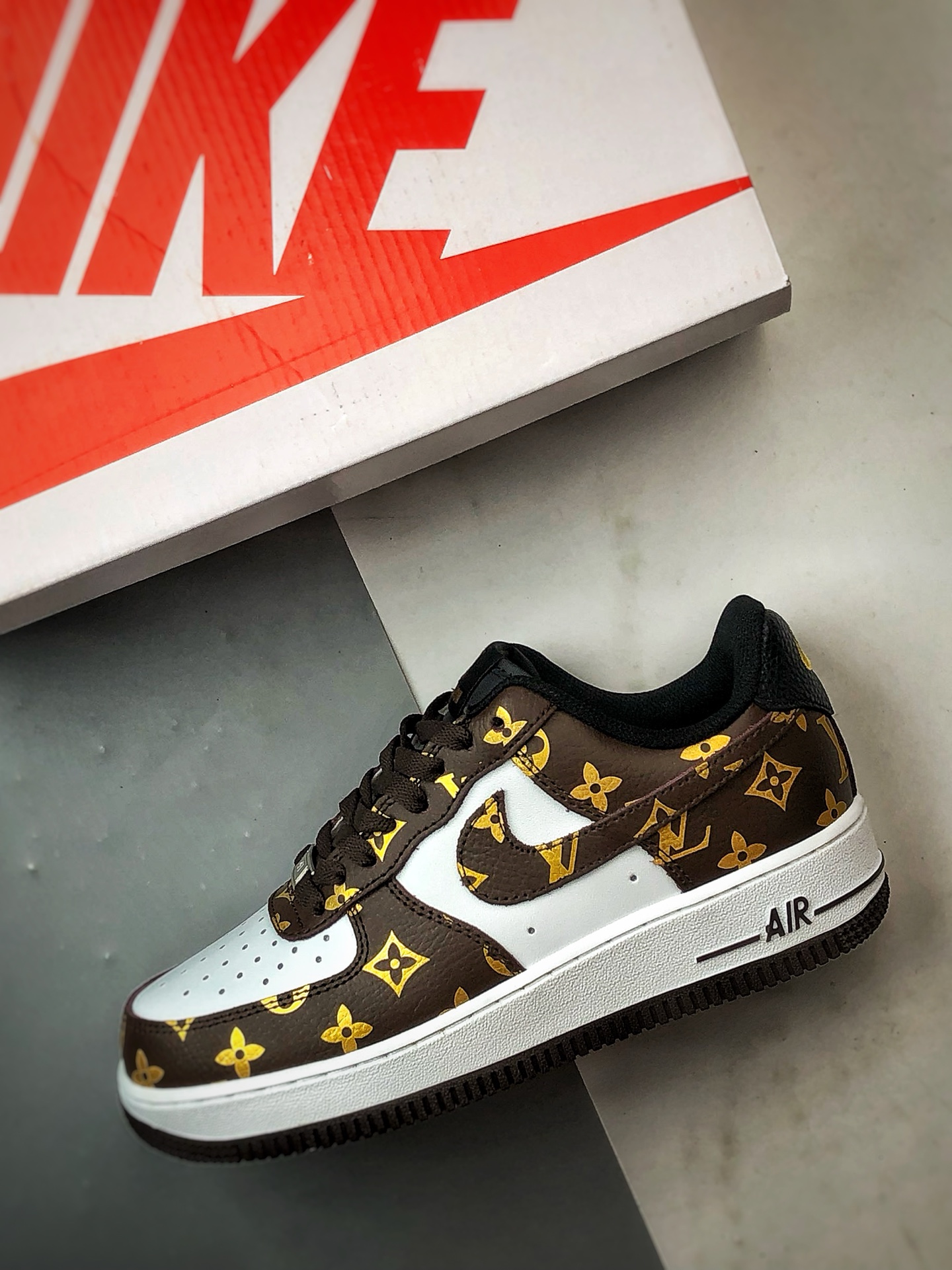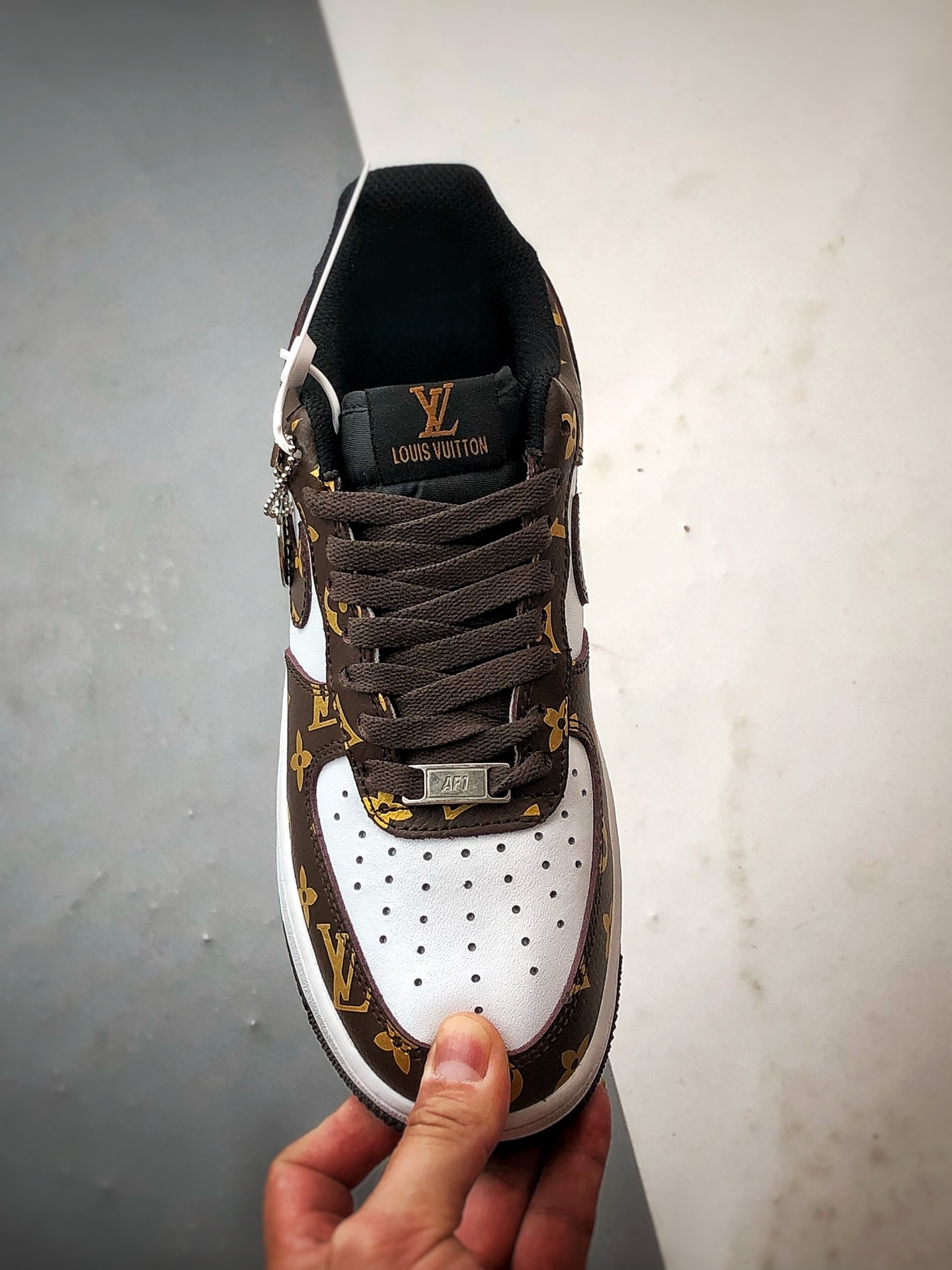LV x Air Force 1 Low White Brown Gold Print