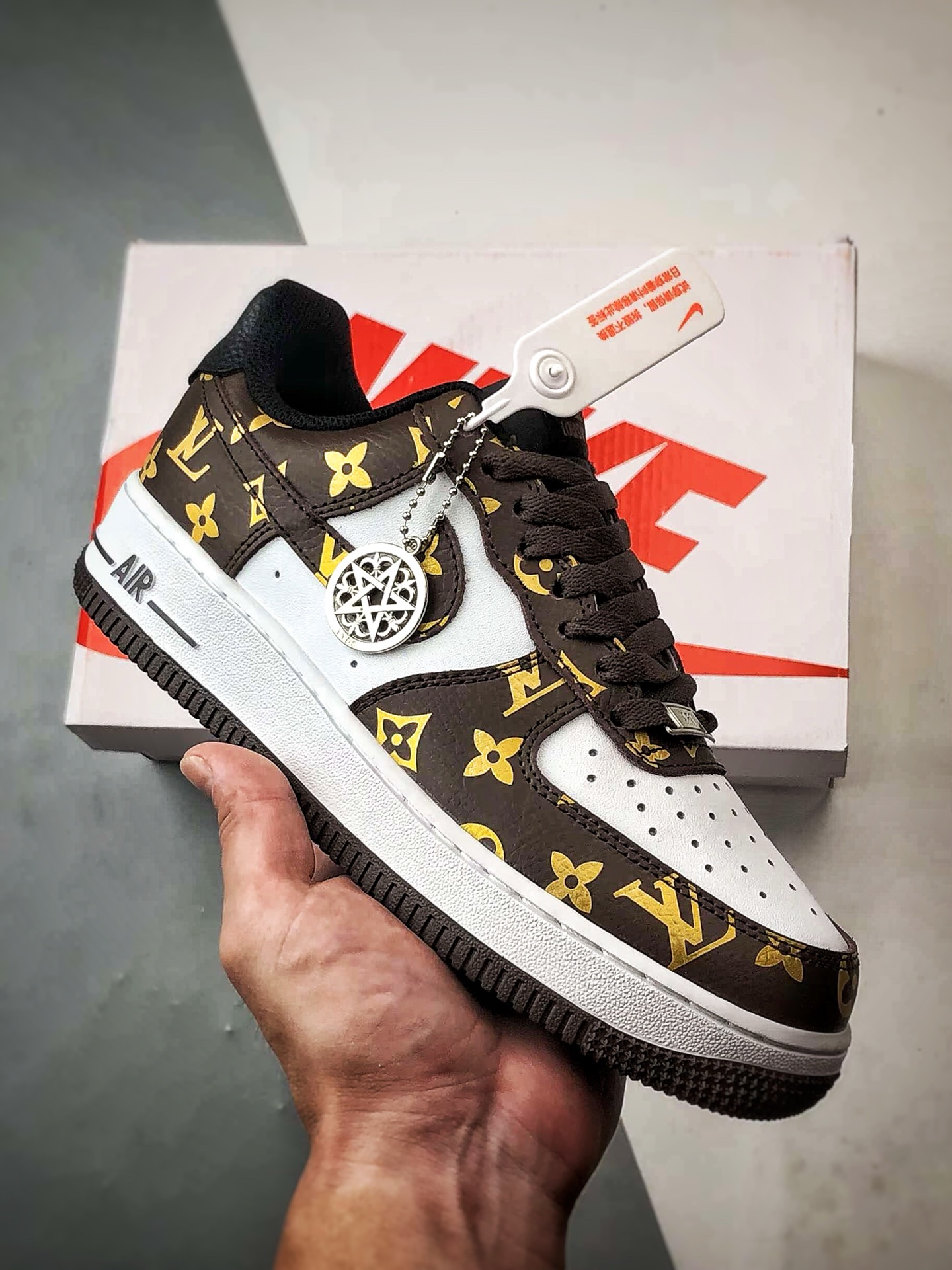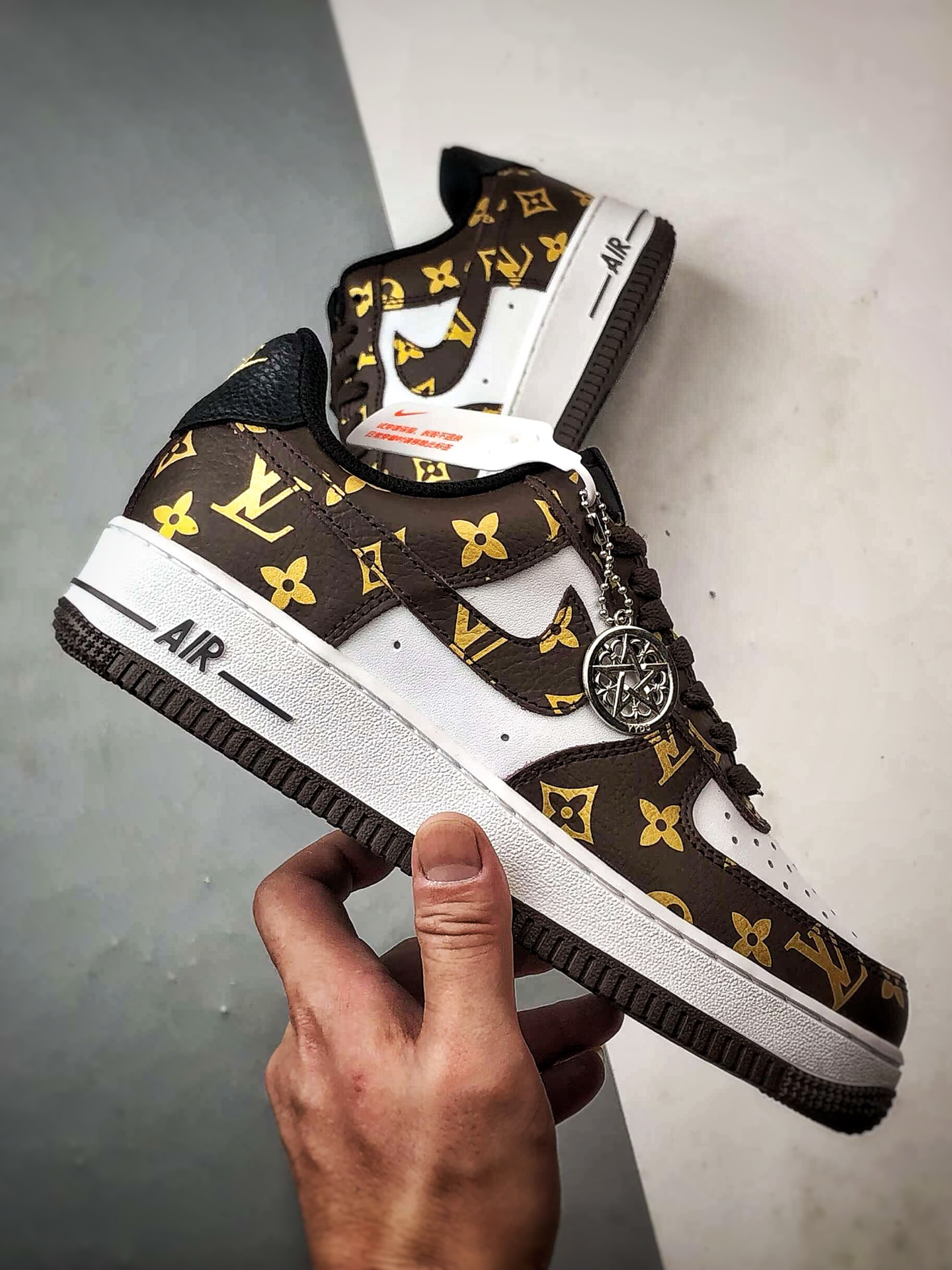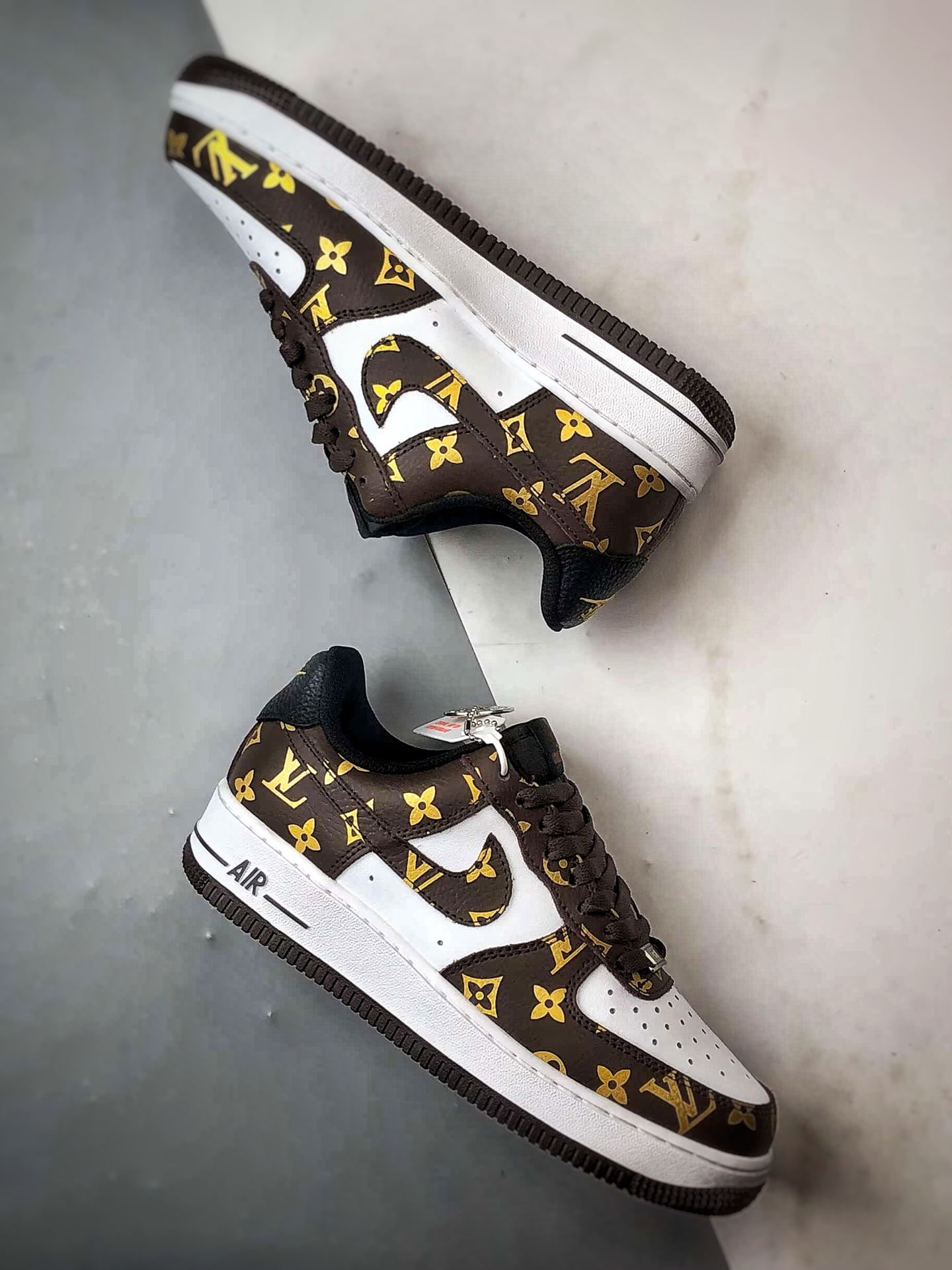 LV x Air Force 1 Low White Brown Gold Print