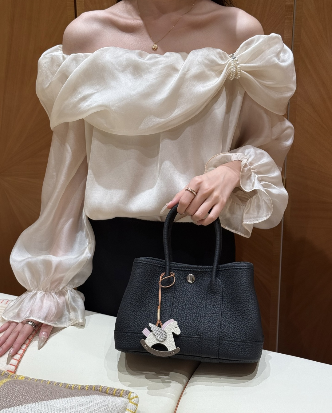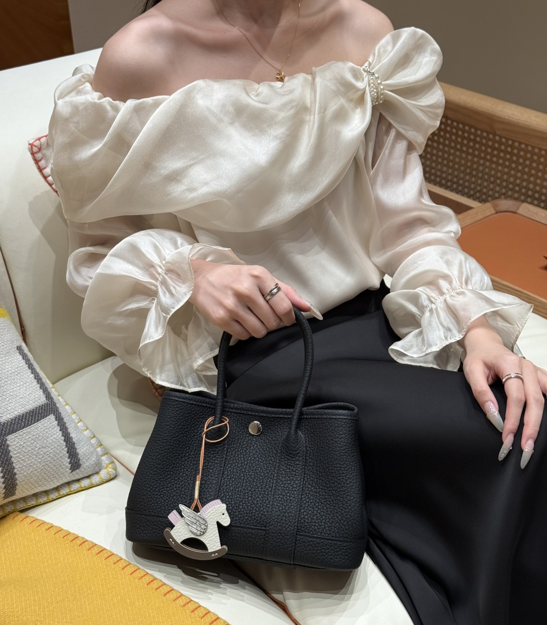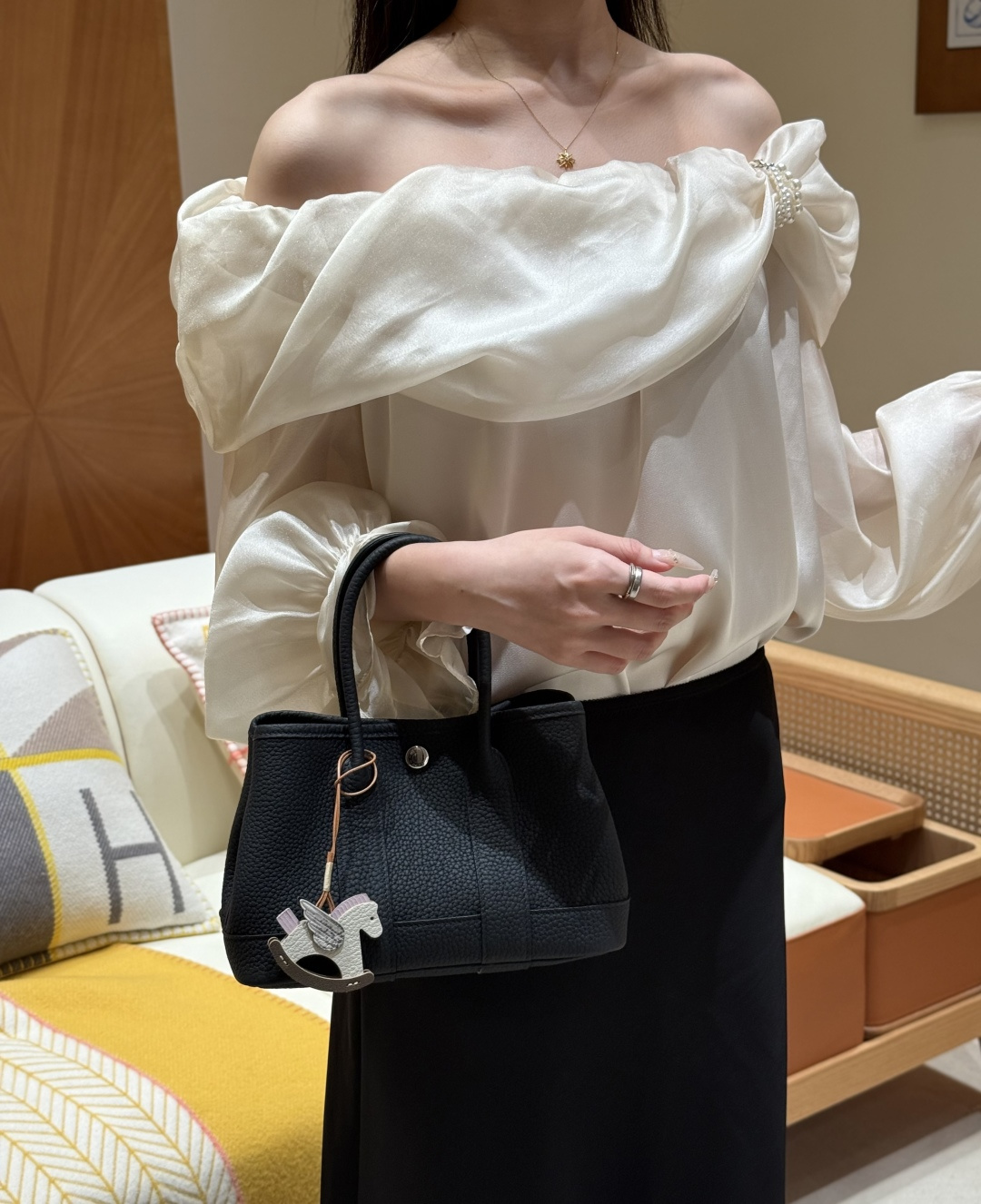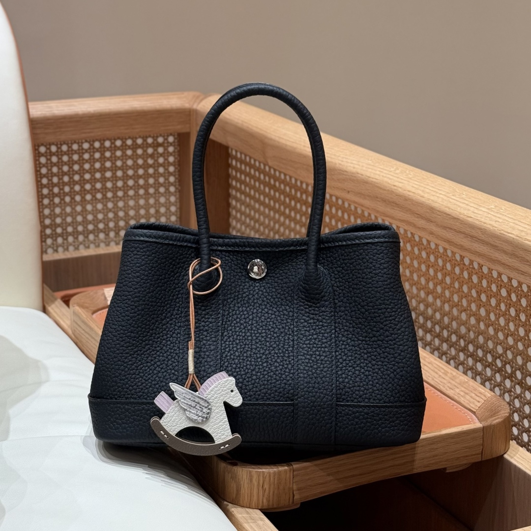 Garden bag 23cm, black, Negonda leather, original imported French cowhide, silver clasp, fully hand-stitched, handcrafted high-end custom‼️