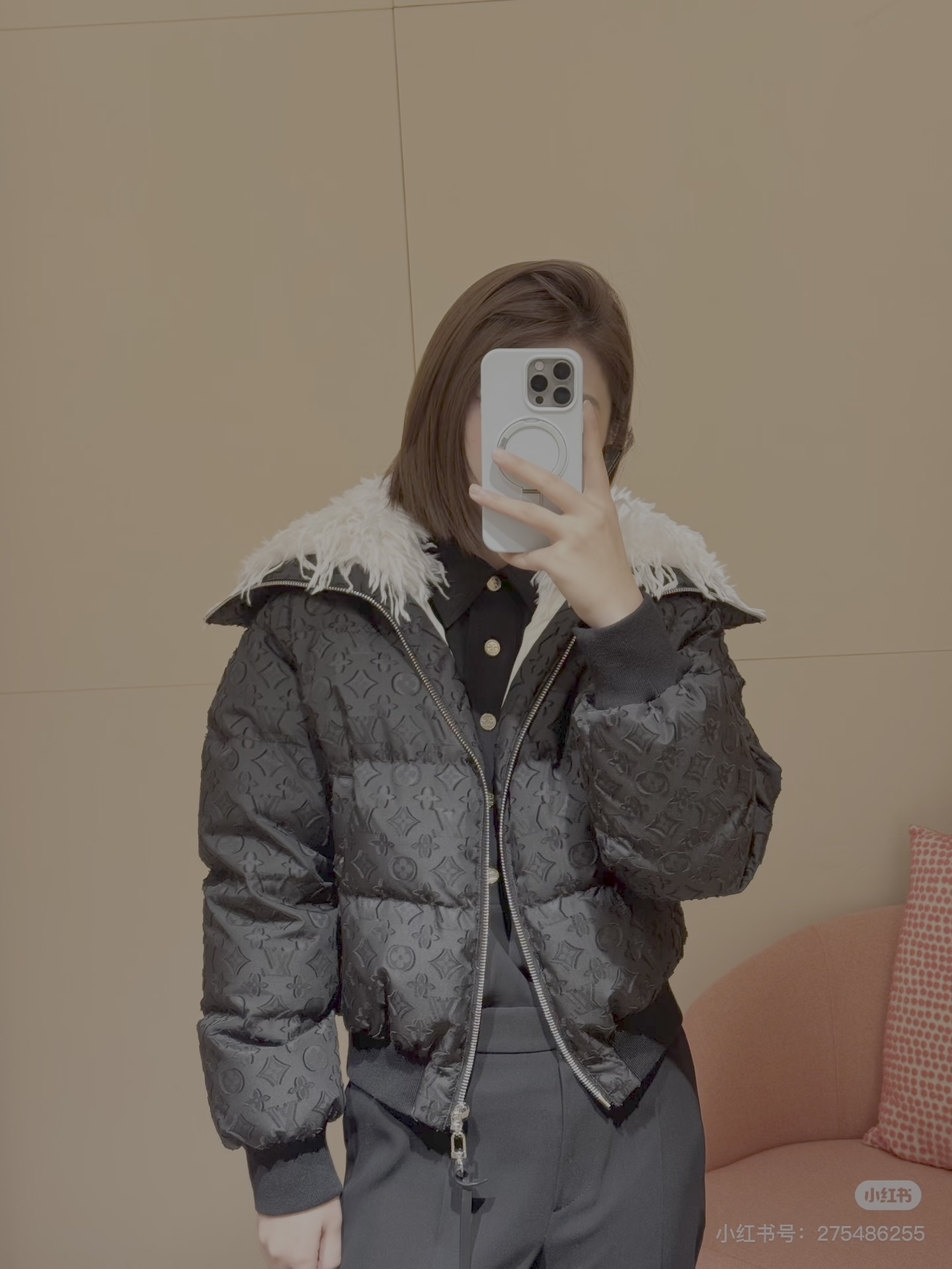 Original Title: Louis 25 Winter Ski Series Jacquard Short Down Jacket with Detachable Fur Collar SML