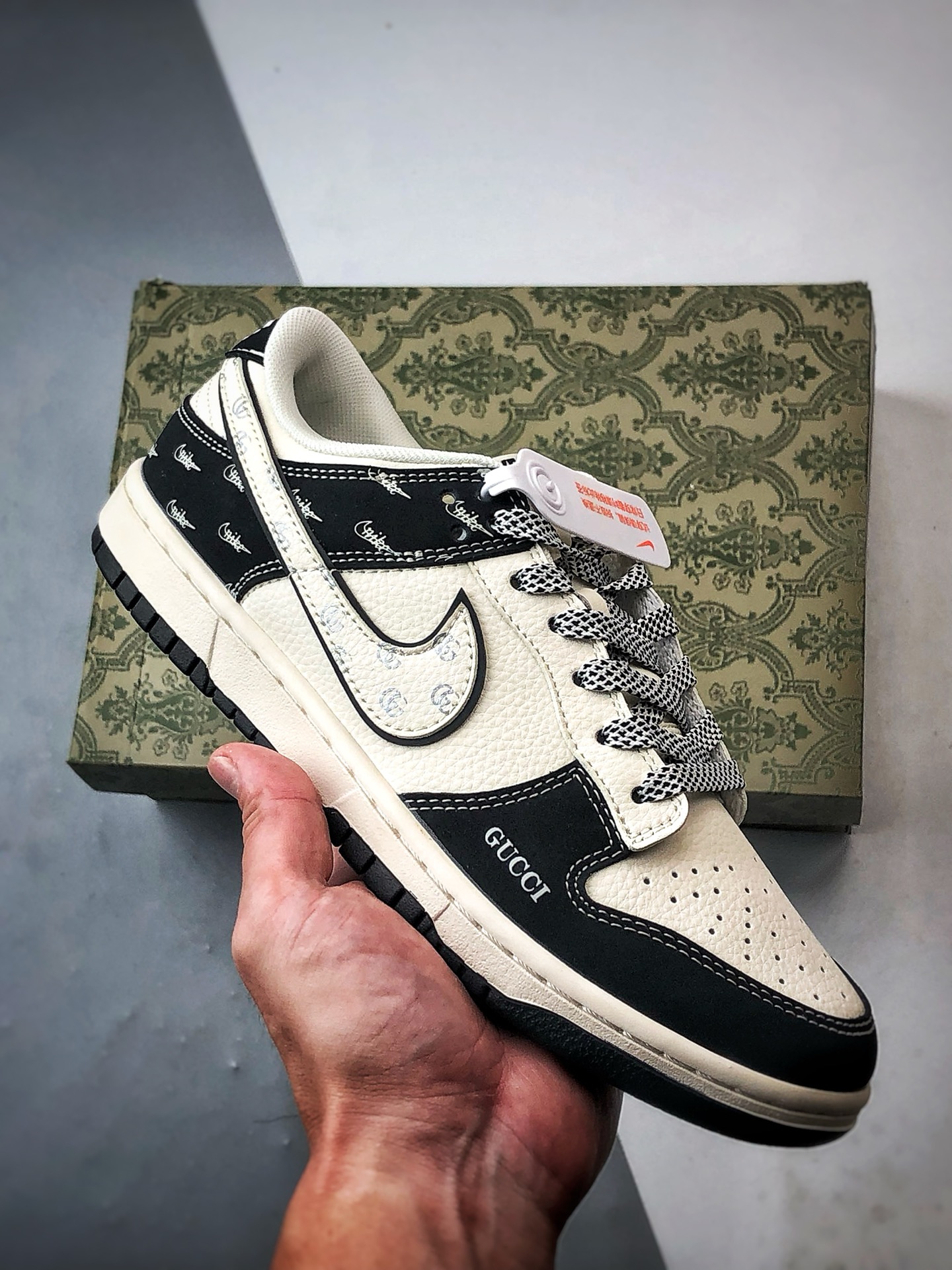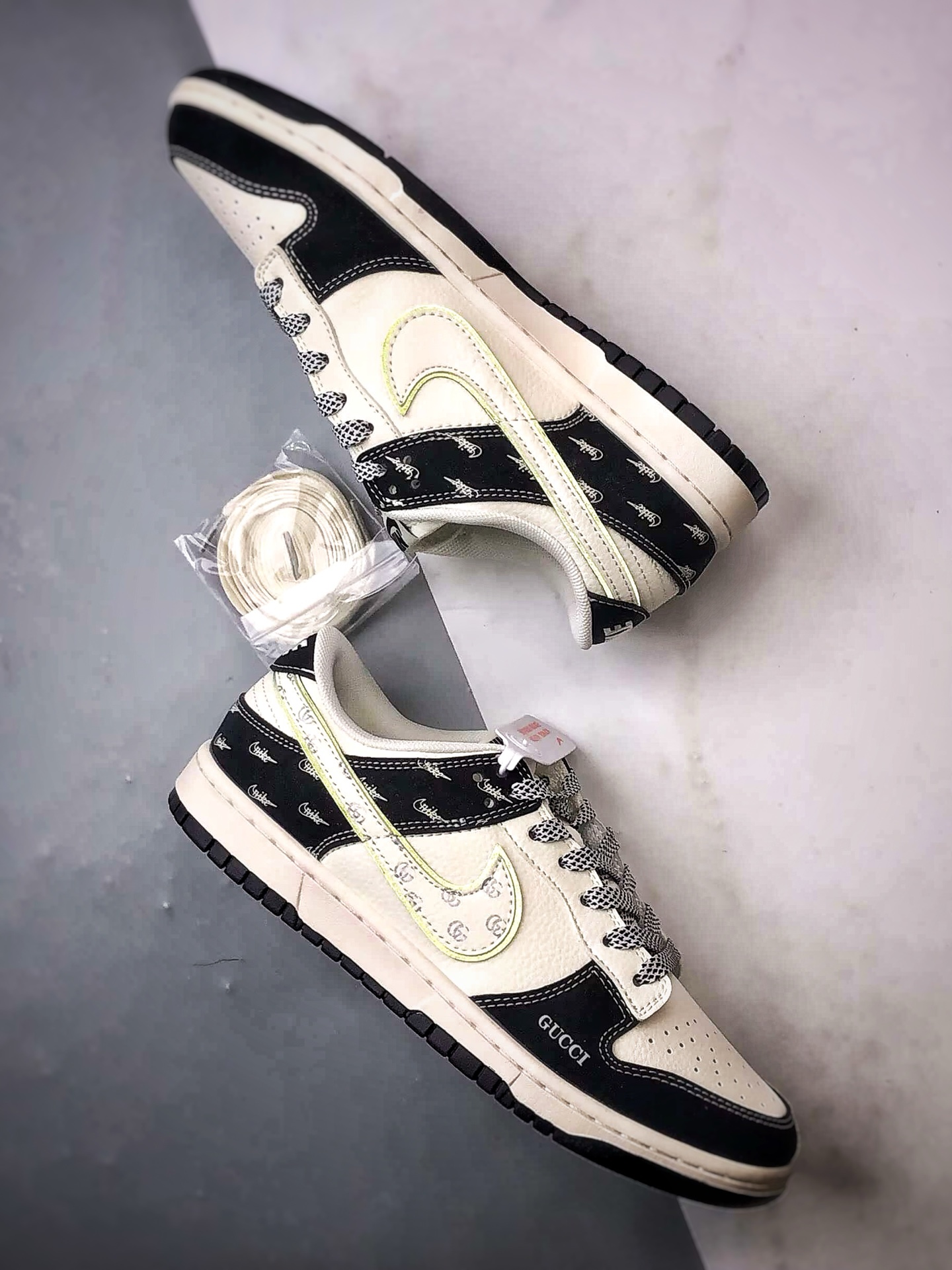 Gucci Print White and Black Low-Top Casual Sports Sneakers