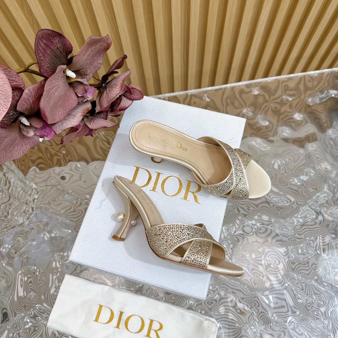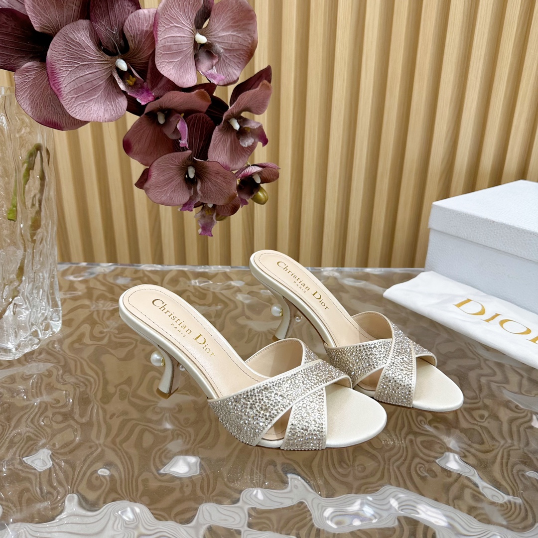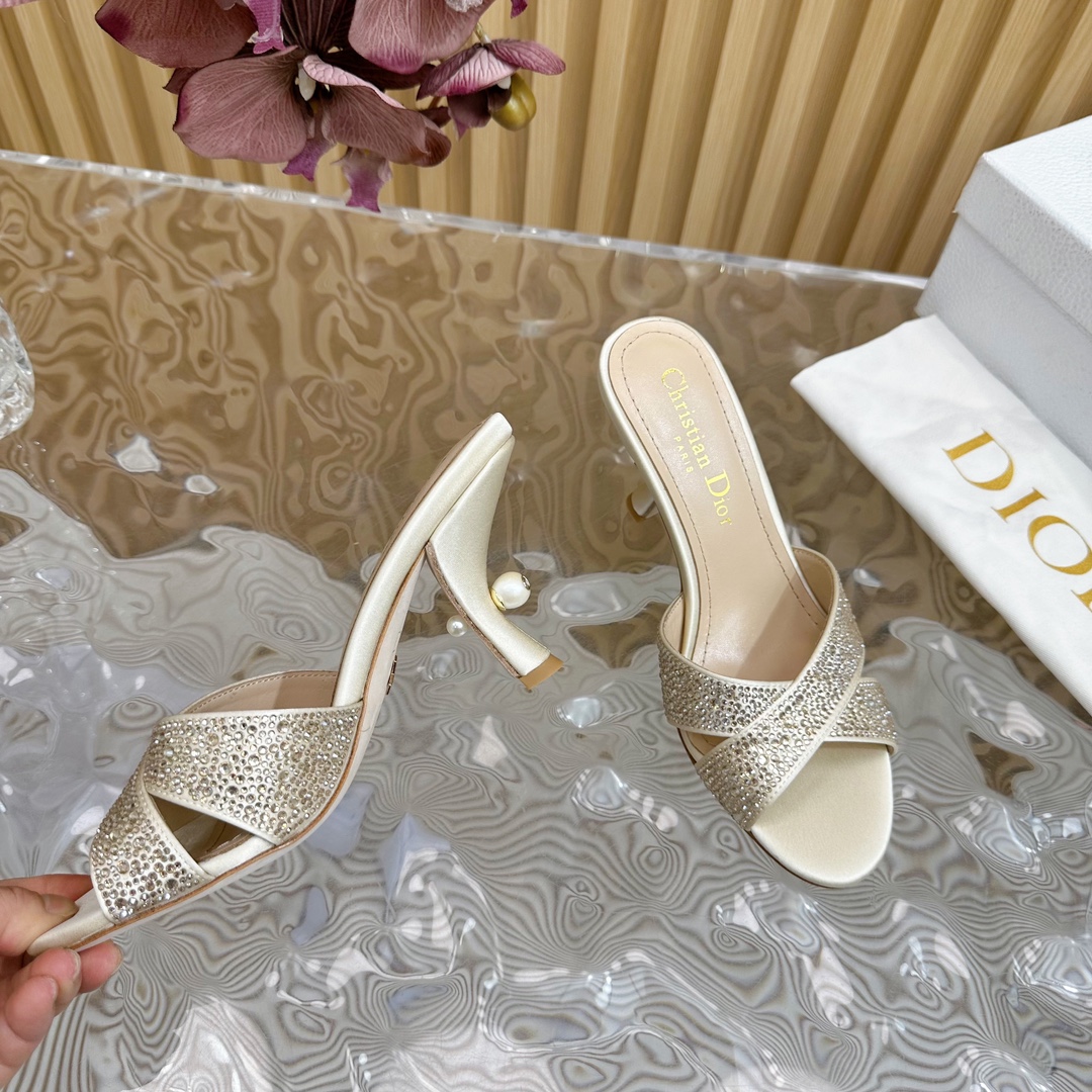 DIOR 2024/SS new spring summer collection pearl heel crossover strap sandals. This design perfectly captures what women love, featuring a high heel back strap.