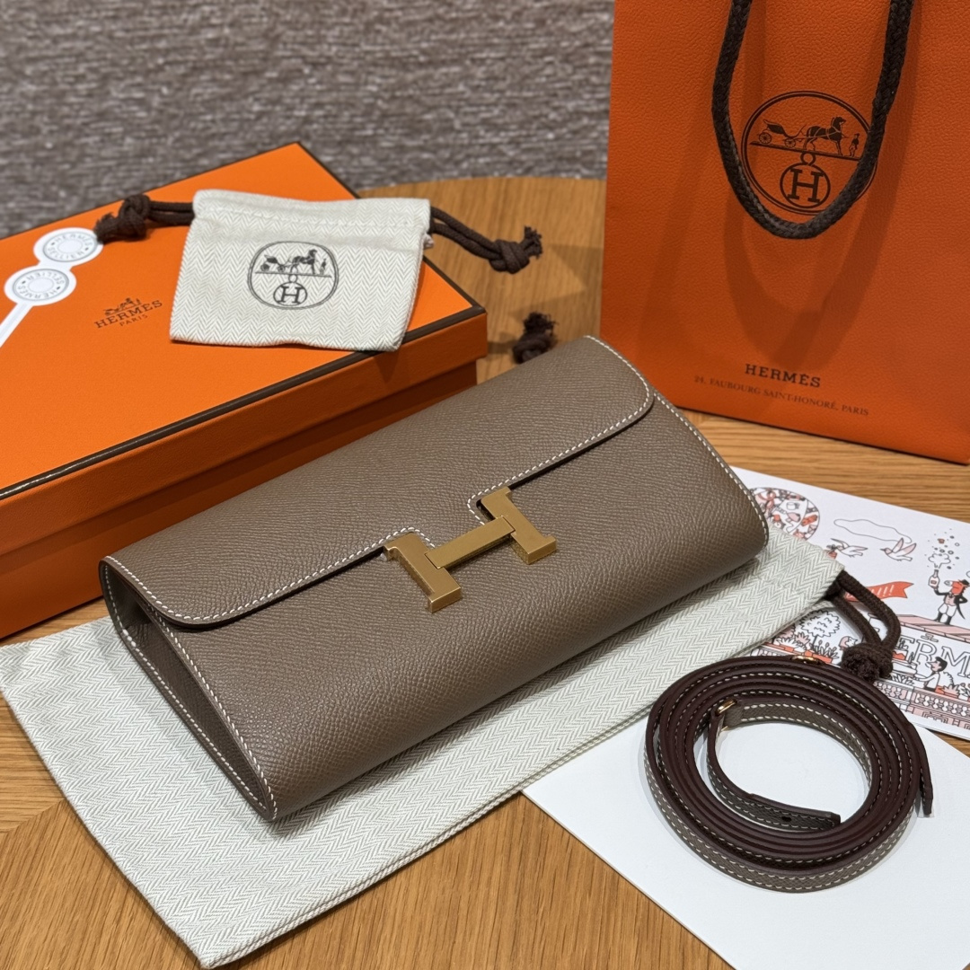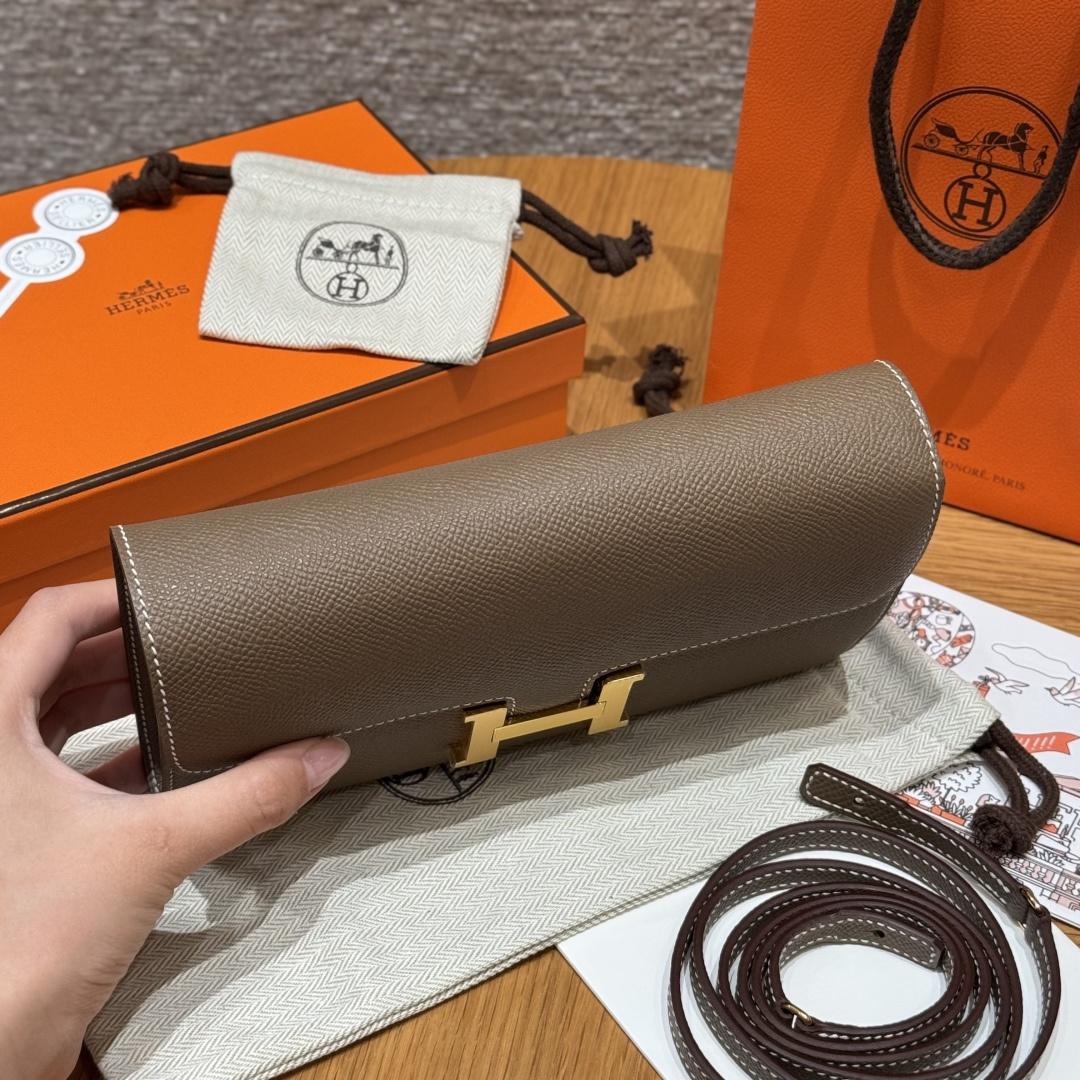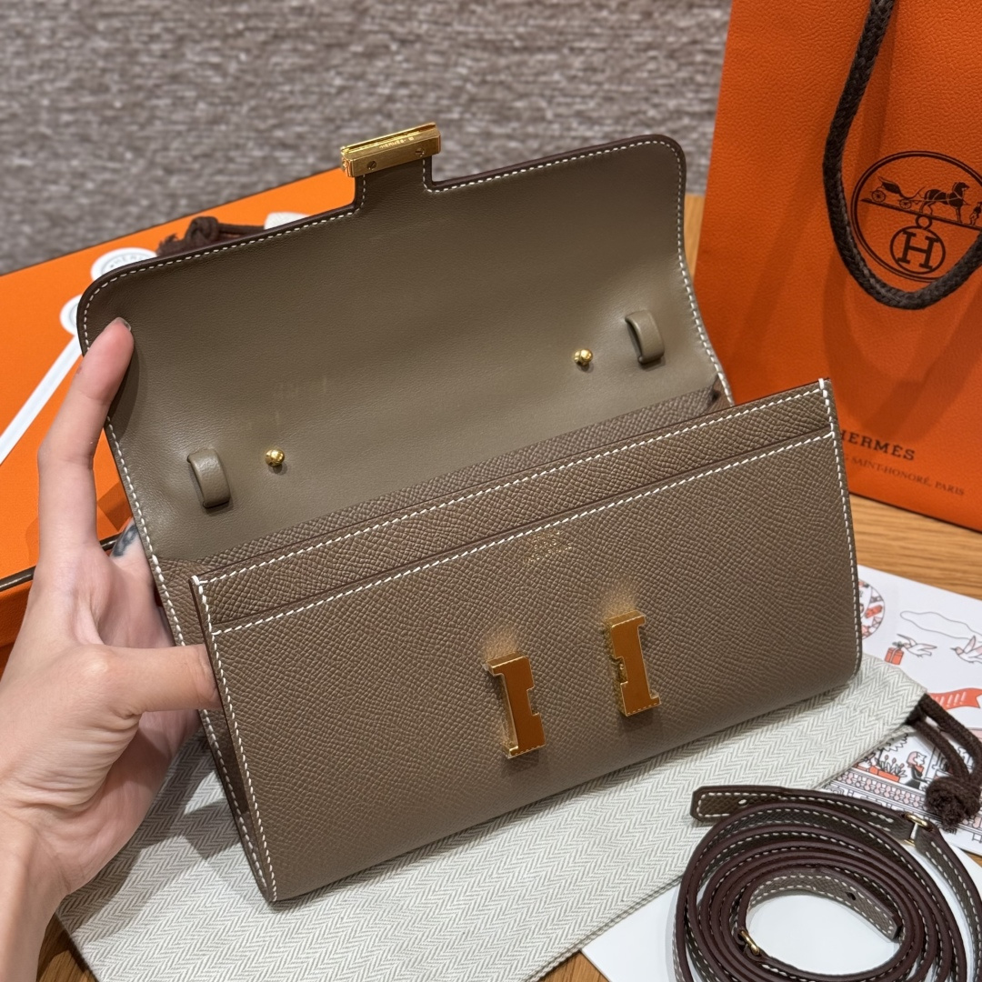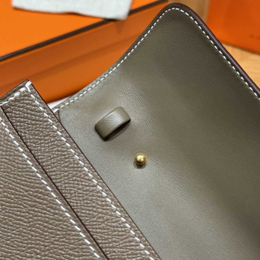 Constance to go, Elephant Gray, genuine French imported veiner calfskin, gold clasp, high-end fully handcrafted exclusive custom-made.