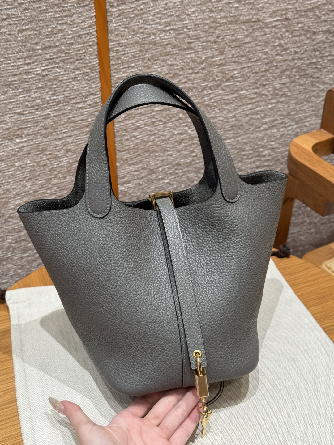 18cm basket, cumulonimbus gray, tc leather, original French imported cowhide, gold clasp, high-end fully handcrafted exclusive customization.