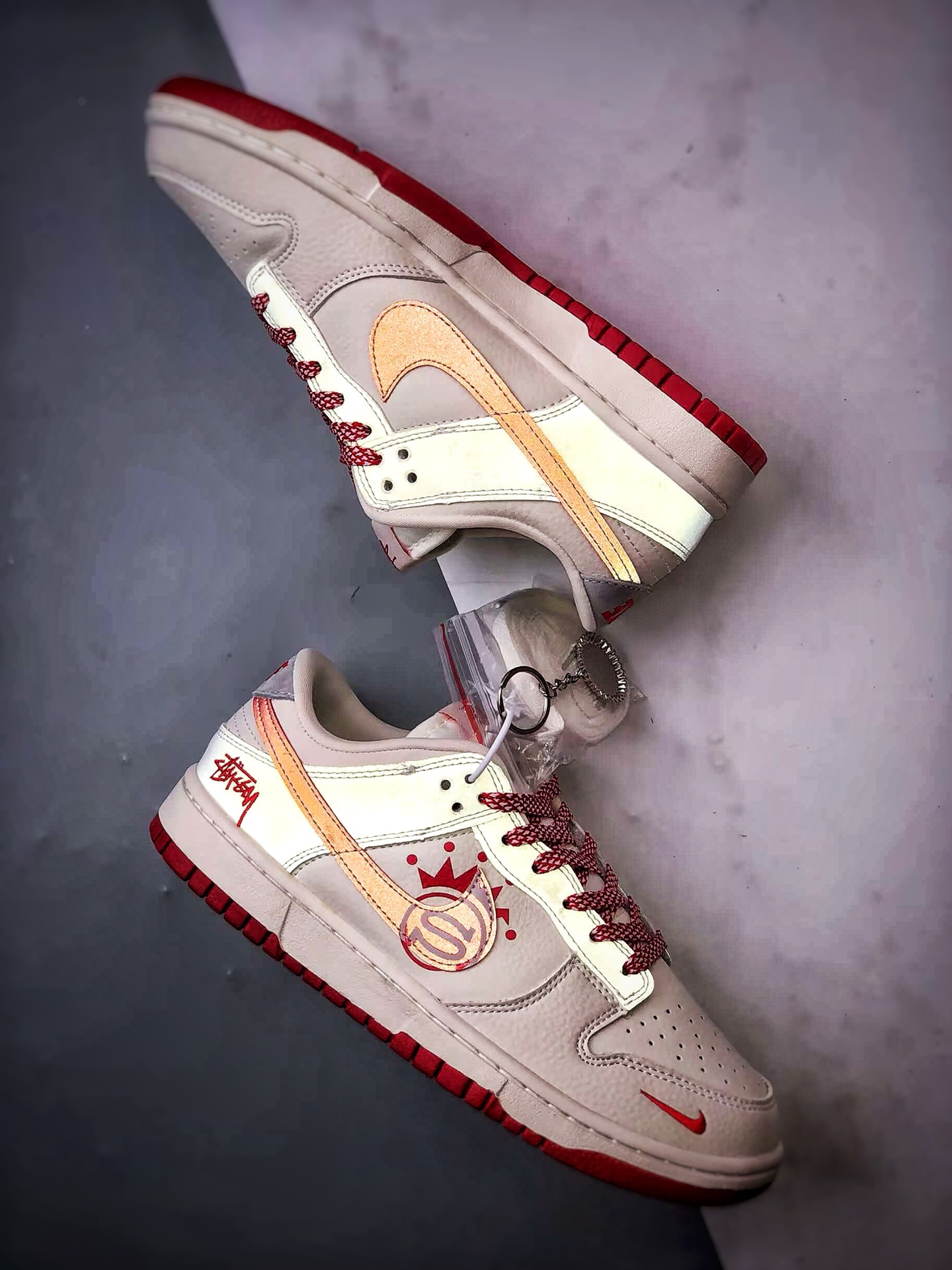 Stussy Off-White Red Low-Top Casual Sports Sneakers