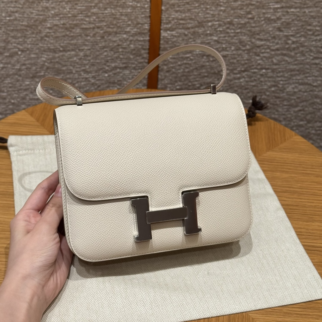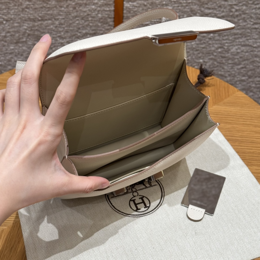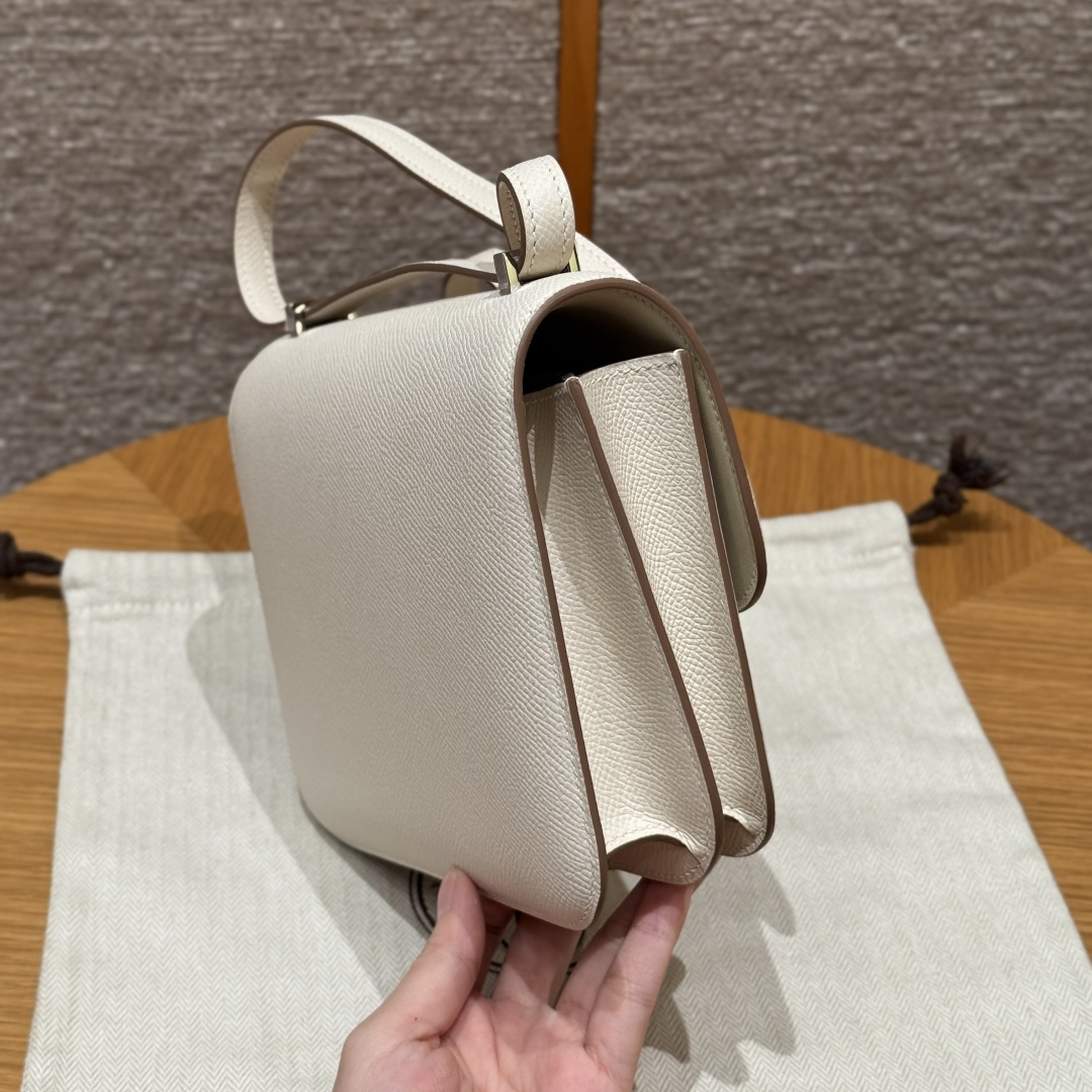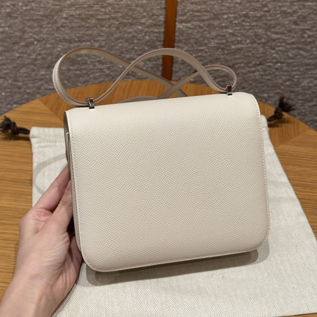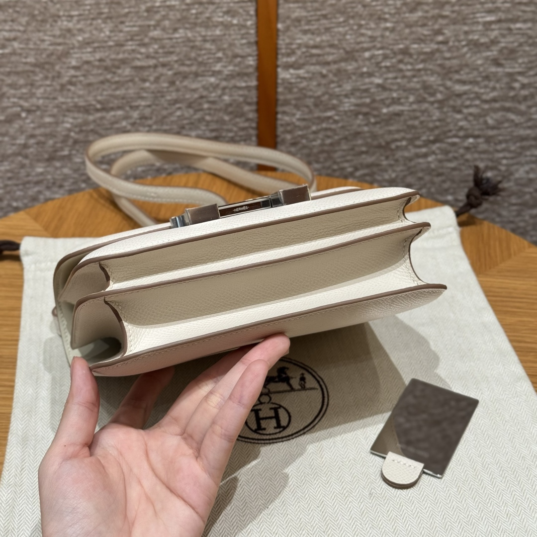 Constance 19cm - Mirror Version, Chalk White, French imported original factory grained leather, silver buckle, high-end fully handcrafted exclusive custom-made.