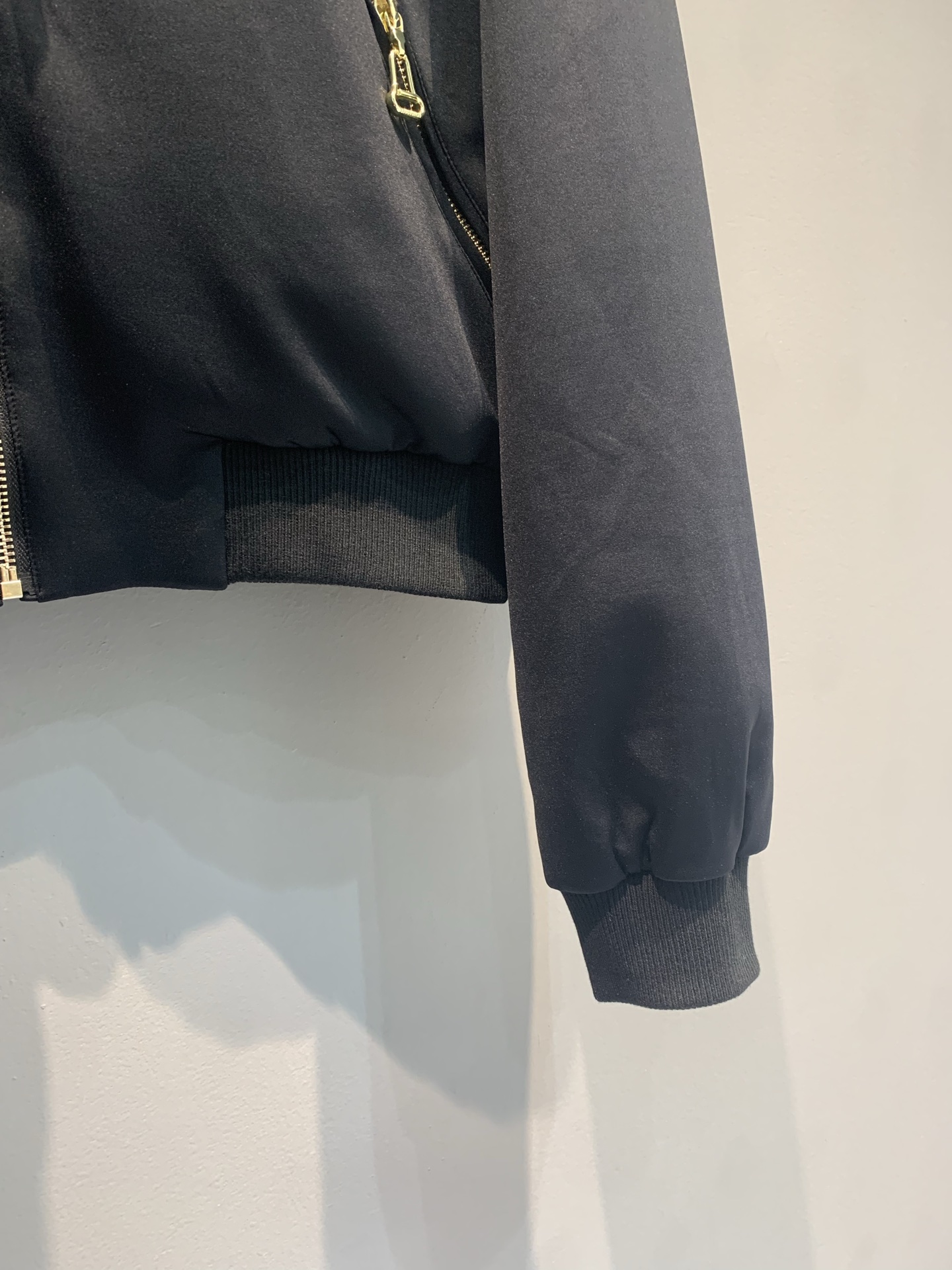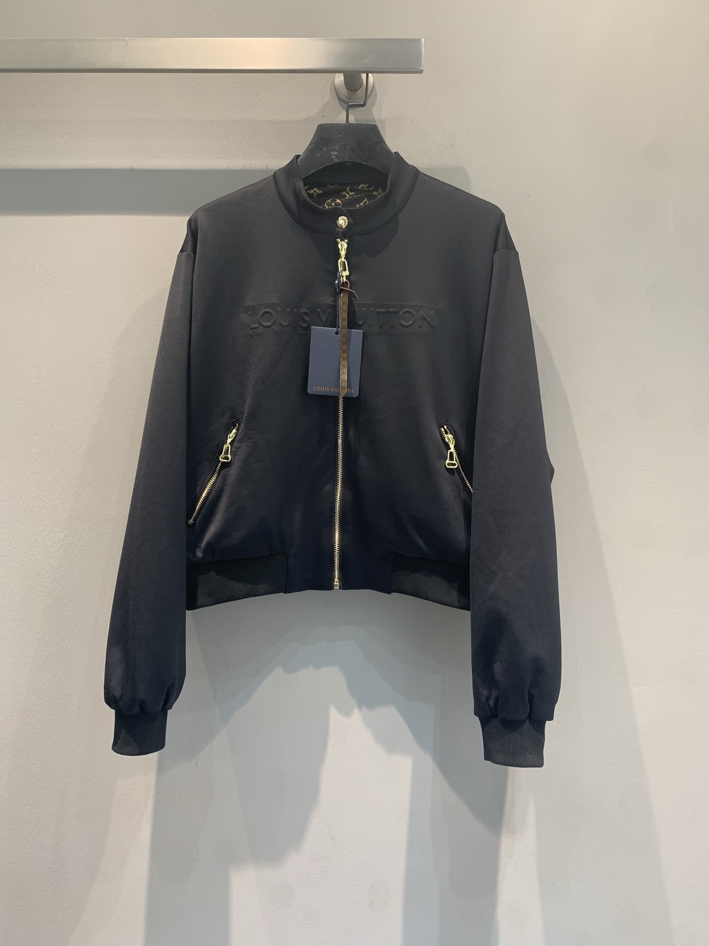 New release 🔥 Now available 📢 Original development L brand 2025 early autumn new boyfriend-style 3D letter monogram stand-collar baseball jacket. Made with YB custom fabric ✨ Classic black, capturing a high-end relaxed feel, 3D embossed LOGO,自带奢牌辨识度, sleek short style + pilot silhouette, suitable for diverse outfits, zippered pockets with hidden clever details, practical and stylish 💫 Wear it to easily create a lazy, luxurious vibe, a walking fashion business card 🎩 Sizes: 36 38 40