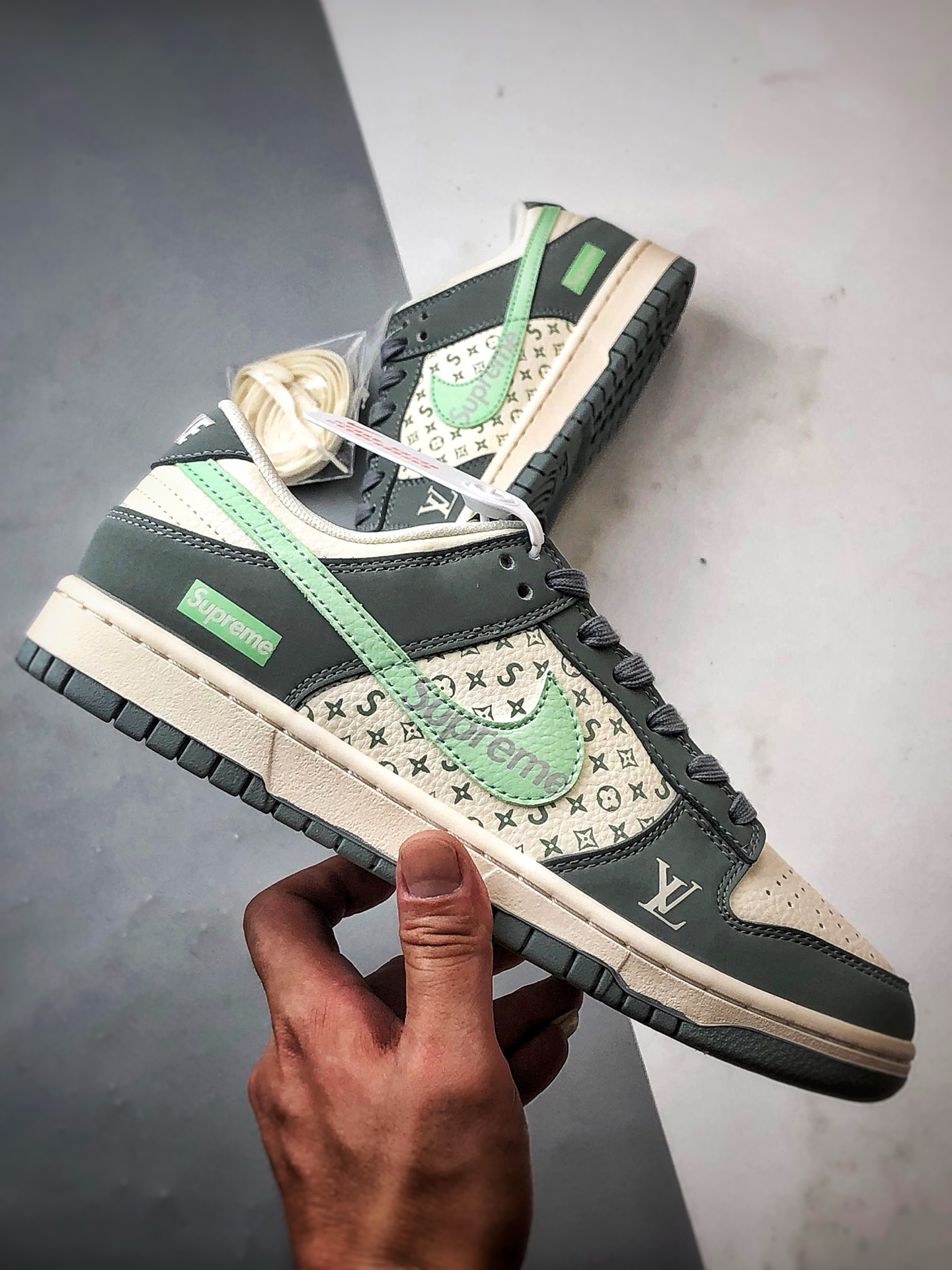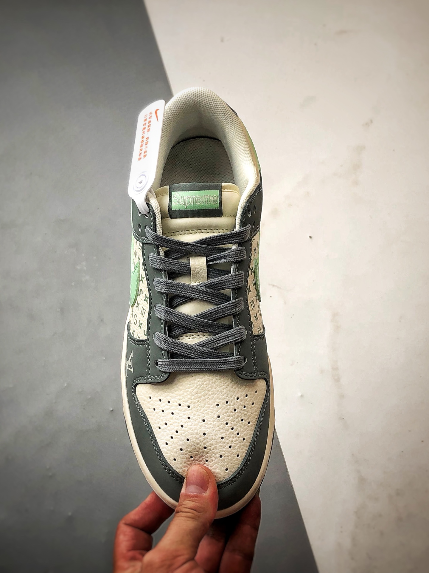 Sup Beige Mint Green Hook Low-Top Casual Sports Sneakers