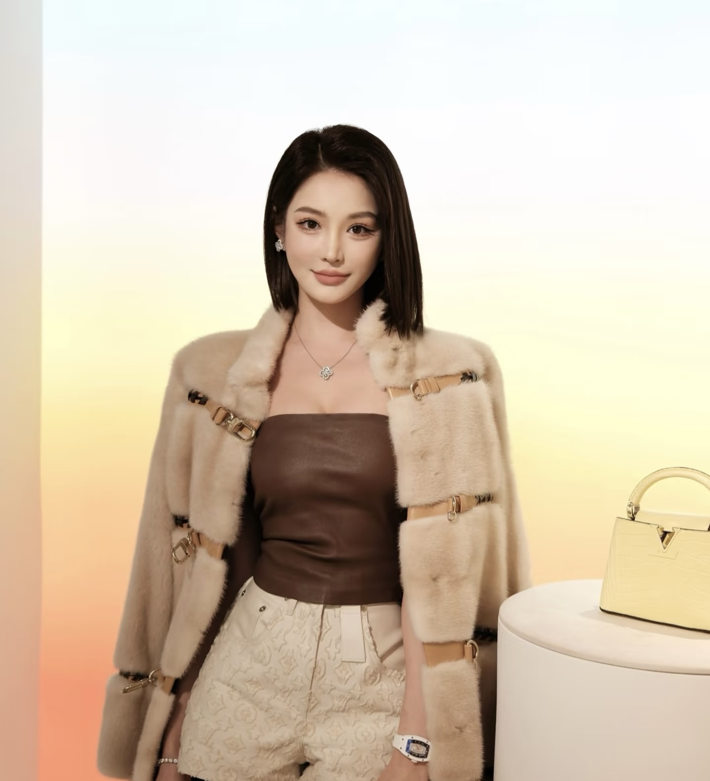 LV 25 Venue Limited Mink Fur Coat Imported Sable Fur Smooth and Lustrous Mixed Leather + Metal Buckles Full of Details Loose Cut Easily Creates a Casual Luxury Style SMLXL