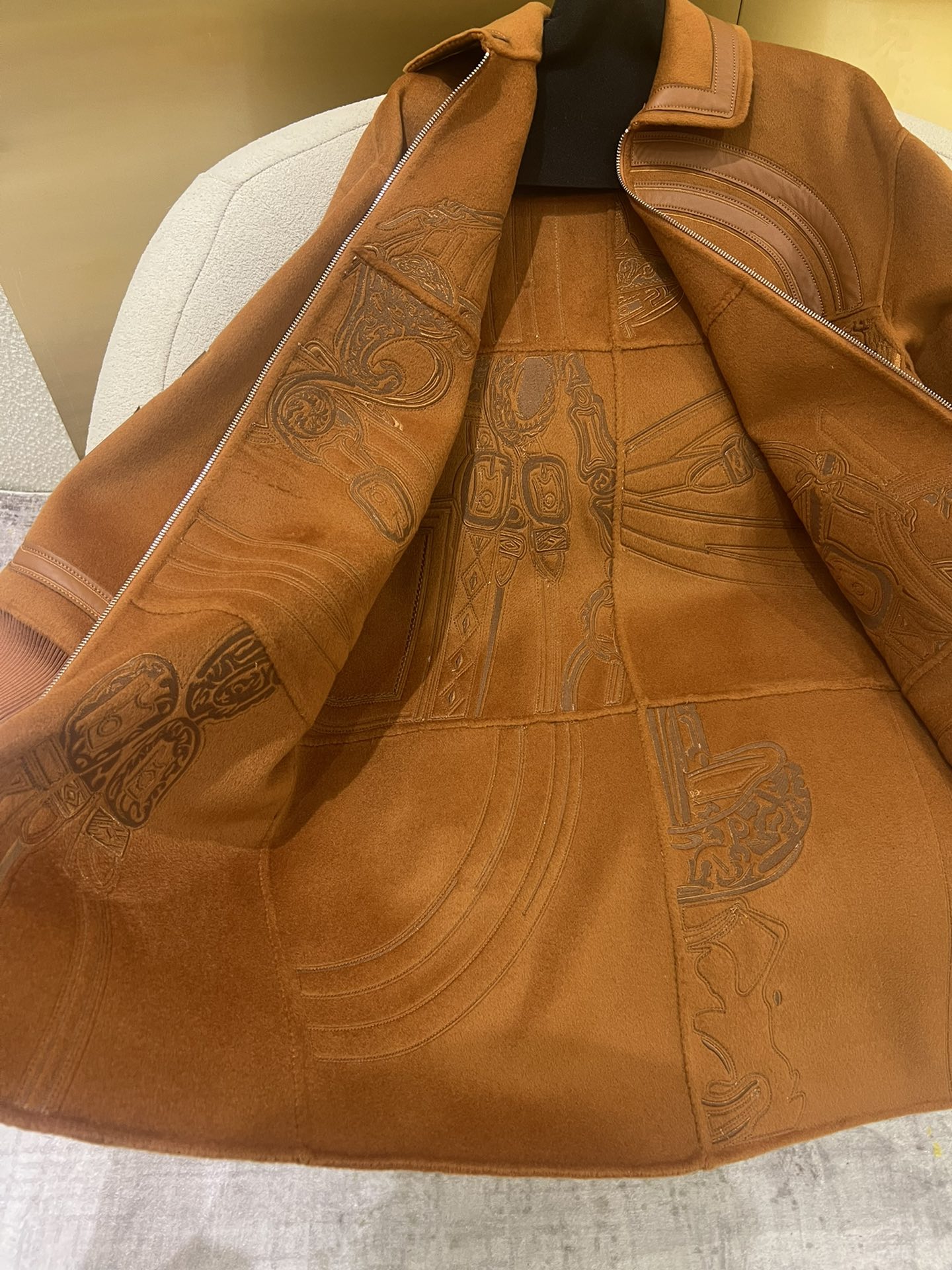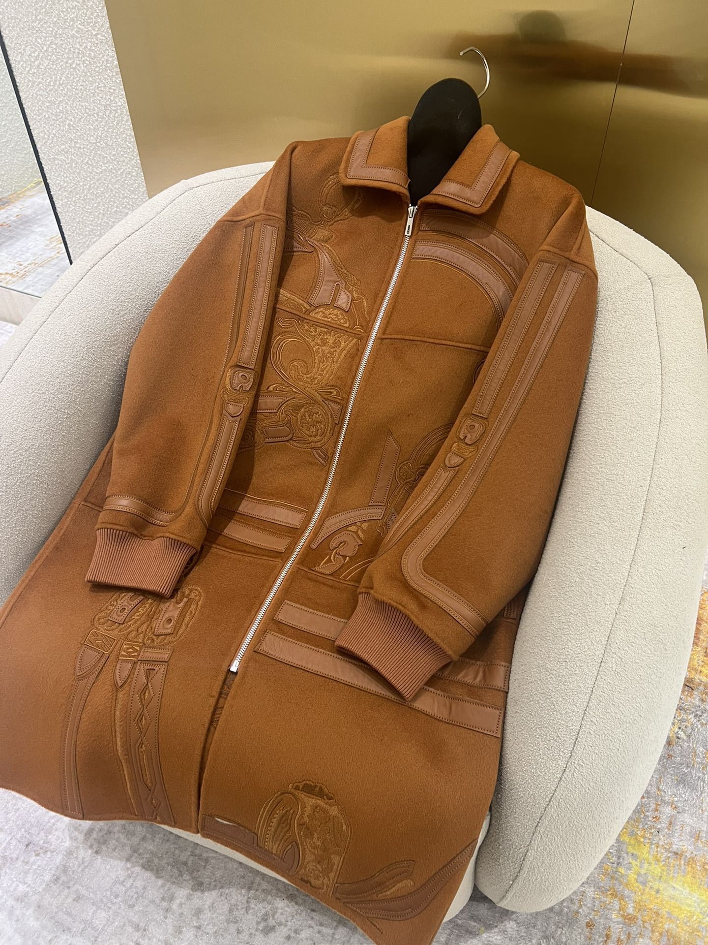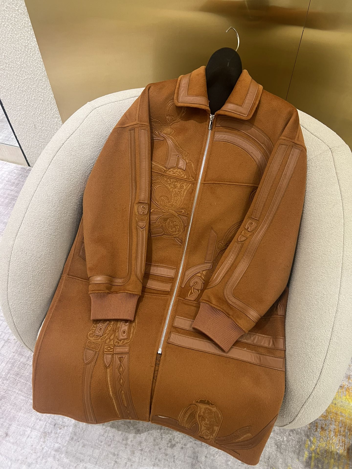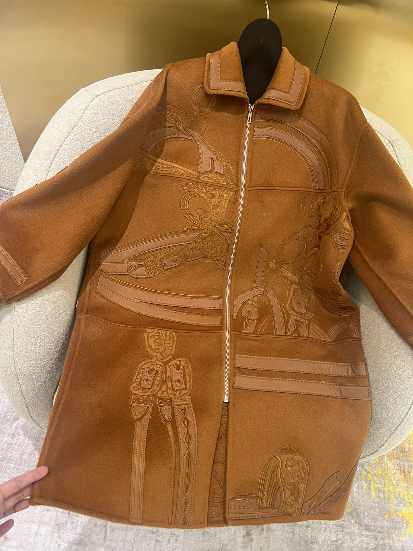 Highly recommended early autumn/winter 2024 series Her* new embroidered patch lamb leather double-faced cashmere lapel long coat jacket positioned flower design 100% double-faced cashmere YB1:1 customization high-end quality SML