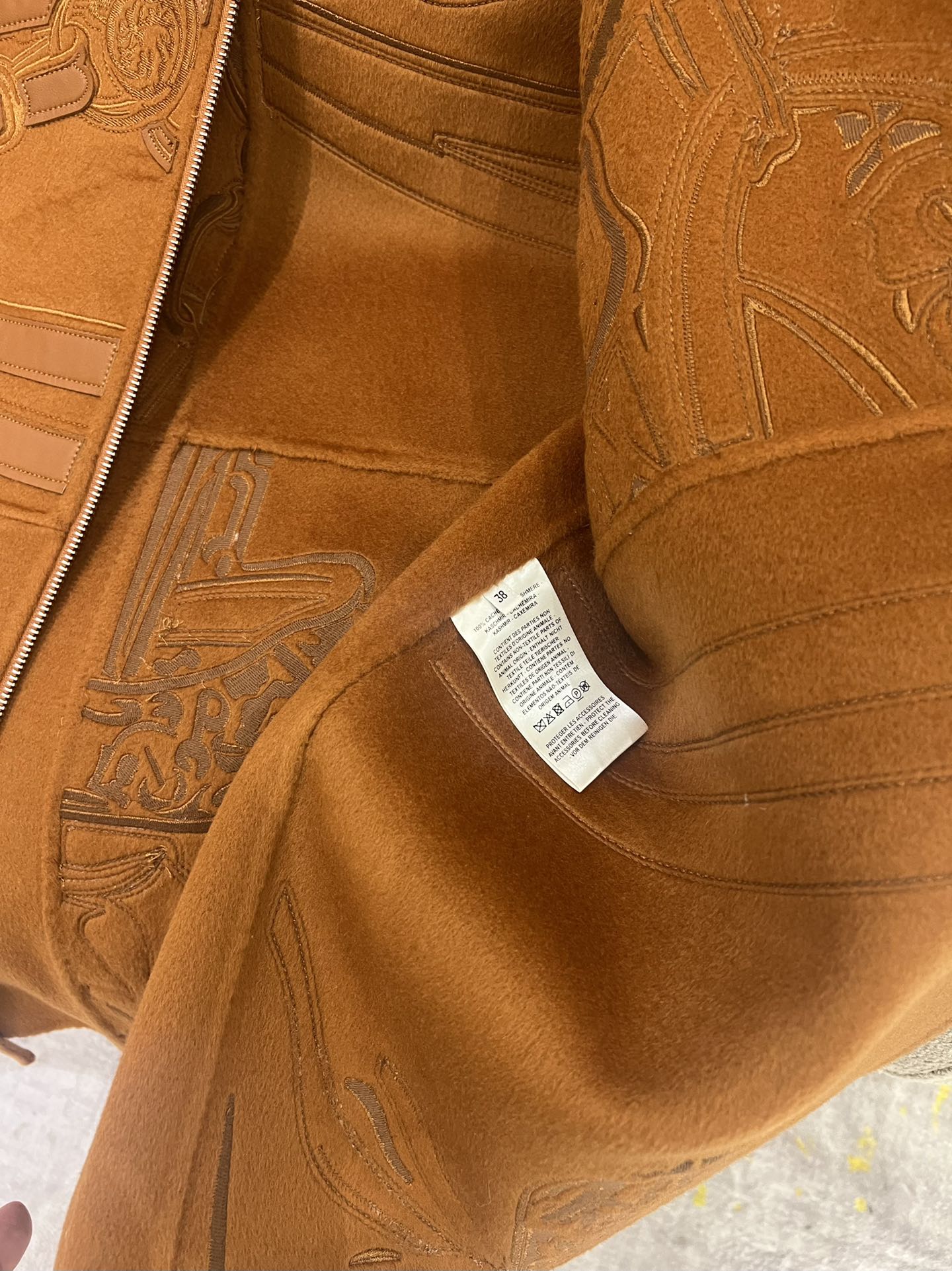Original title: Highly recommended early autumn/winter 2024 series Her* new embroidered patch lamb leather double-faced cashmere lapel long coat jacket positioned flower design 100% double-faced cashmere YB1:1 customization high-end quality SML