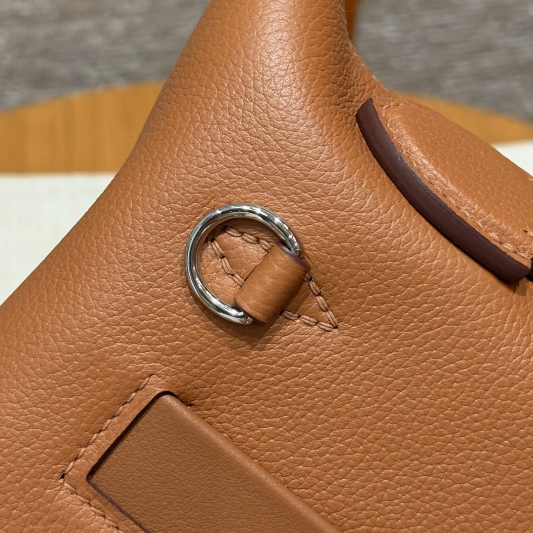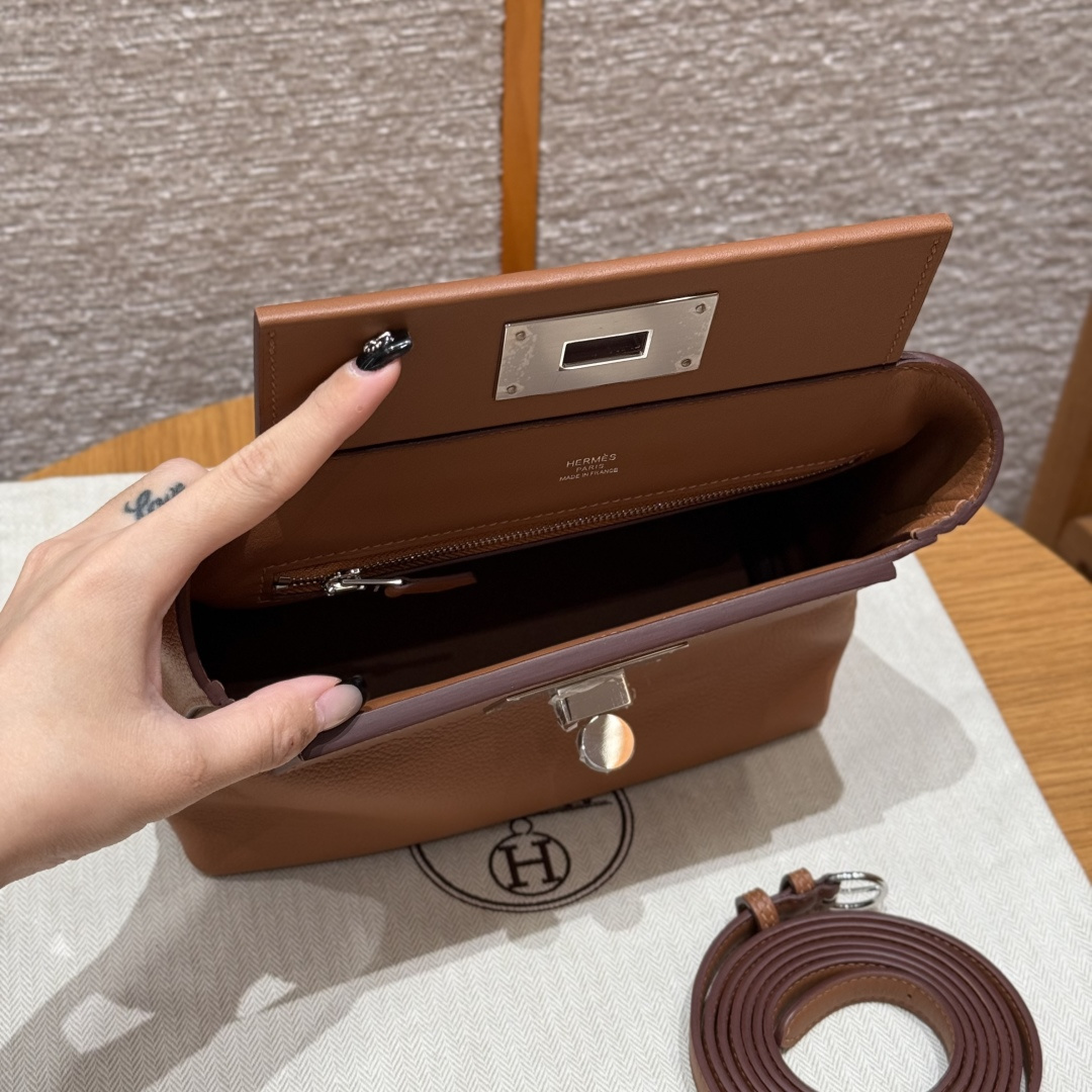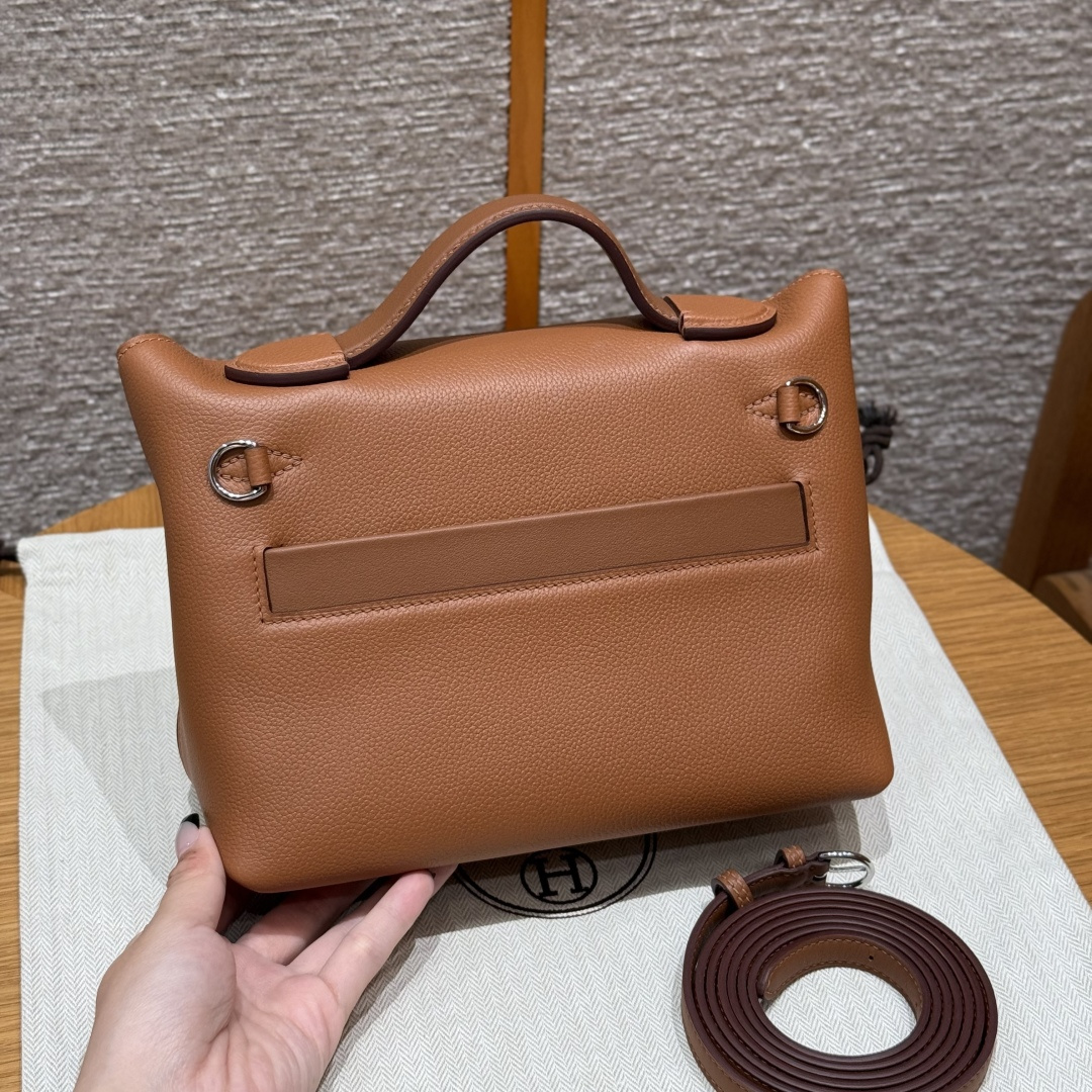 Kelly 24-24, 21cm, gold brown, Evercolor combined with plain grain, original French imported cowhide, silver clasp, high-end custom handmade craftsmanship.