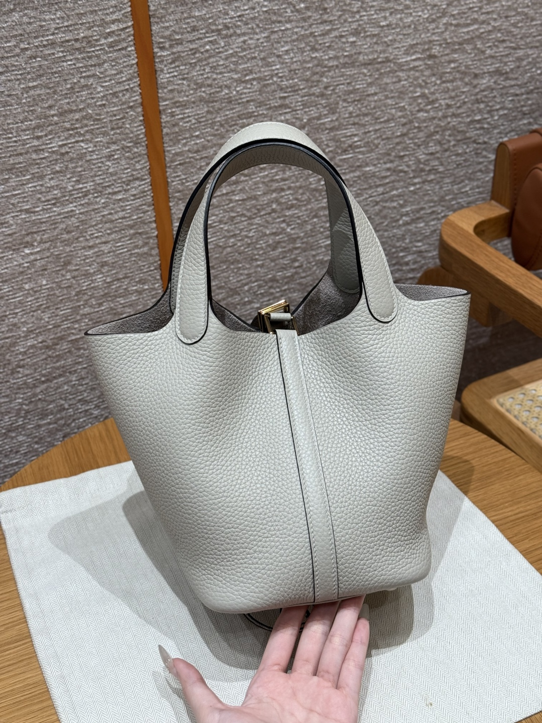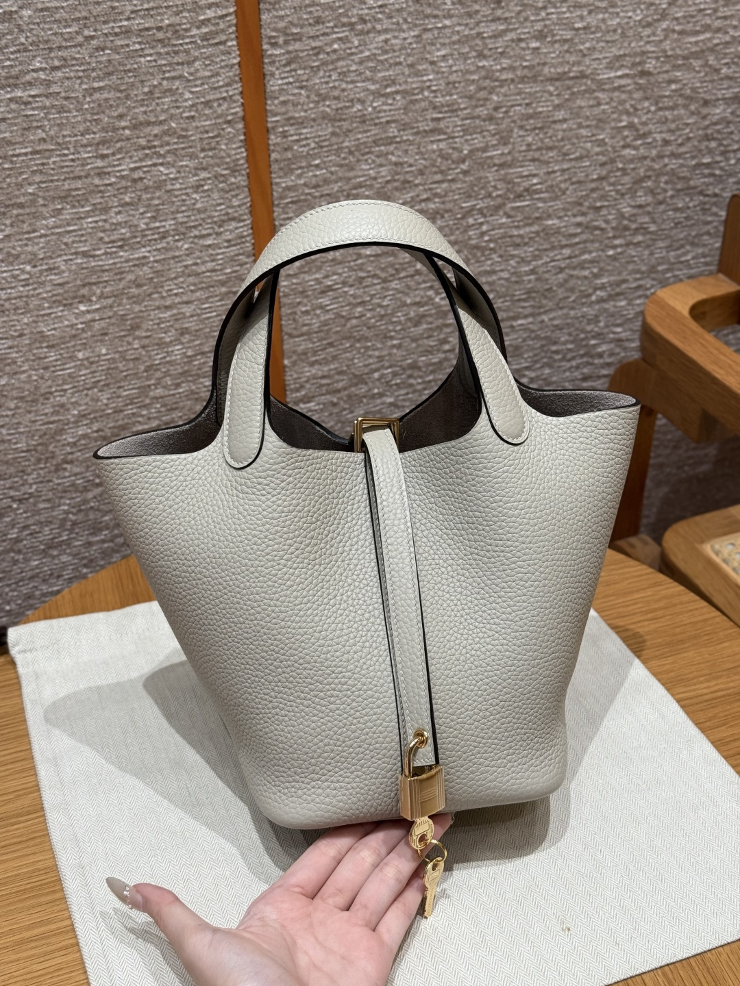 18cm basket, glacier white, tc leather, original French imported cowhide, gold clasp, high-end fully handcrafted exclusive customization.