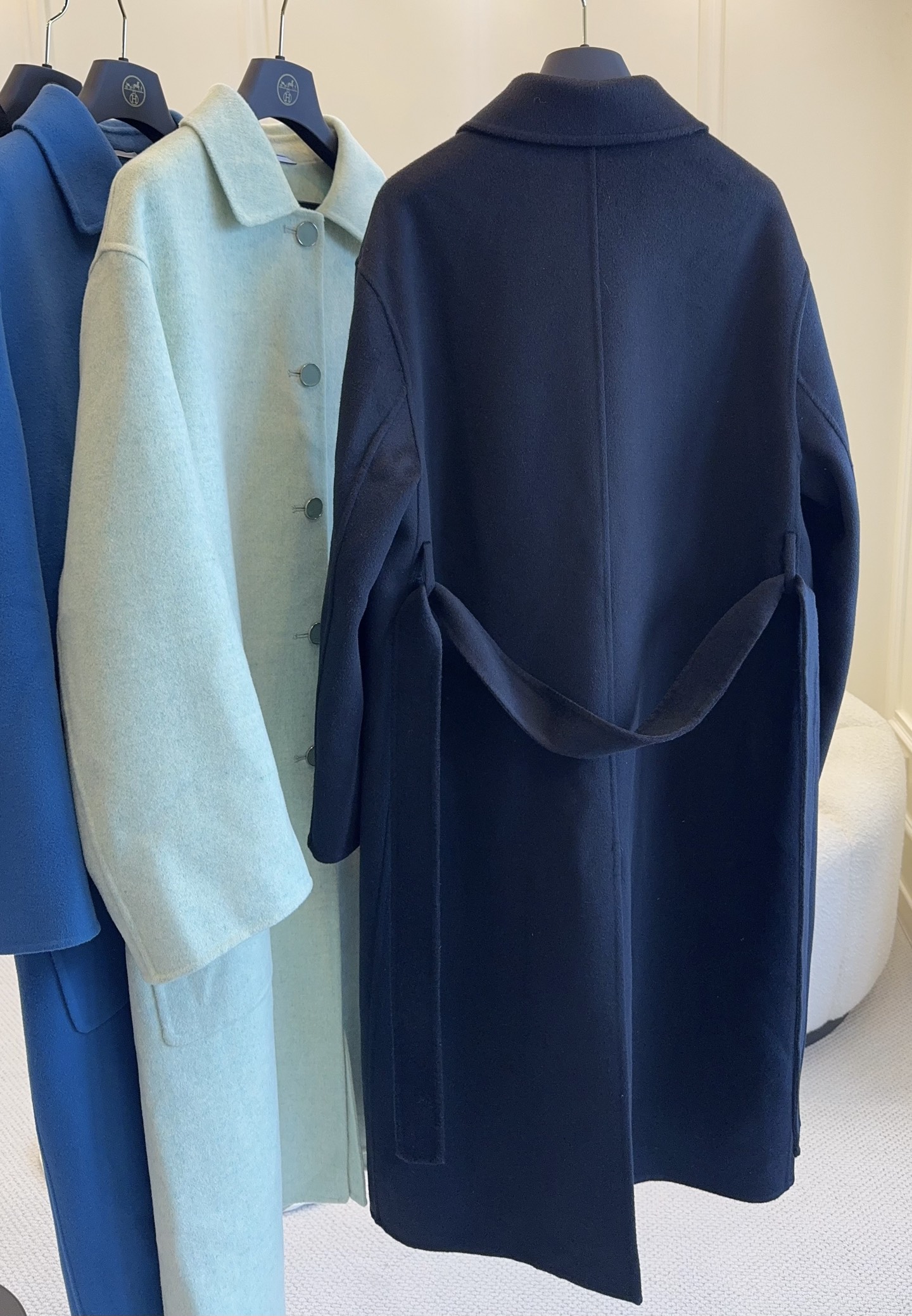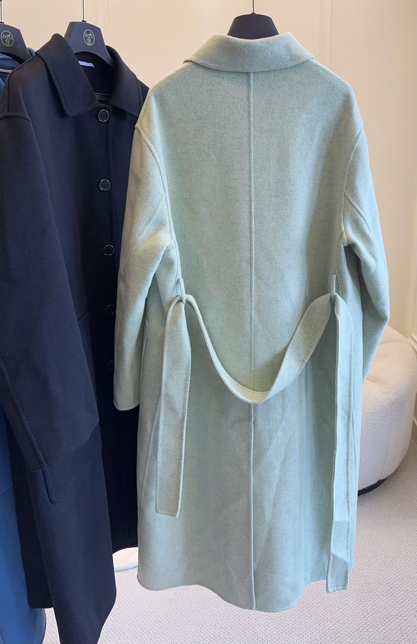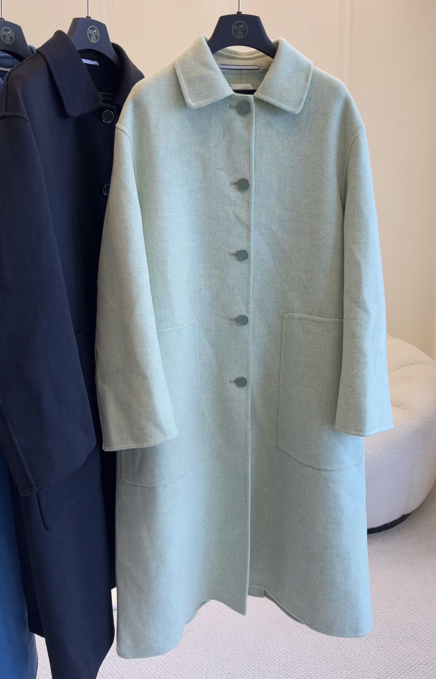 Hermes 2025 new double-faced wool coat, classic style, cashmere and wool blend, clean and sharp H-line silhouette, elegant and intellectual with a gentle temperament, custom-made buttons, exquisite texture, fabric with a crisp and structured feel, sophisticated and premium design.