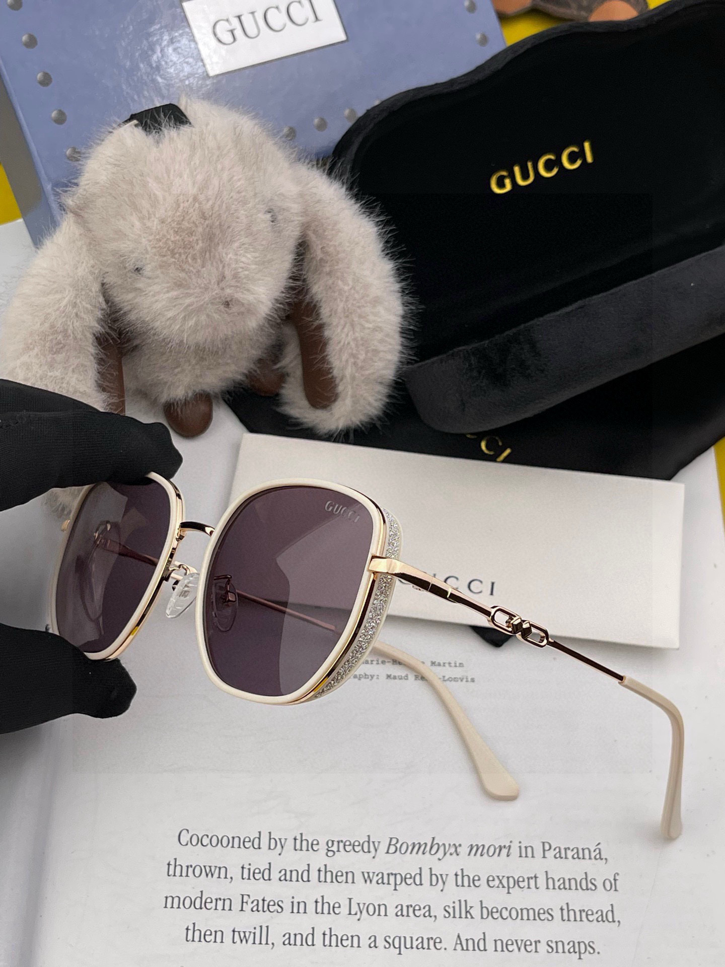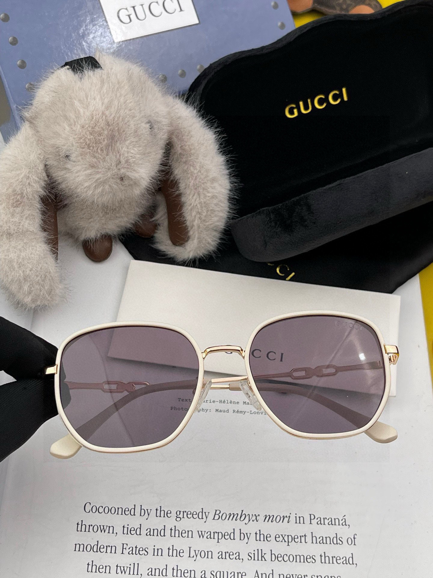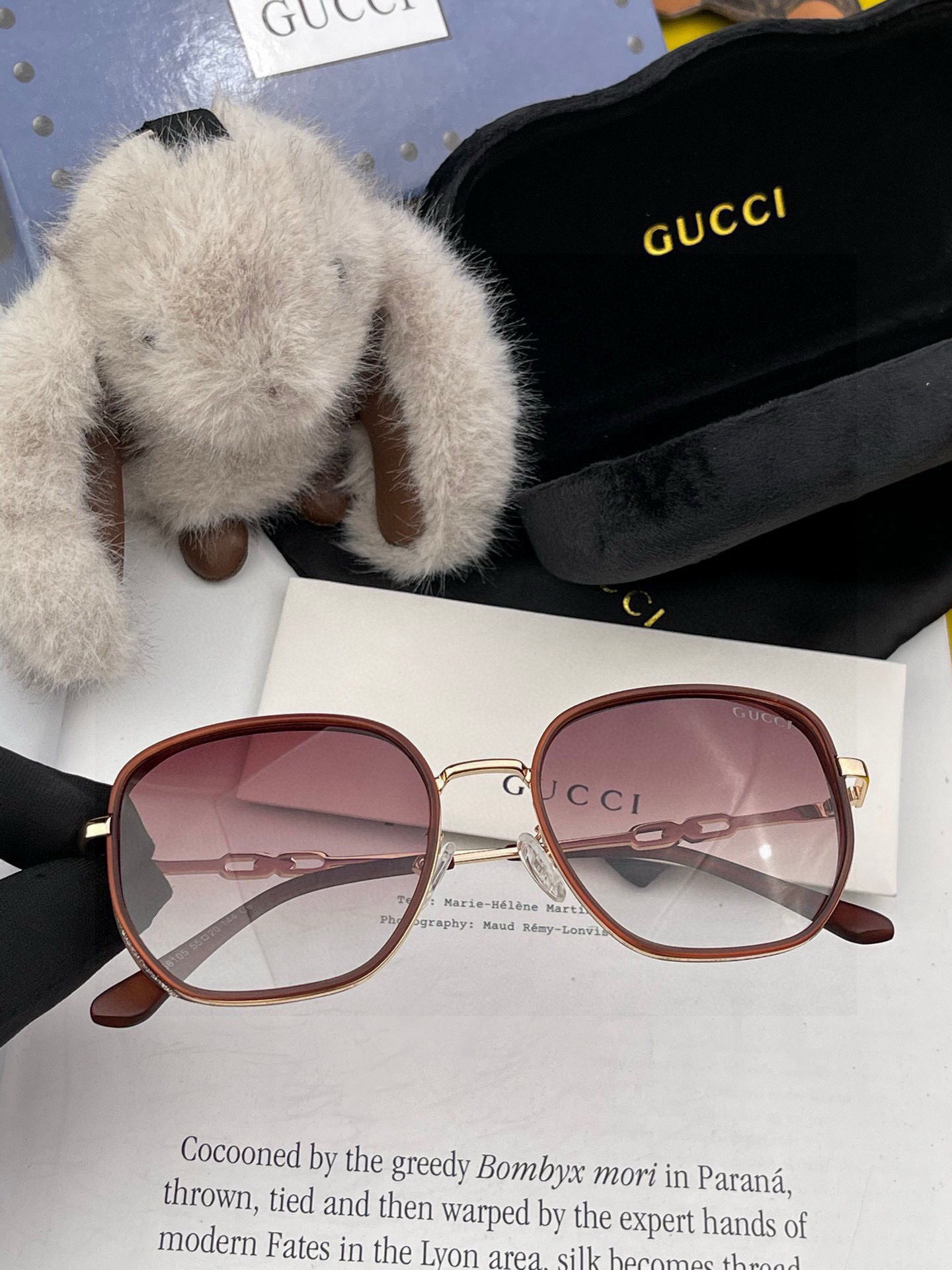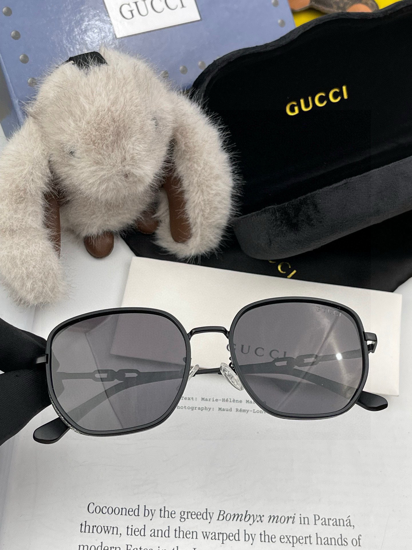 Gucci classic square frame design, suitable for all face shapes, whether paired with a coat or a dress, it exudes great temperament. Nylon polarized lenses prevent ultraviolet rays. Model: G55810