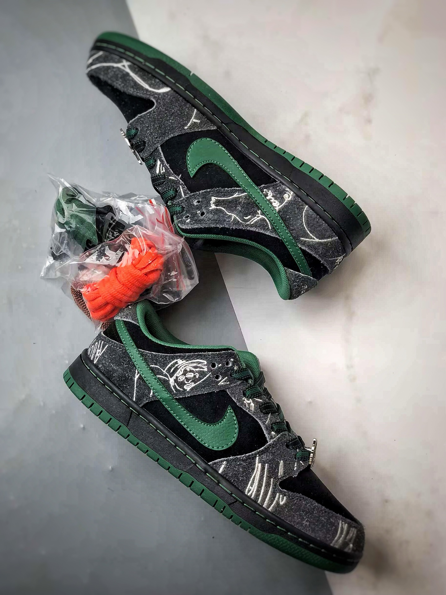 Black Green Graffiti Low-Top Casual Sports Skateboarding Shoes