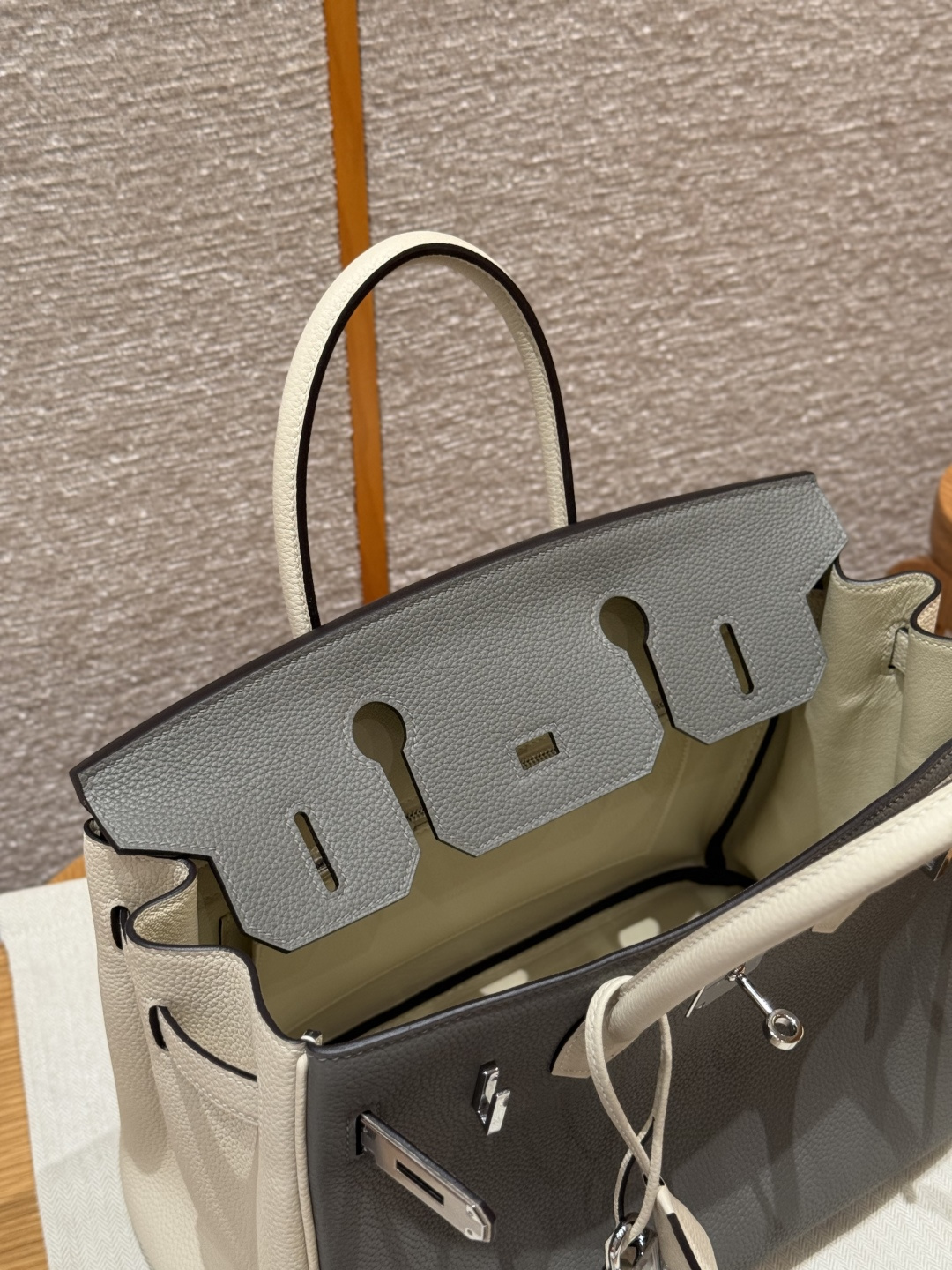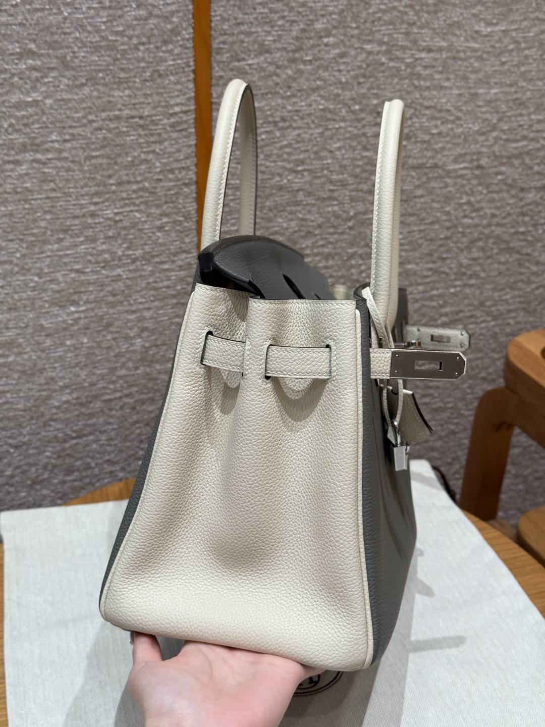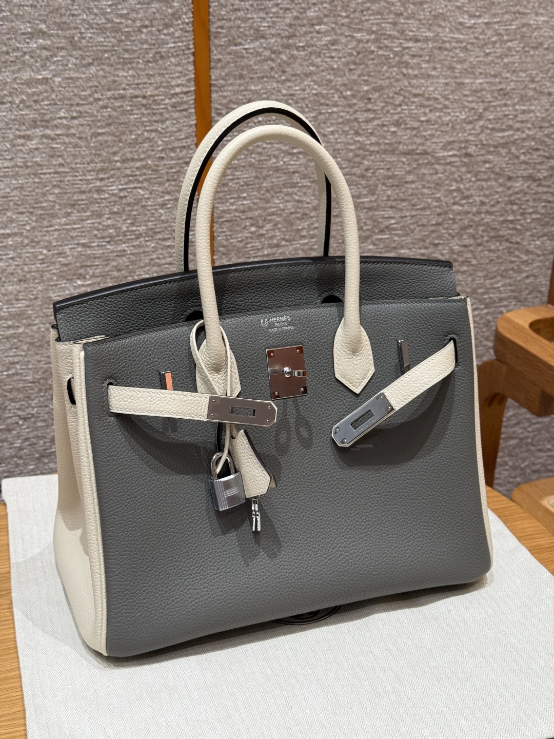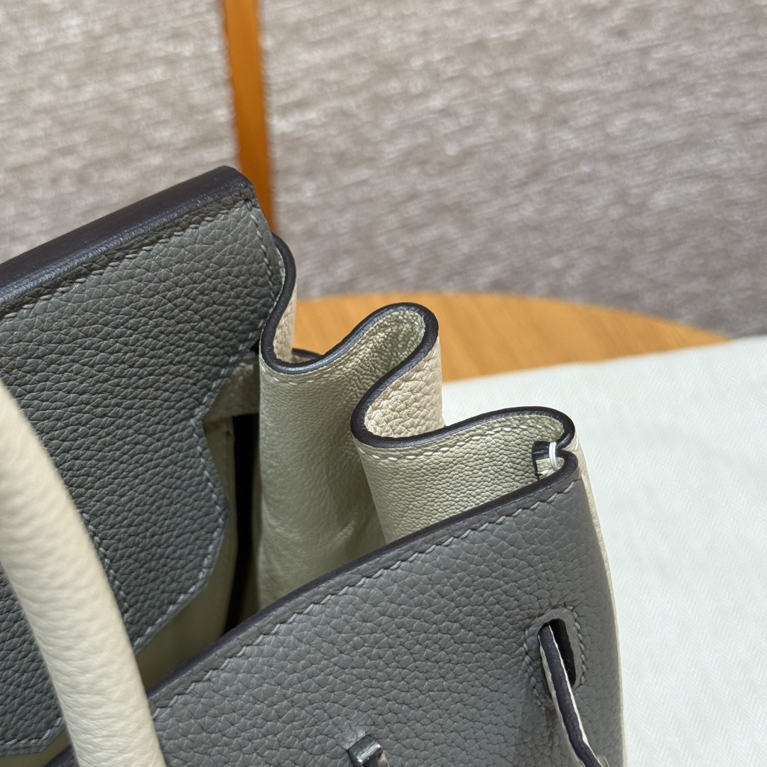 Birkin 30cm, Cumulus Gray/Milkshake White, Togo leather, imported original French cowhide, silver clasp, high-end fully handcrafted exclusive customization.