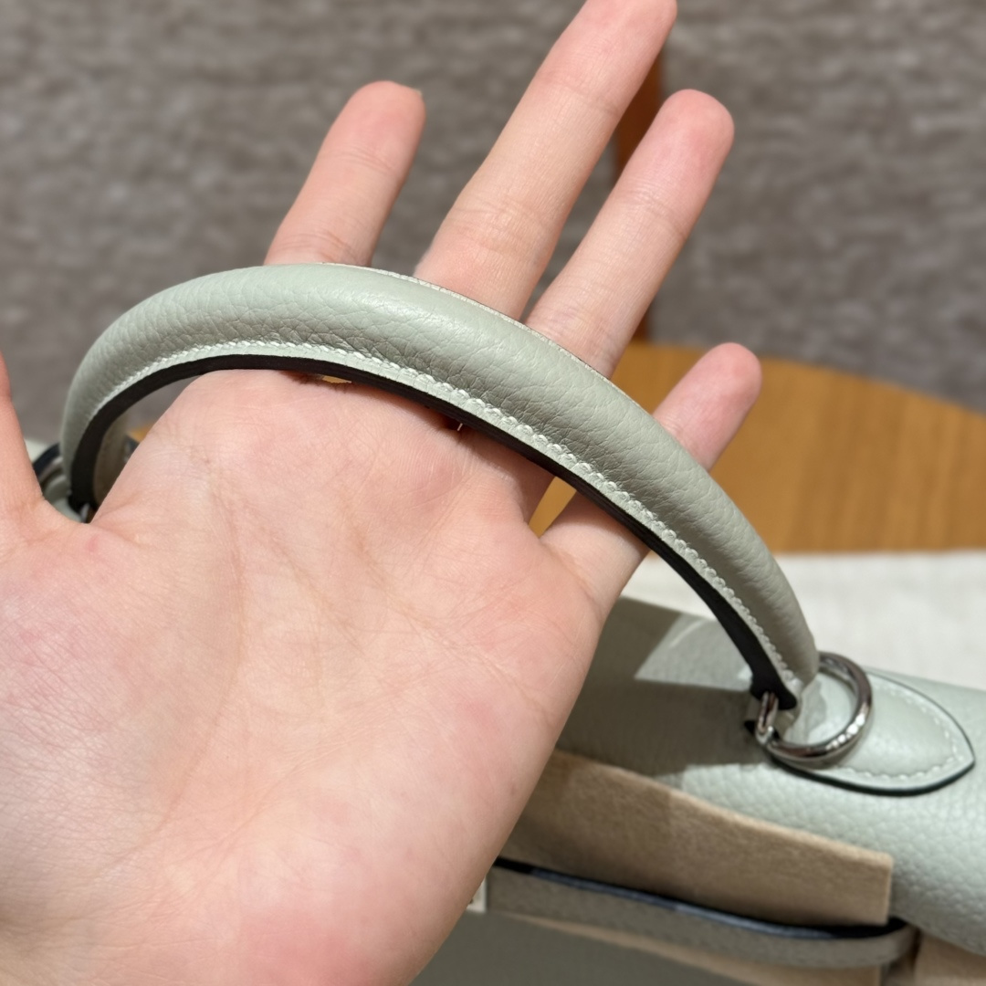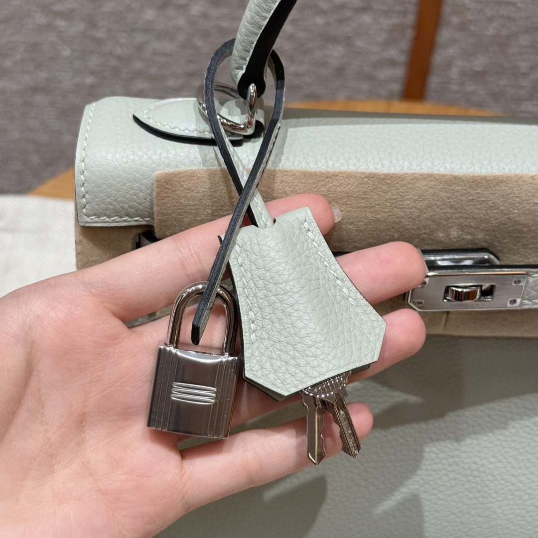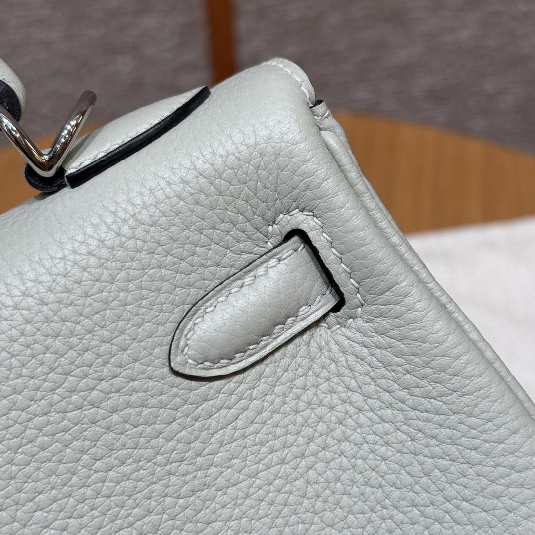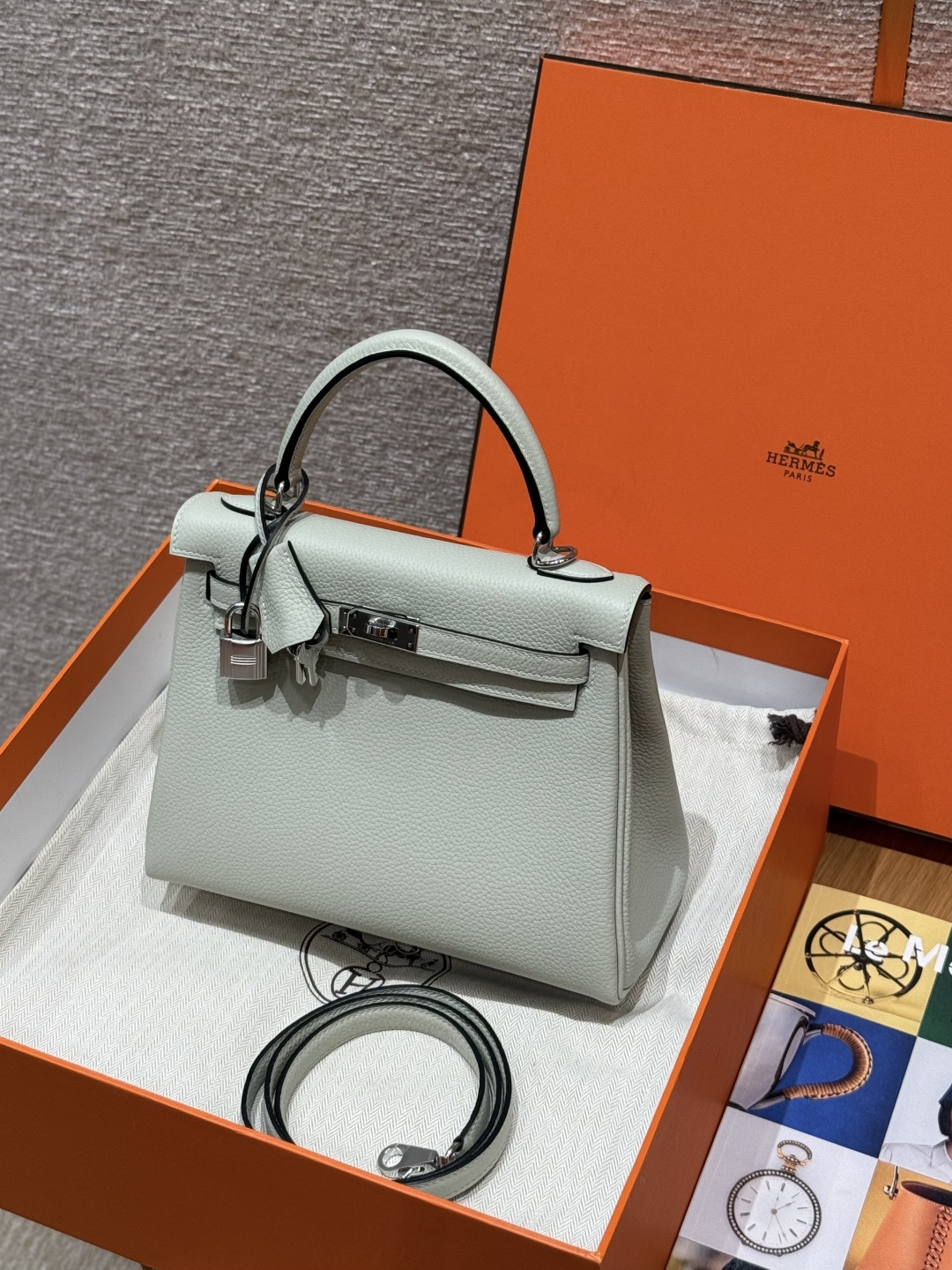 Kelly 25, ice crystal gray, imported French Togo cowhide, silver buckle, high-end fully handcrafted exclusive custom.