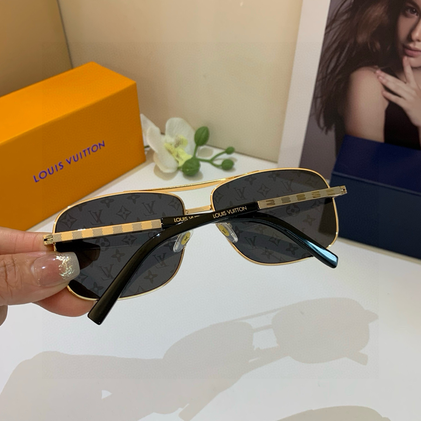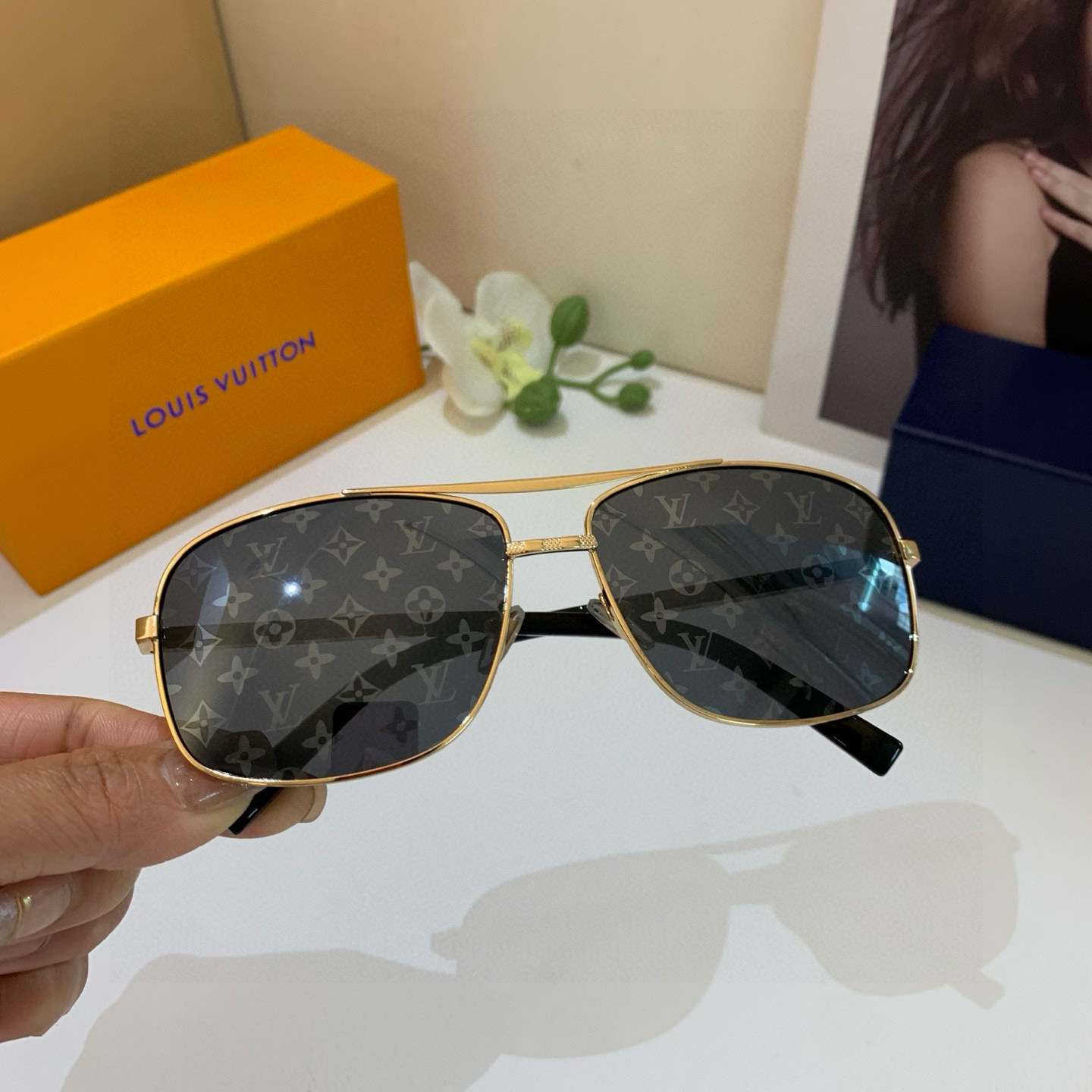 Louis Vuitton trendy men's sunglasses, popular same-style sunglasses, essential sunshade for travel.