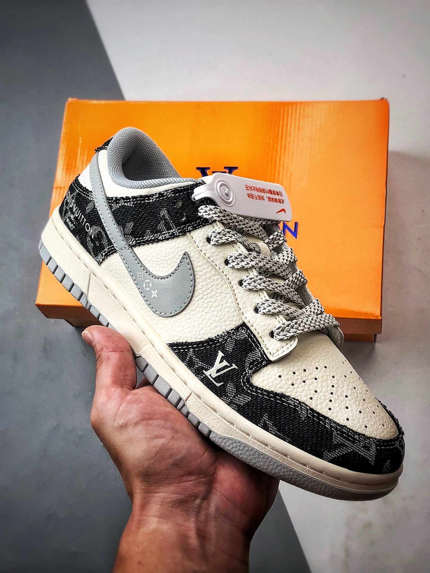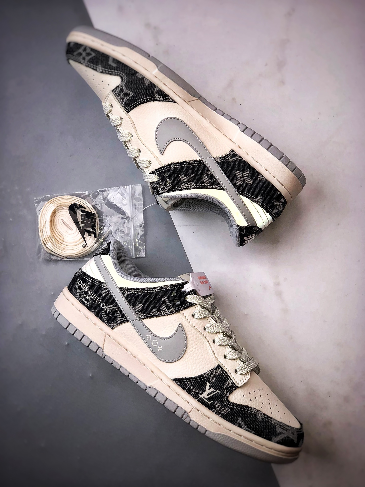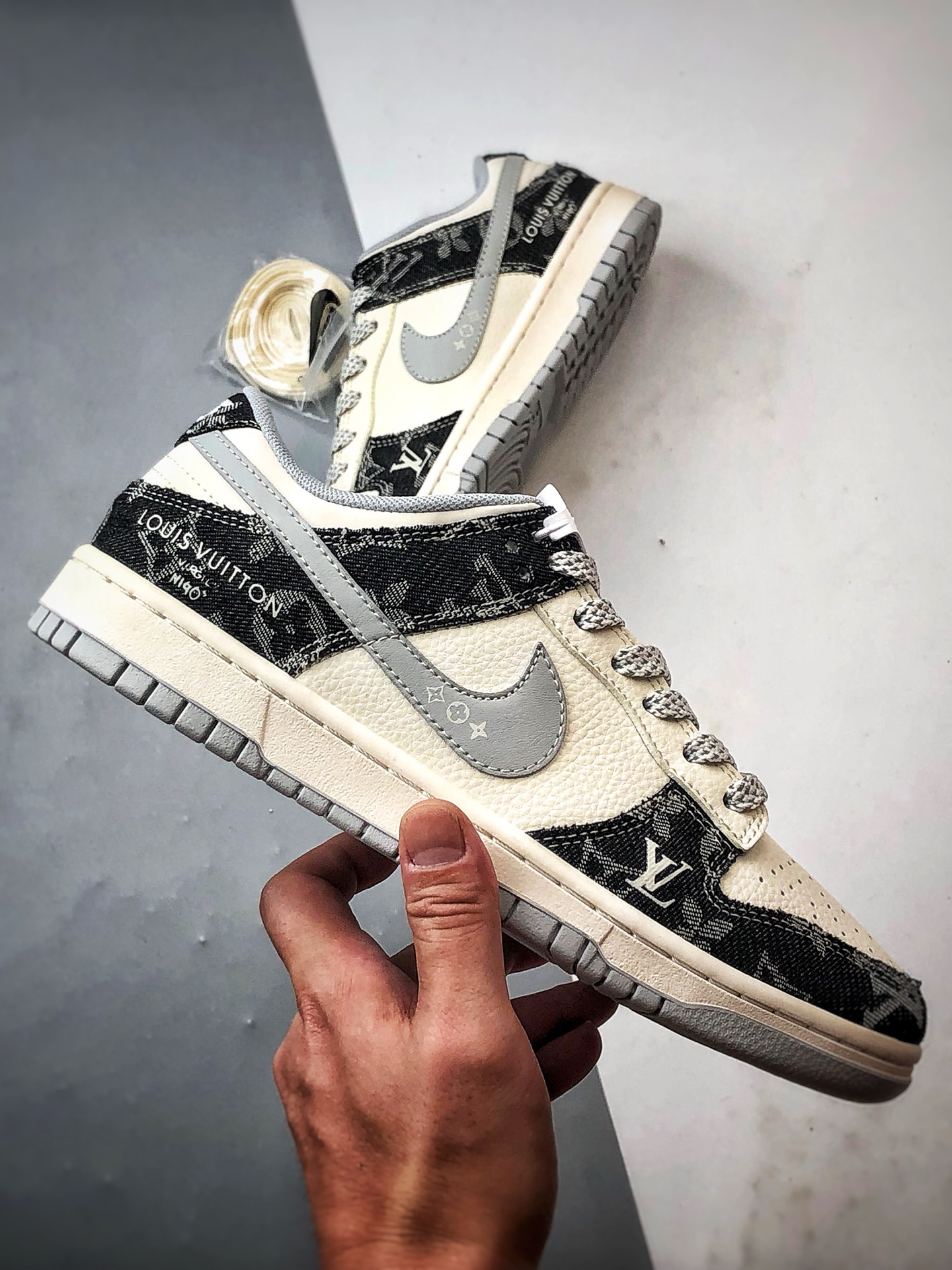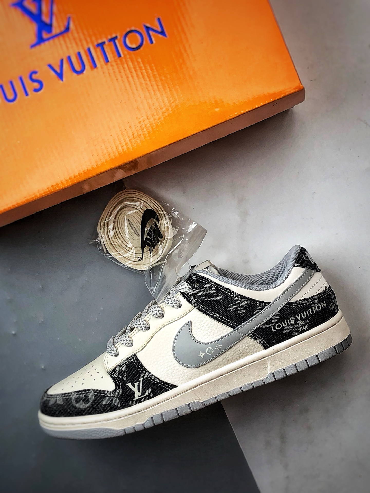 LV Beige Black Denim Gray Hook Low-Top Casual Sports Sneakers