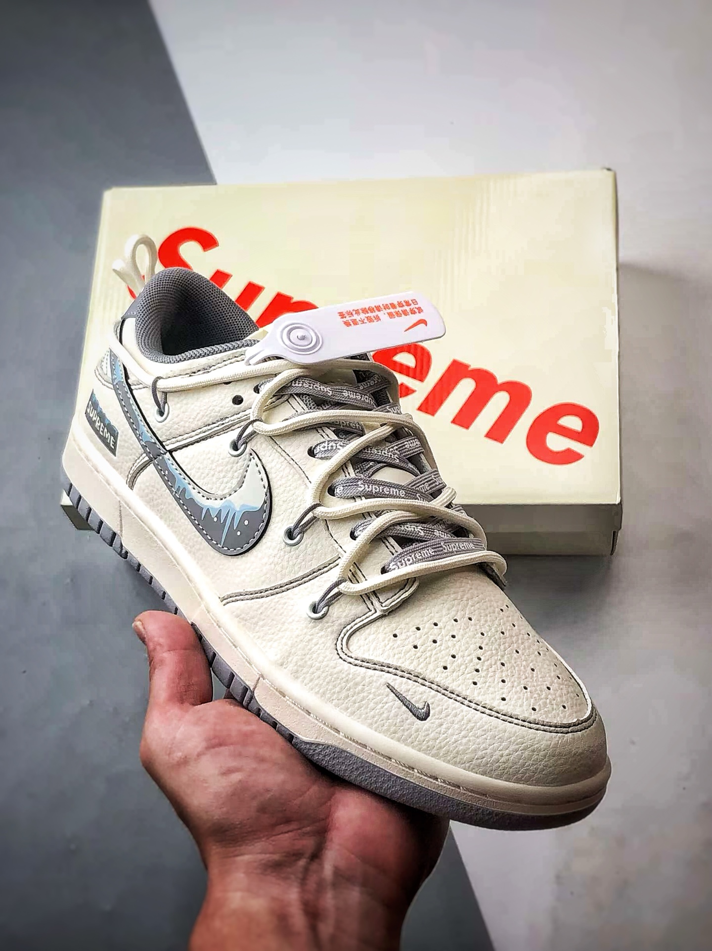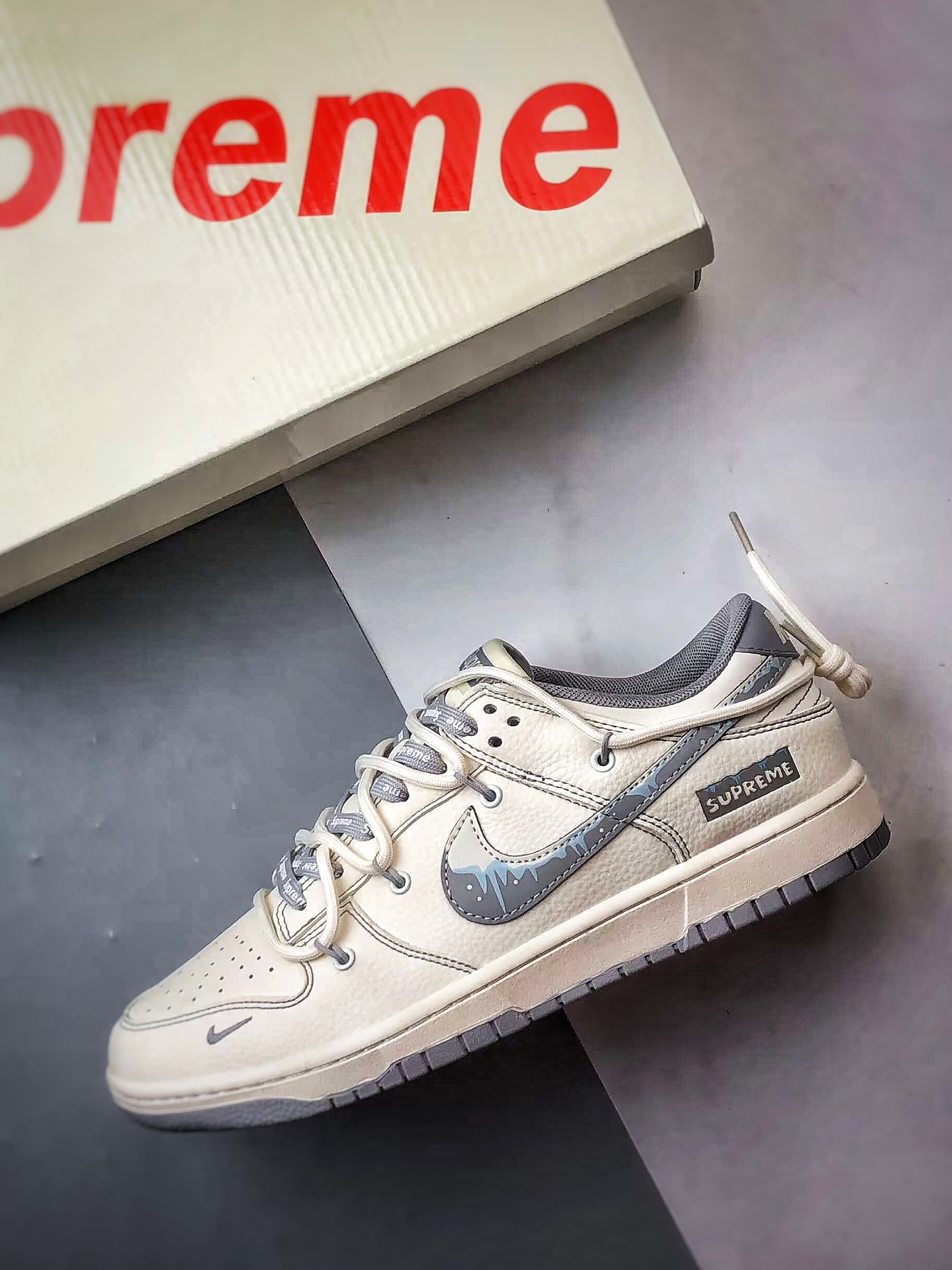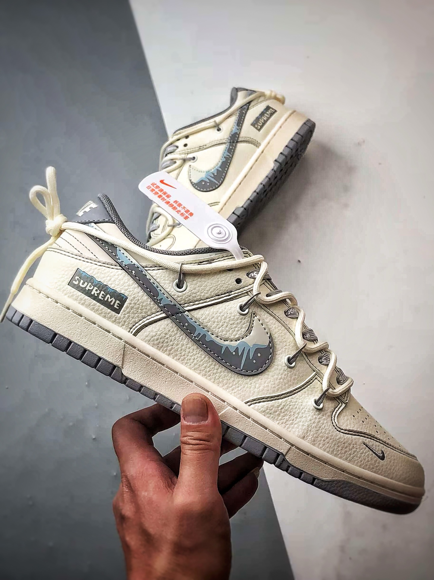 Supreme Off-White Gray Graffiti Hook Deconstruction Low-Top Casual Sports Sneakers