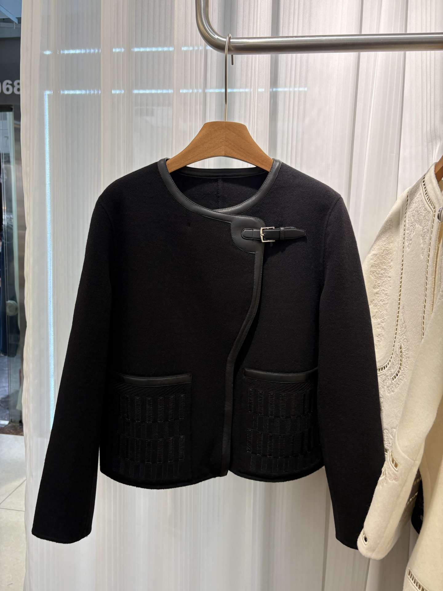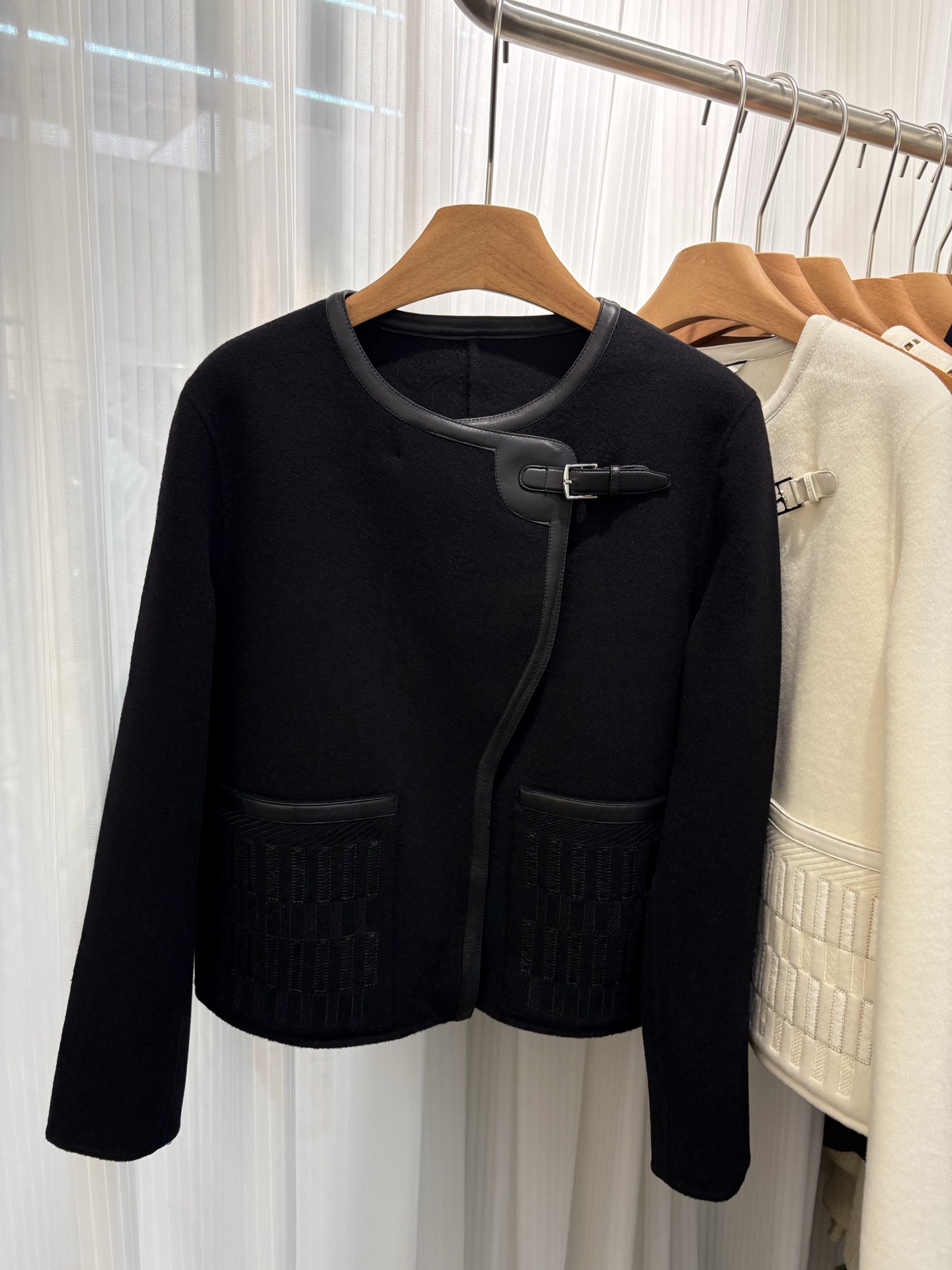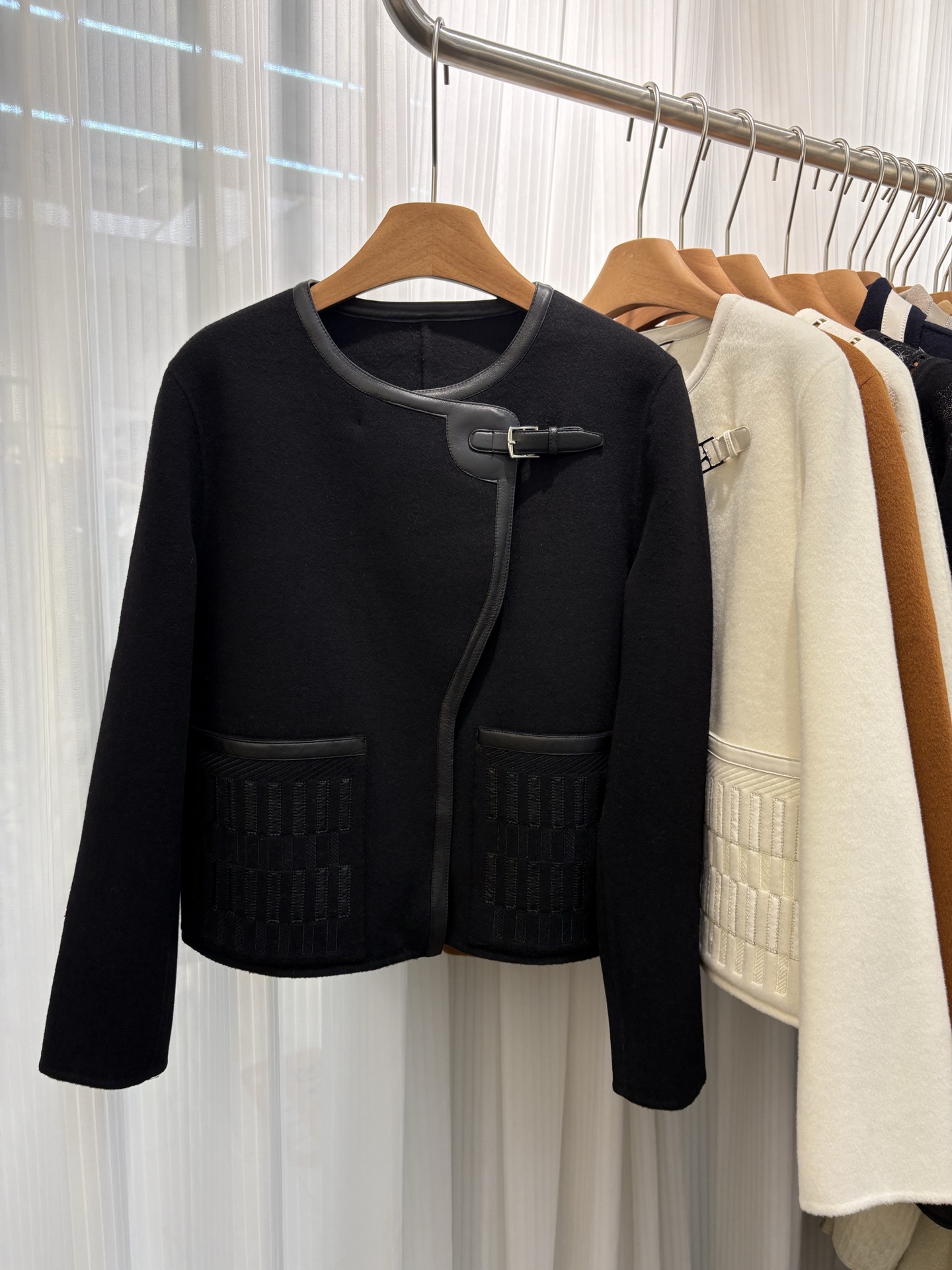 New 2025H Double-faced cashmere short coat Black Size 36 38 40