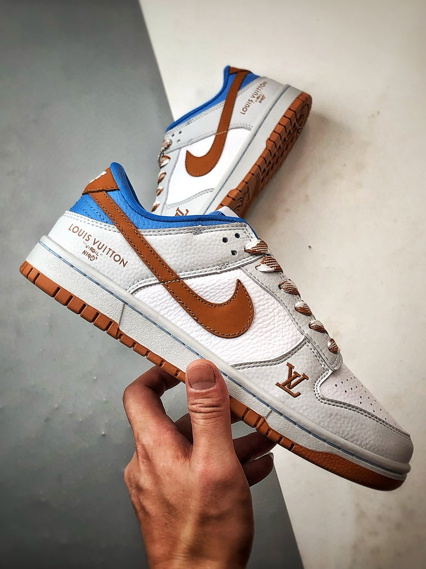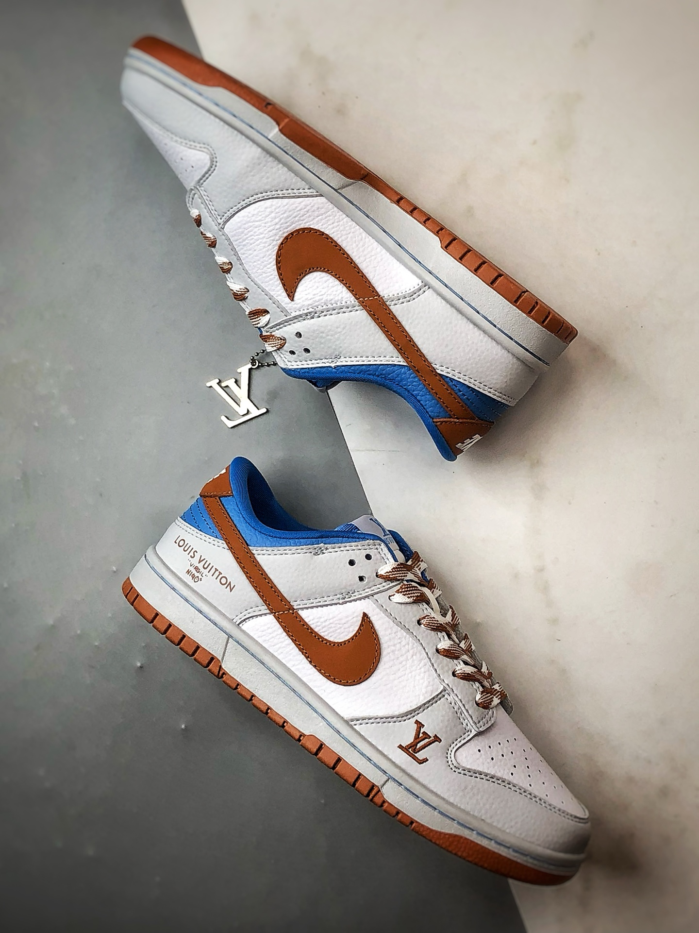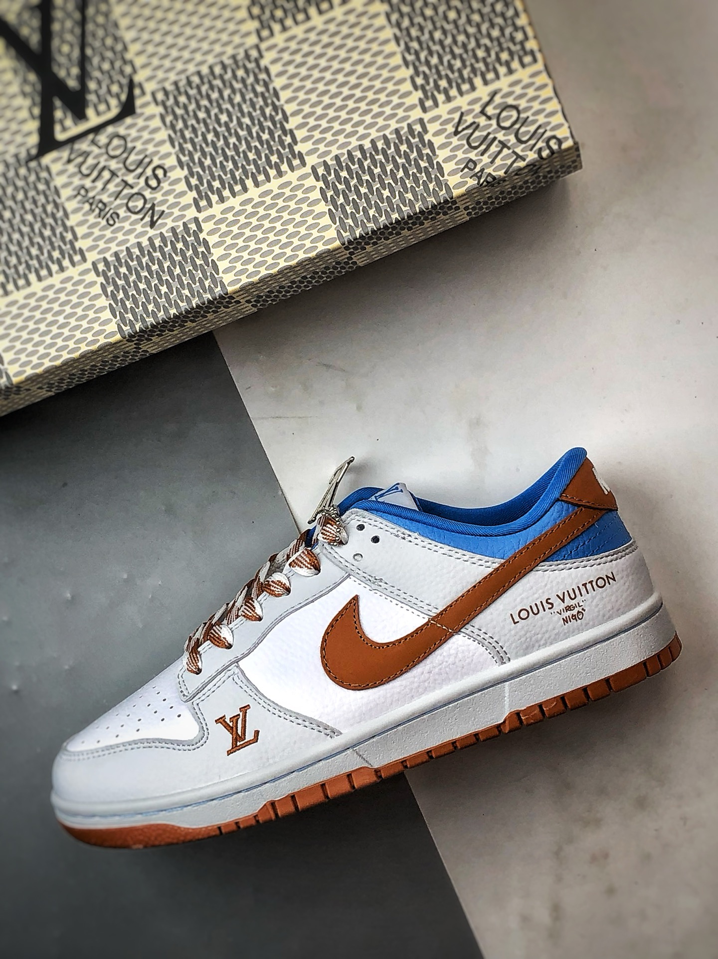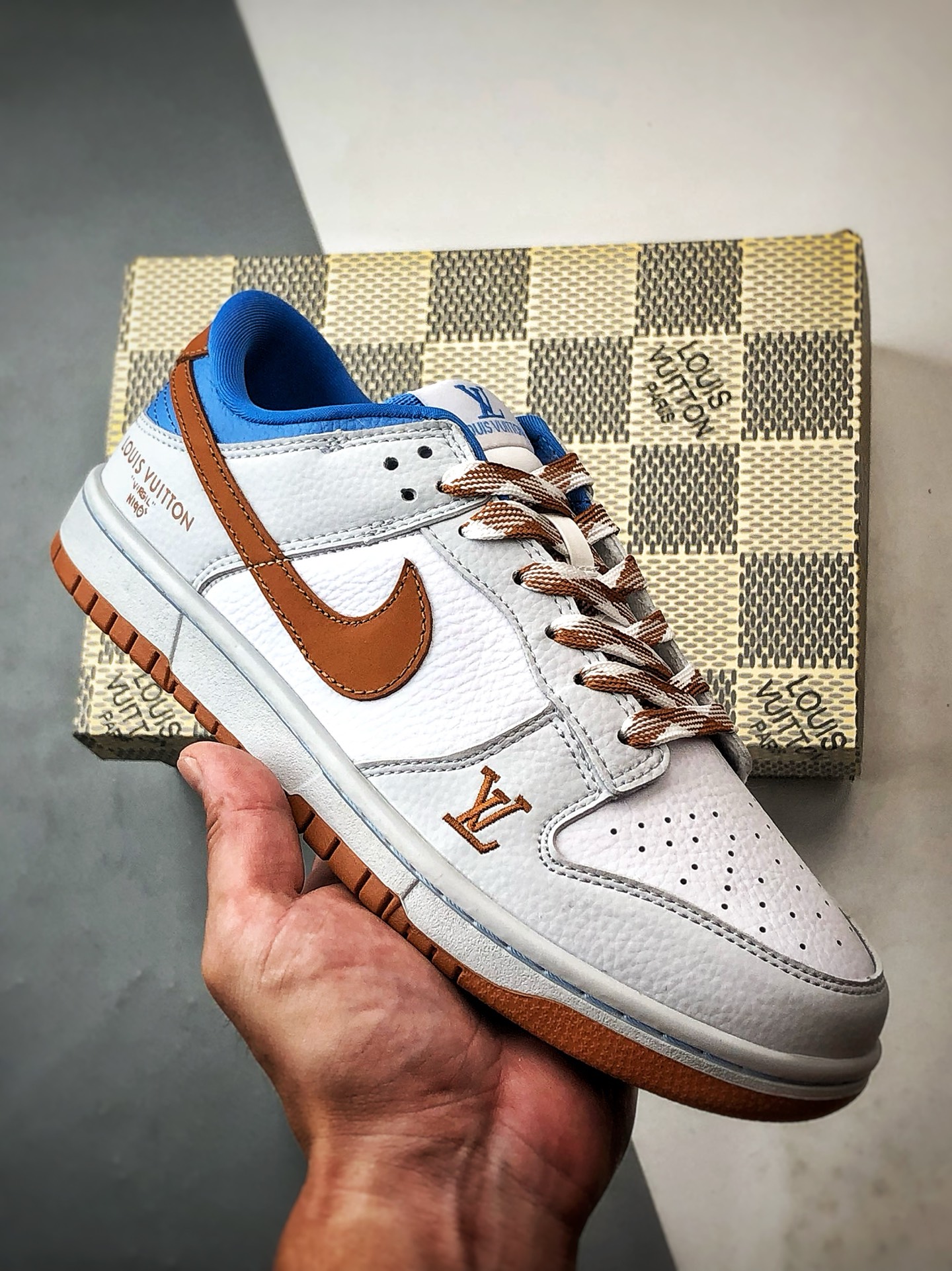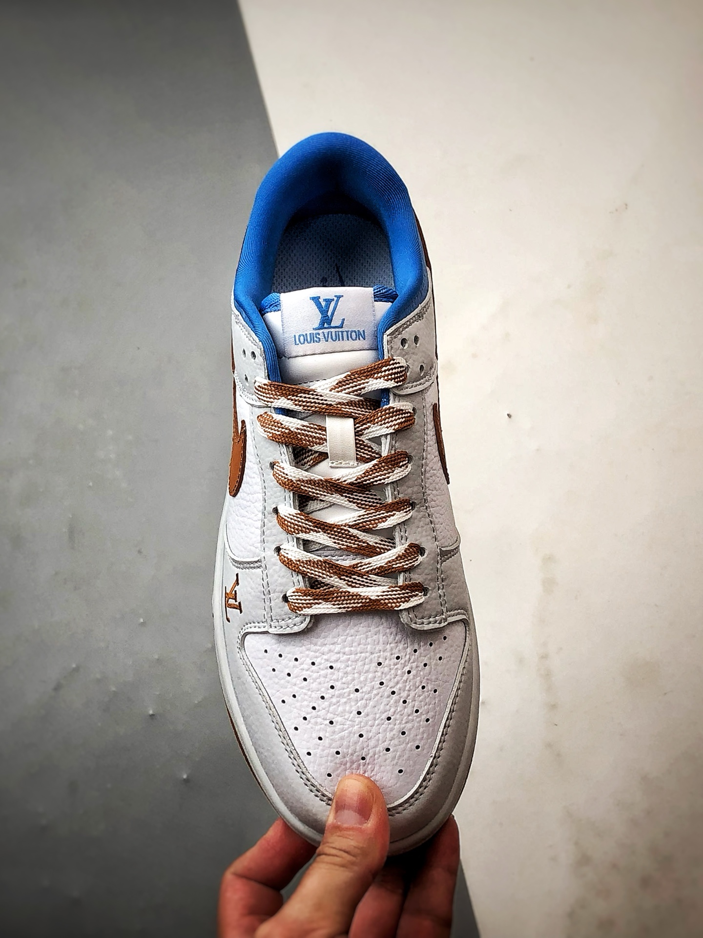 LV White Blue Brown Low-Top Casual Sports Sneakers