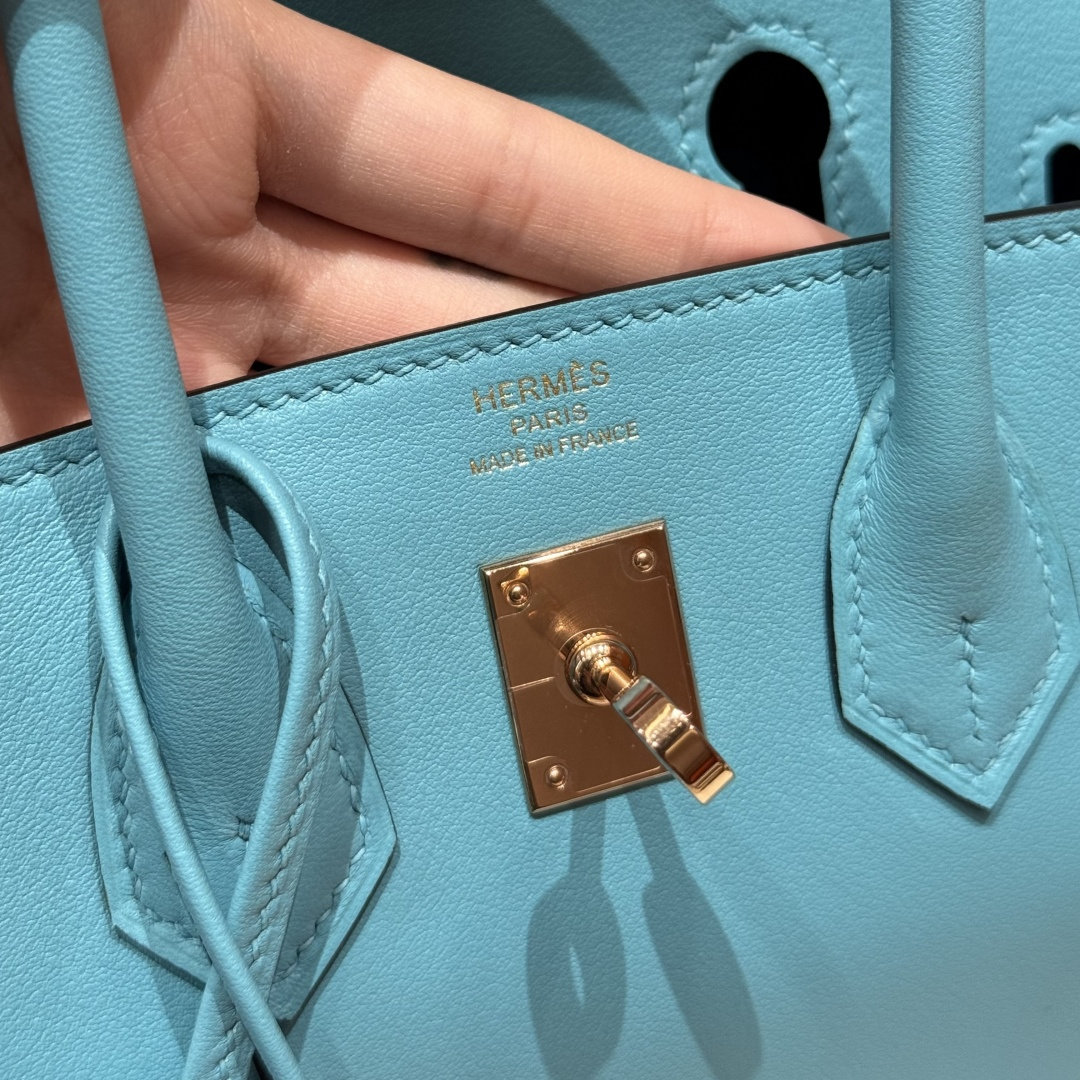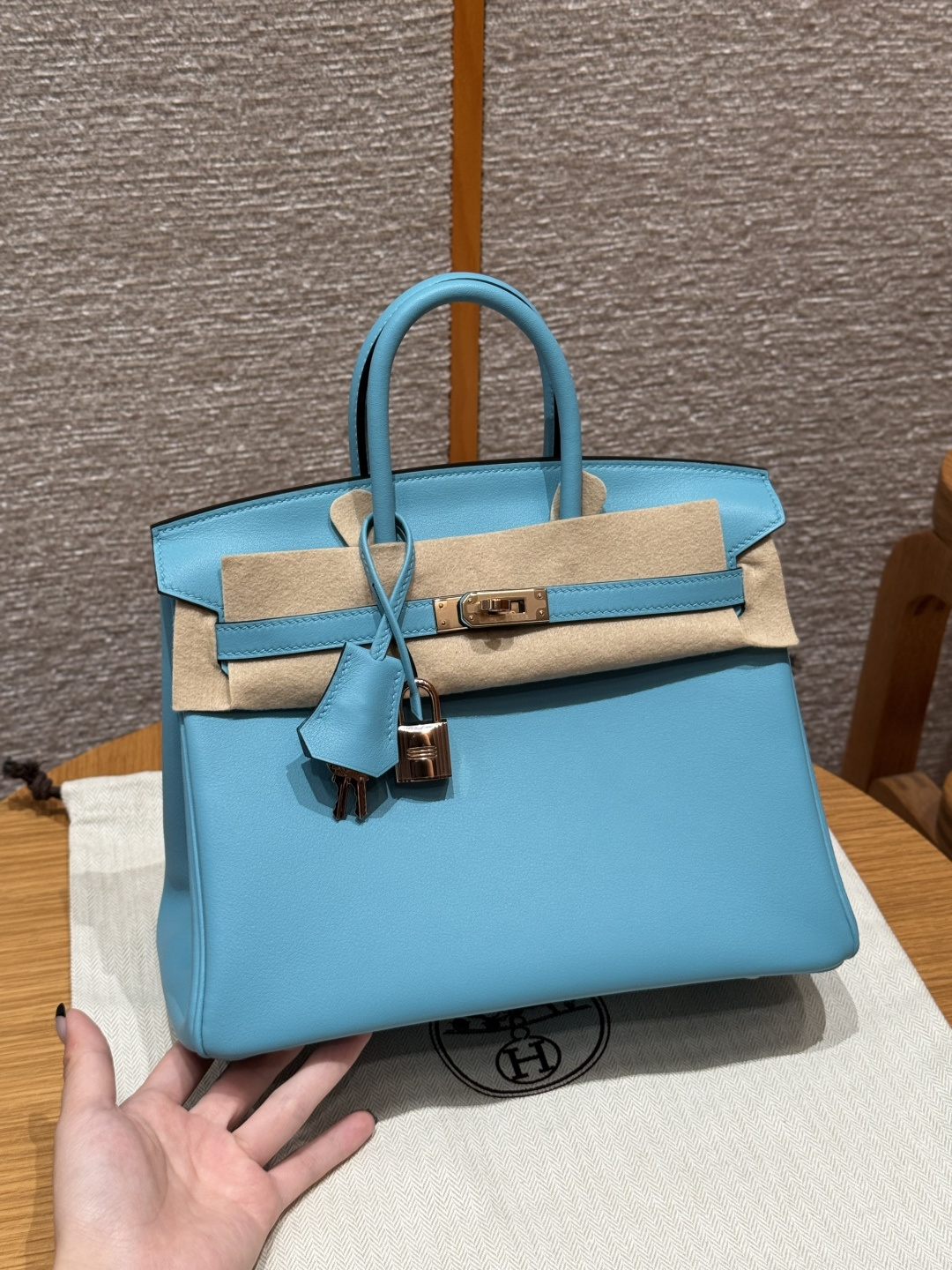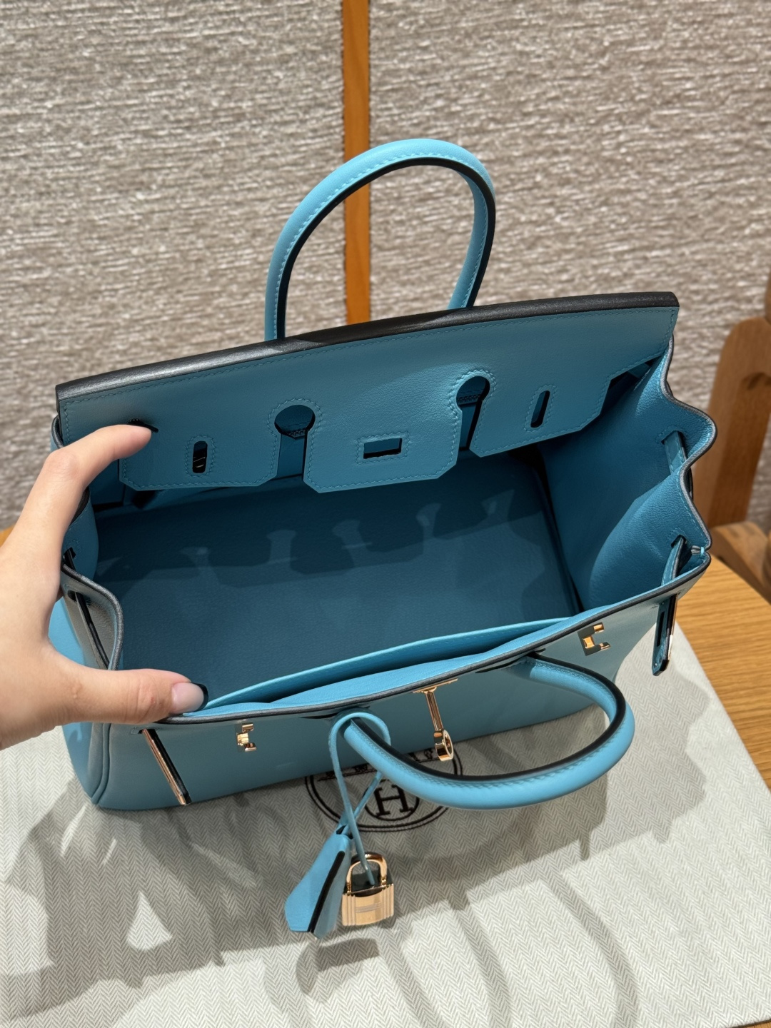 Birkin 25cm, Bleu De Nord, French imported calfskin flat grain inner stitching, rose gold buckle, high-end fully handcrafted exclusive custom.