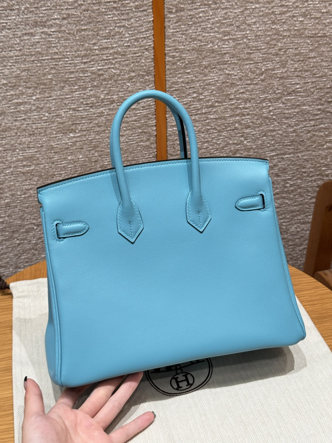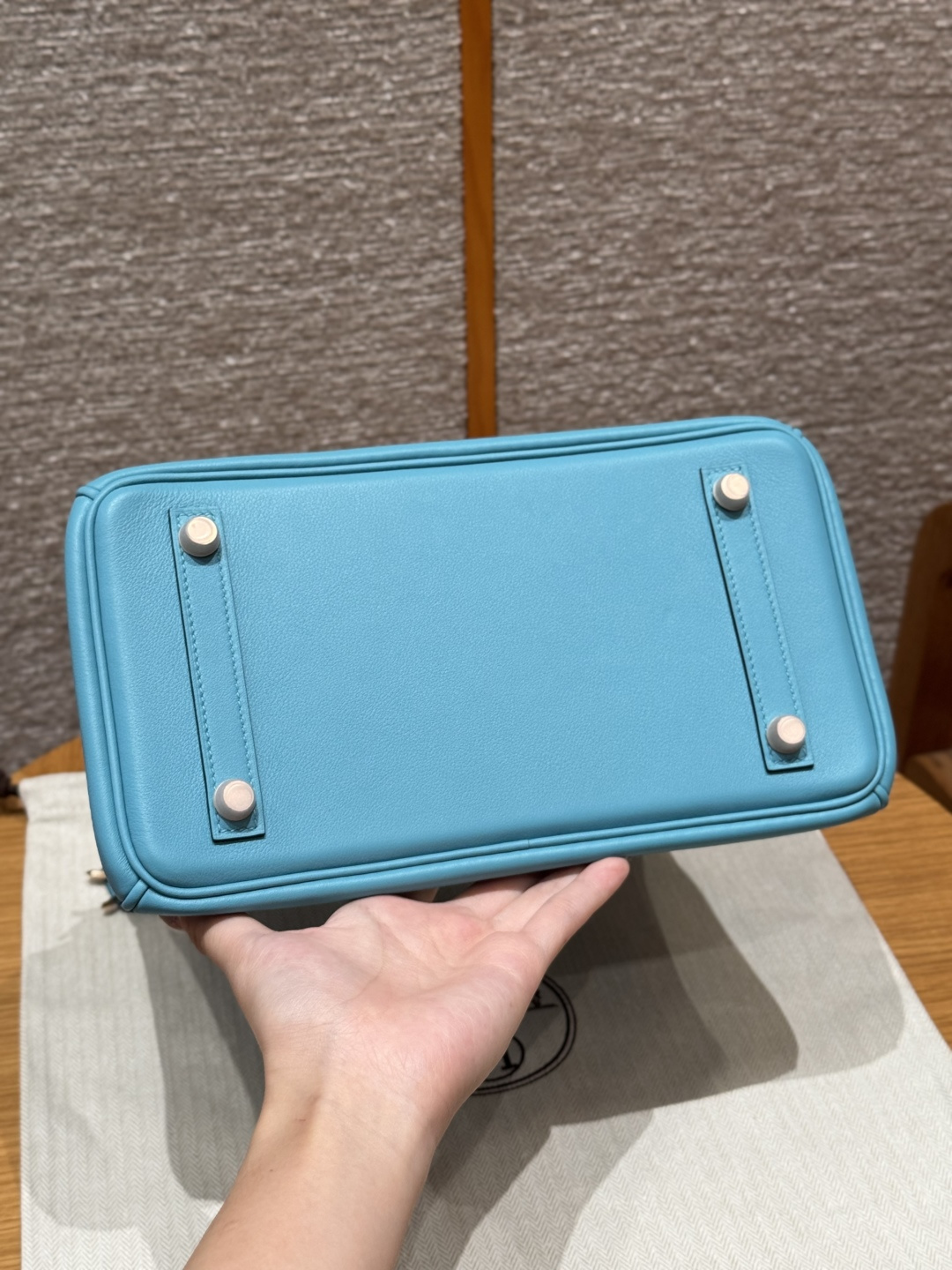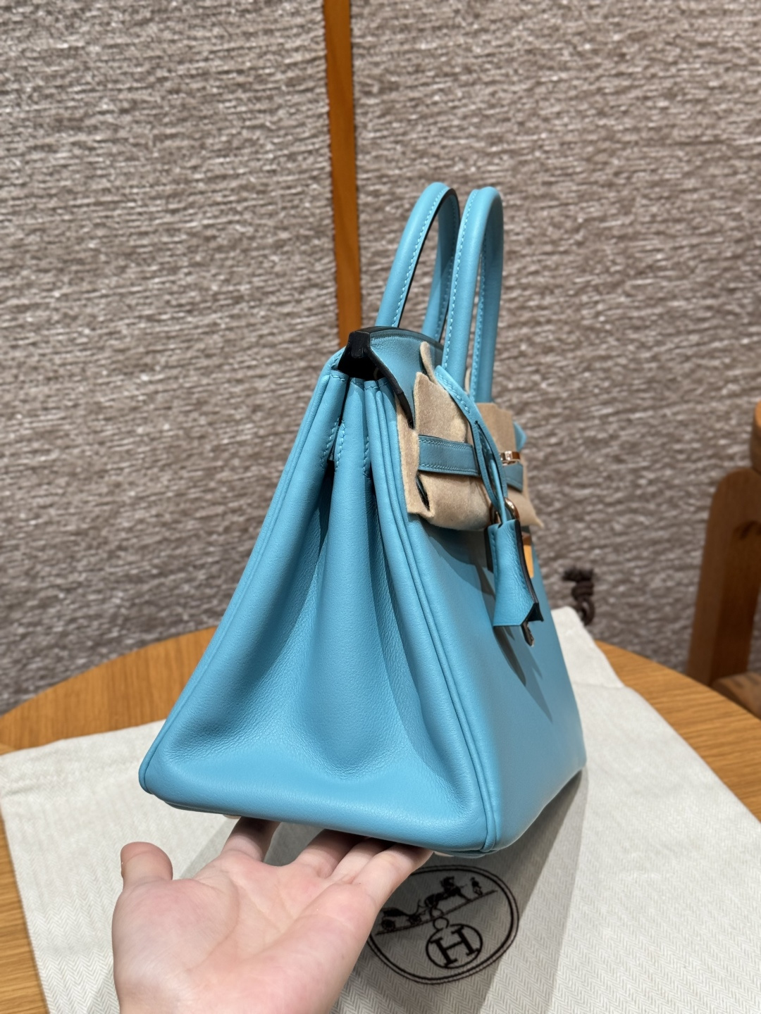 Birkin 25cm, Bleu De Nord, French imported calfskin flat grain inner stitching, rose gold buckle, high-end fully handcrafted exclusive custom.