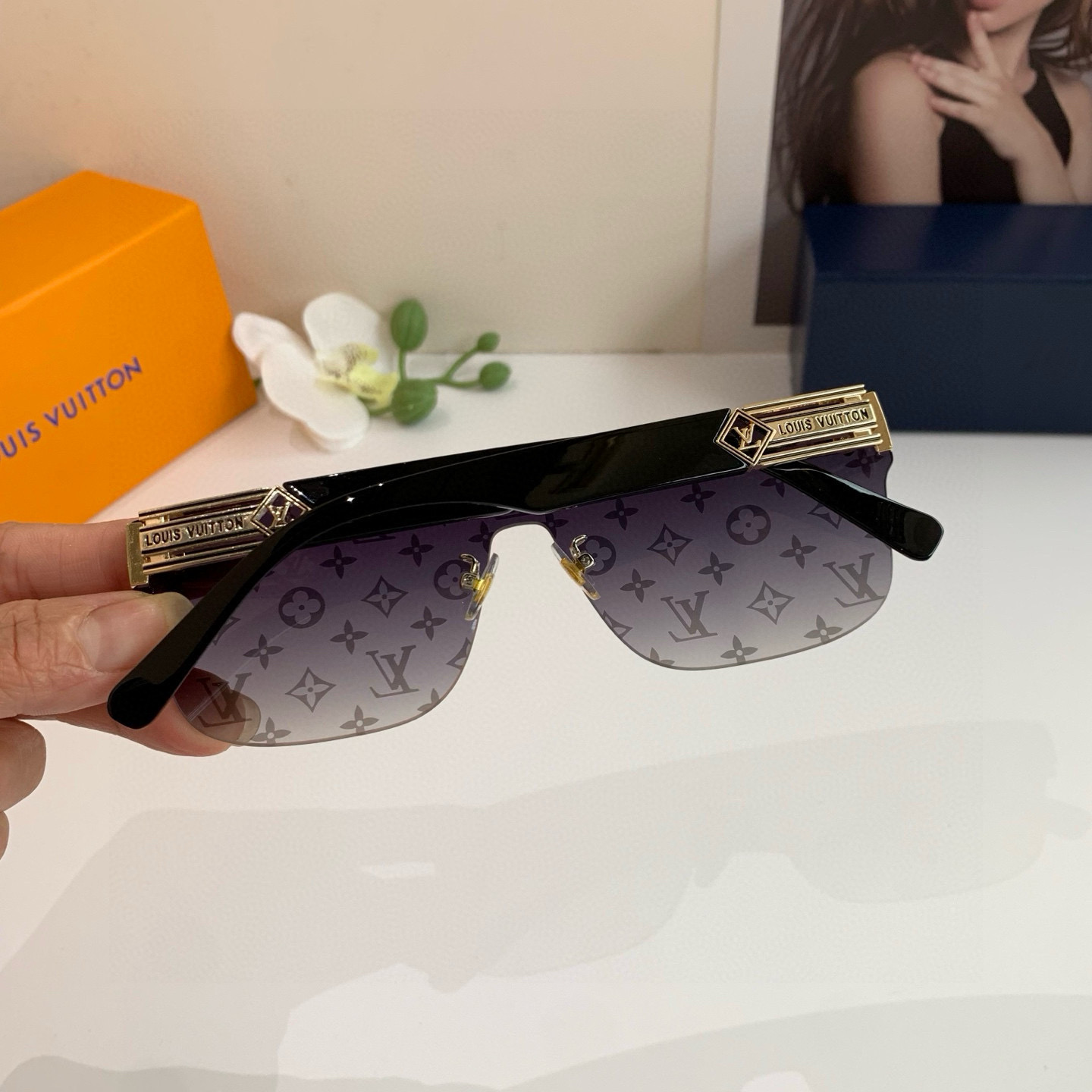 LV Louis Vuitton Korean-style sunglasses, internet-famous same style polarized sunglasses, large-frame fashionable and versatile trendy glasses!