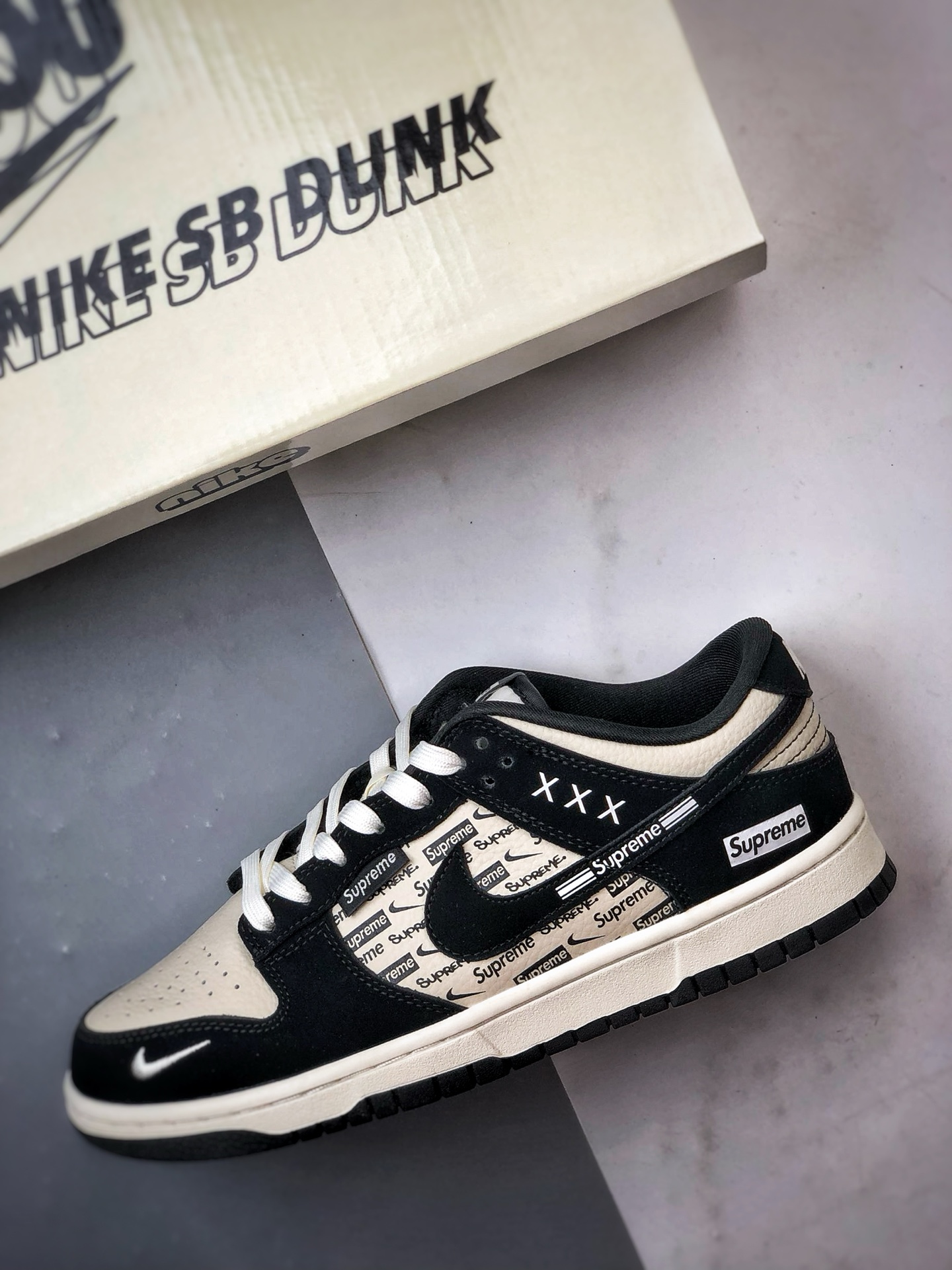 Sup Print Beige Black Low-Top Casual Sports Sneakers