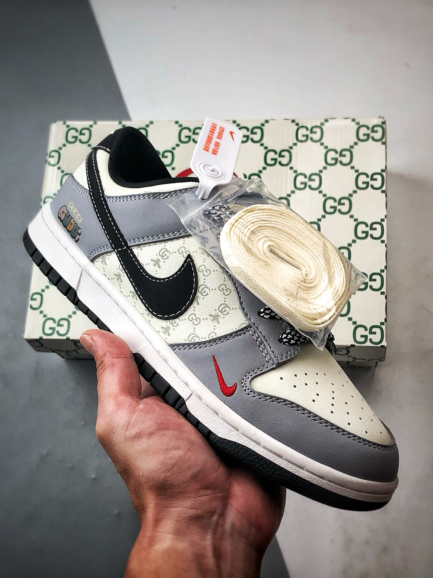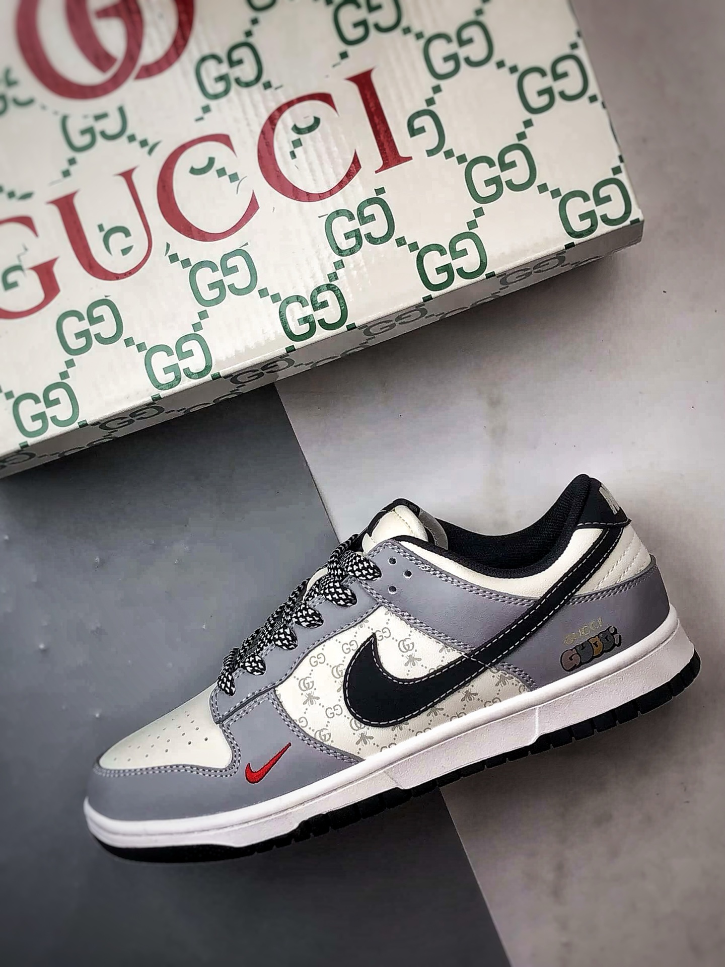 Gucci White Gray Black Low-Top Casual Sports Sneakers
