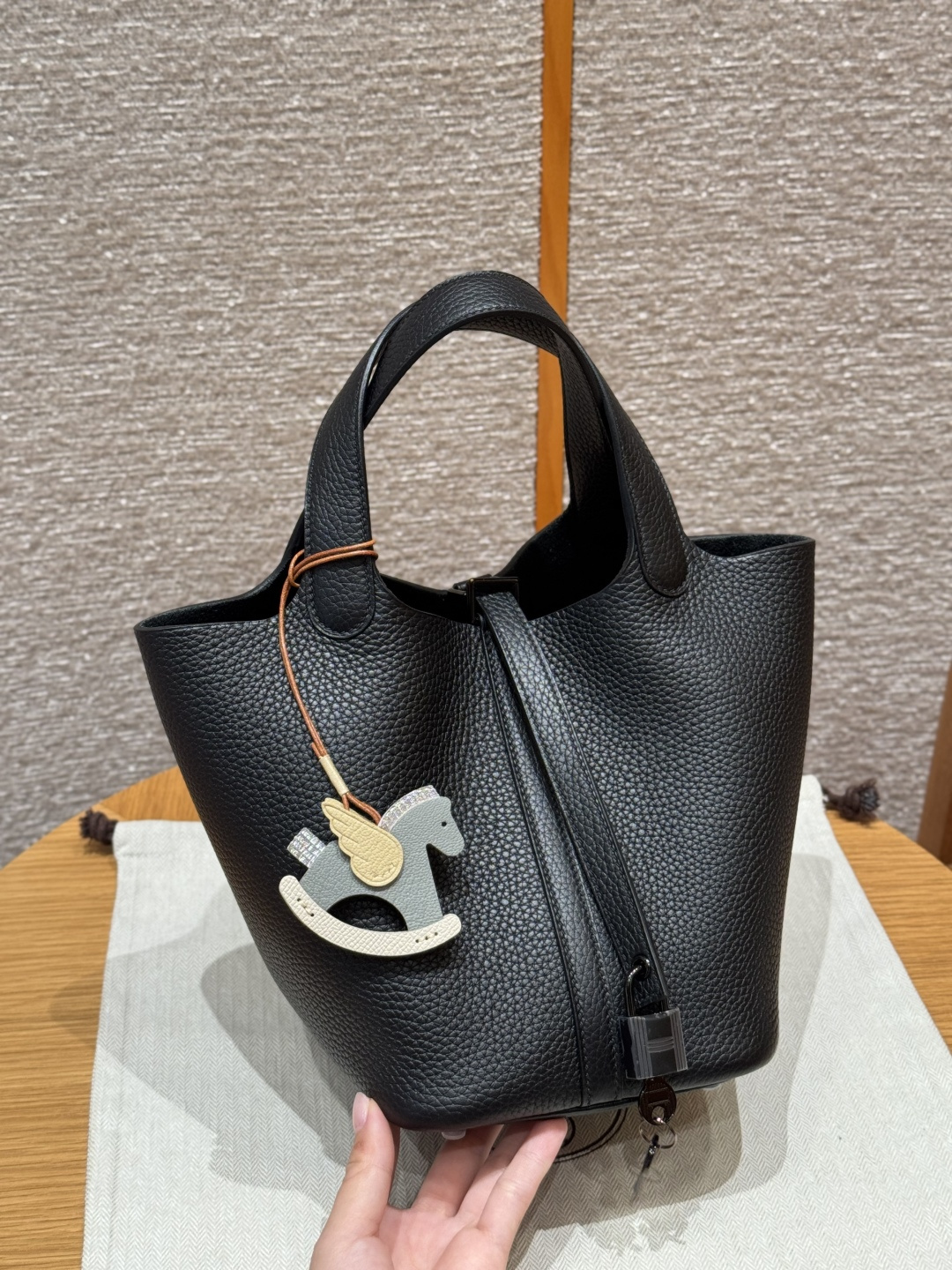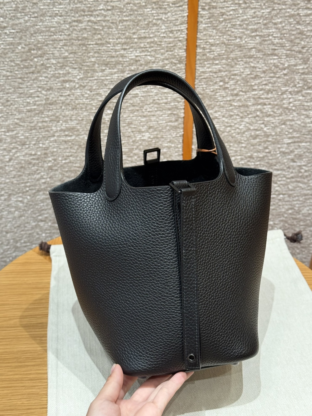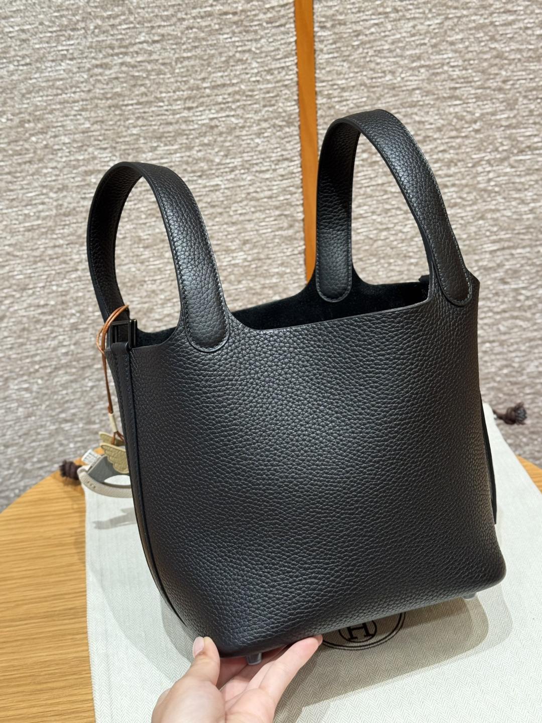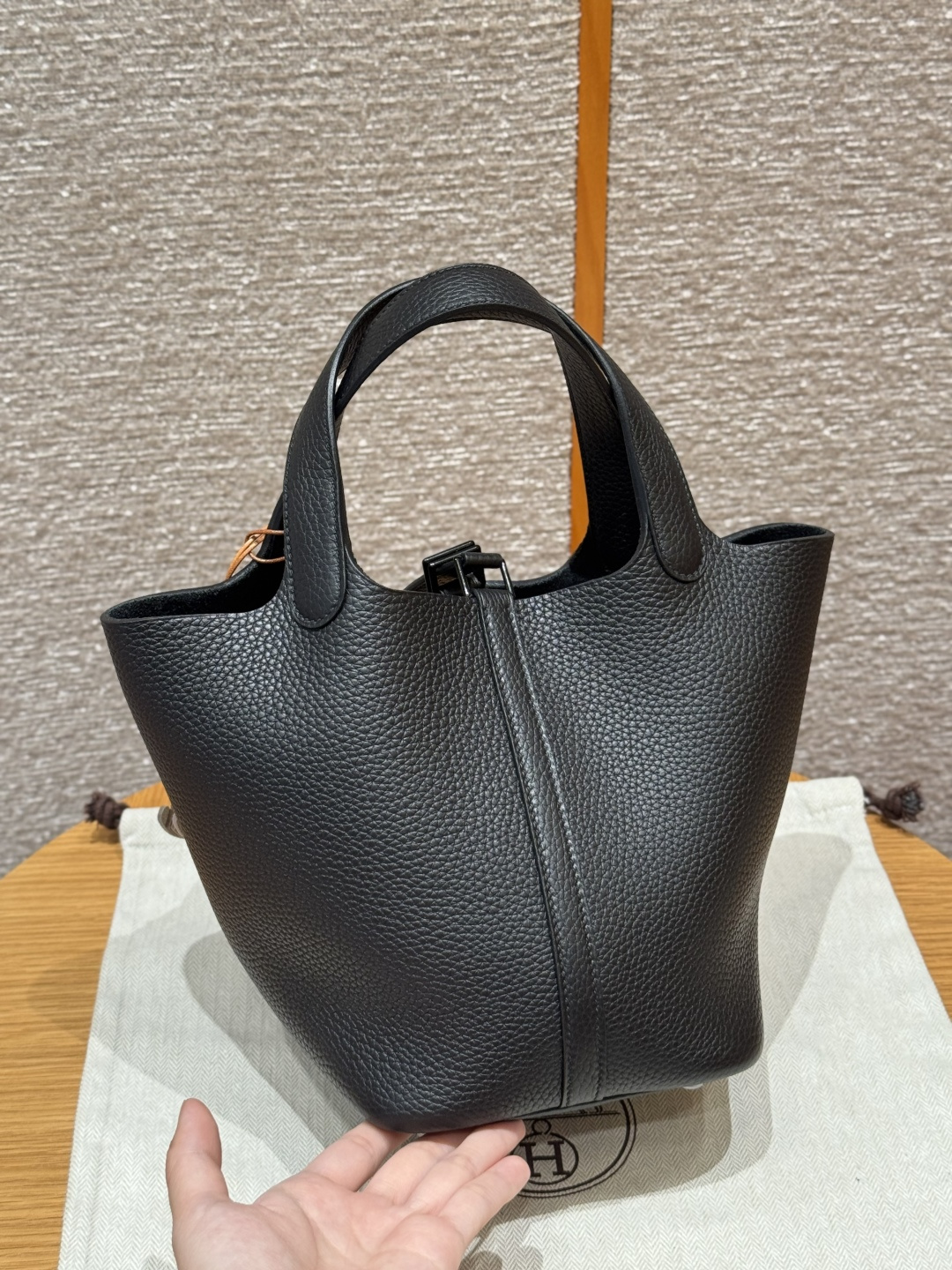 18cm basket, black, French imported original factory Tc cowhide, black buckle, high-end fully handcrafted exclusive custom.
