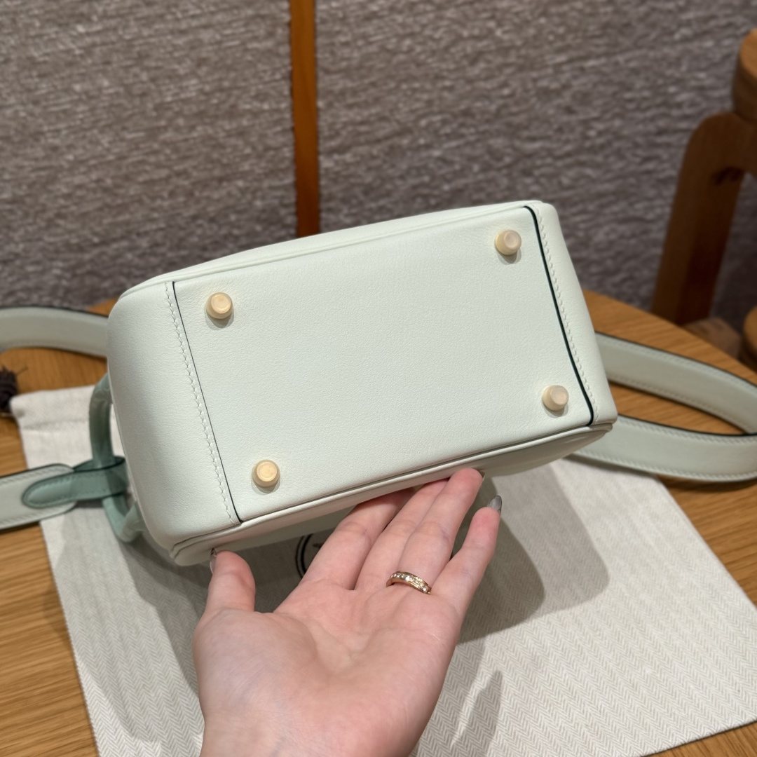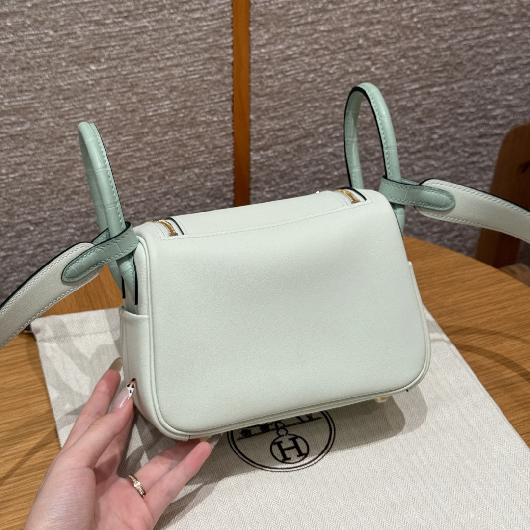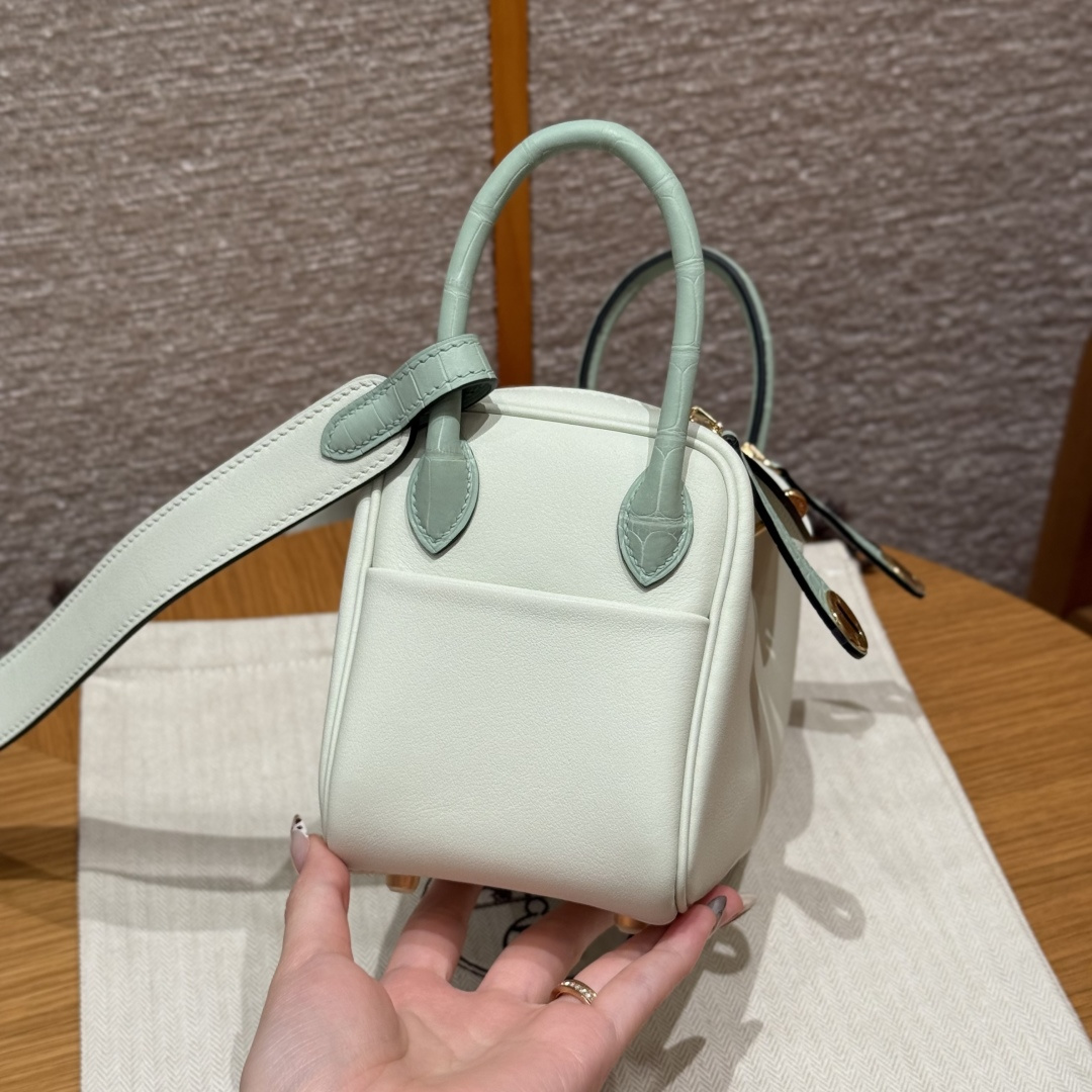Mini Lindy, bubble green with mint green, imported French original plain leather, combined with matte American alligator originally from Mississippi, gold buckle, advanced full manual exclusive customization.